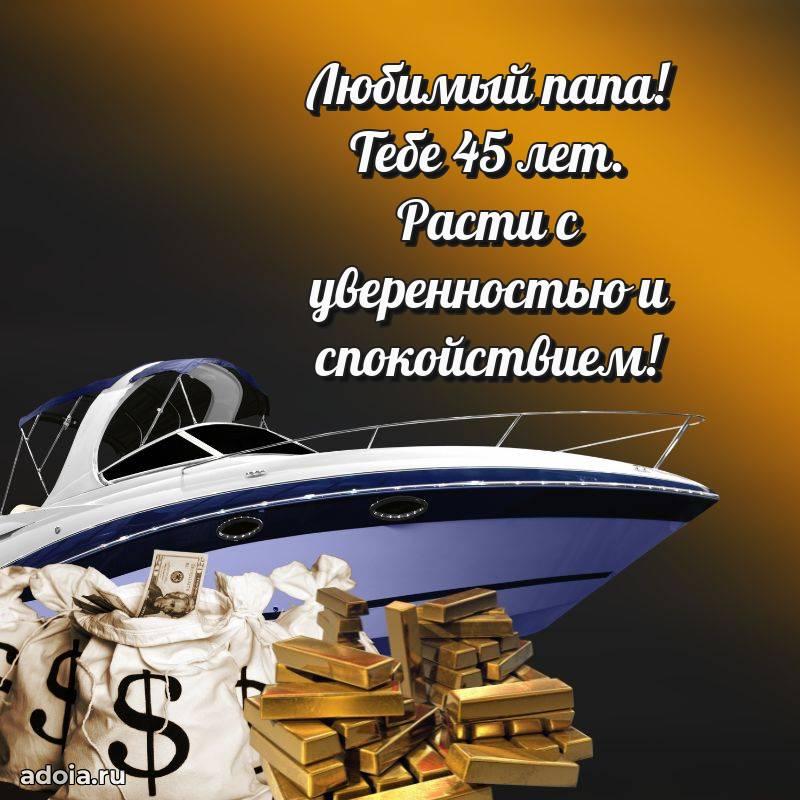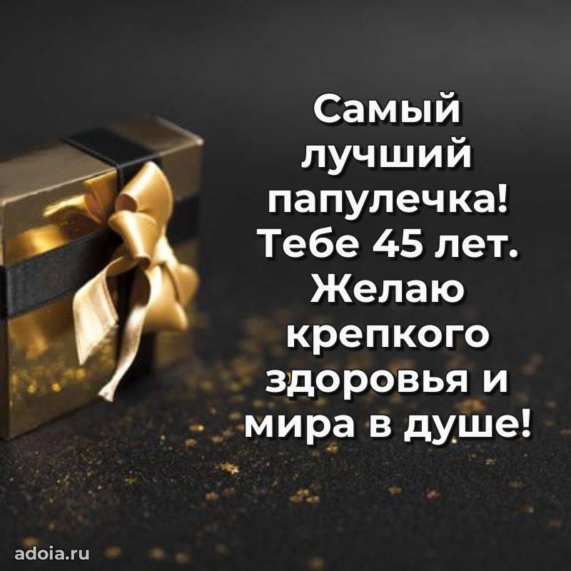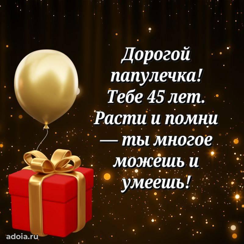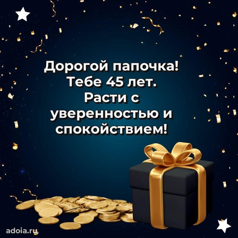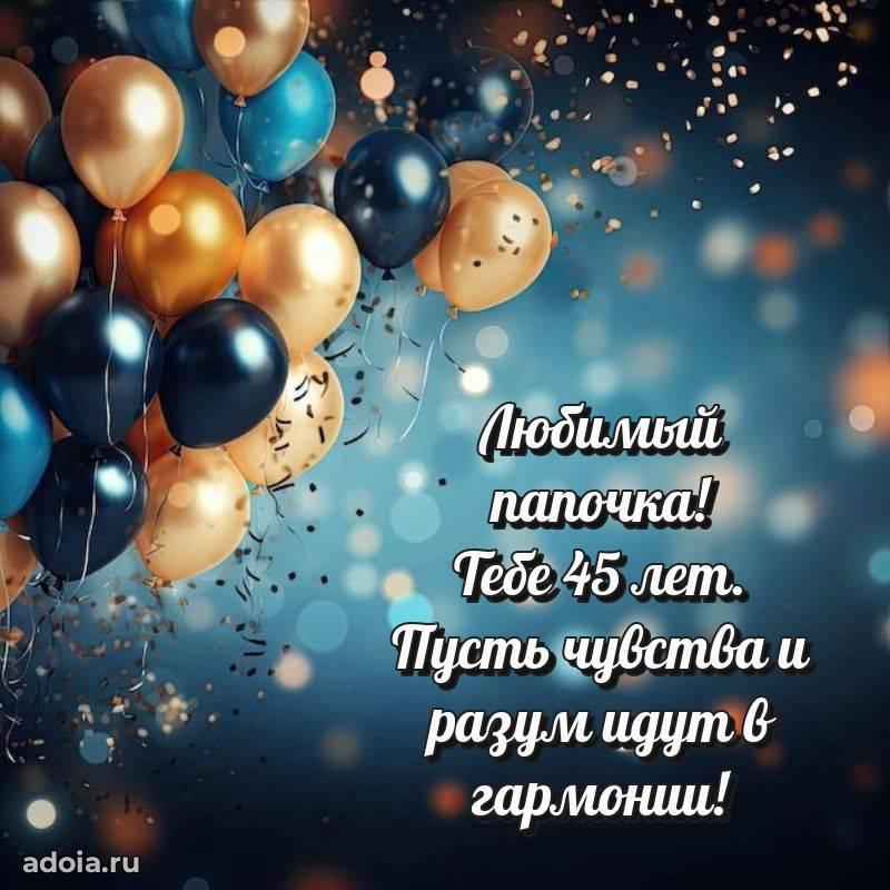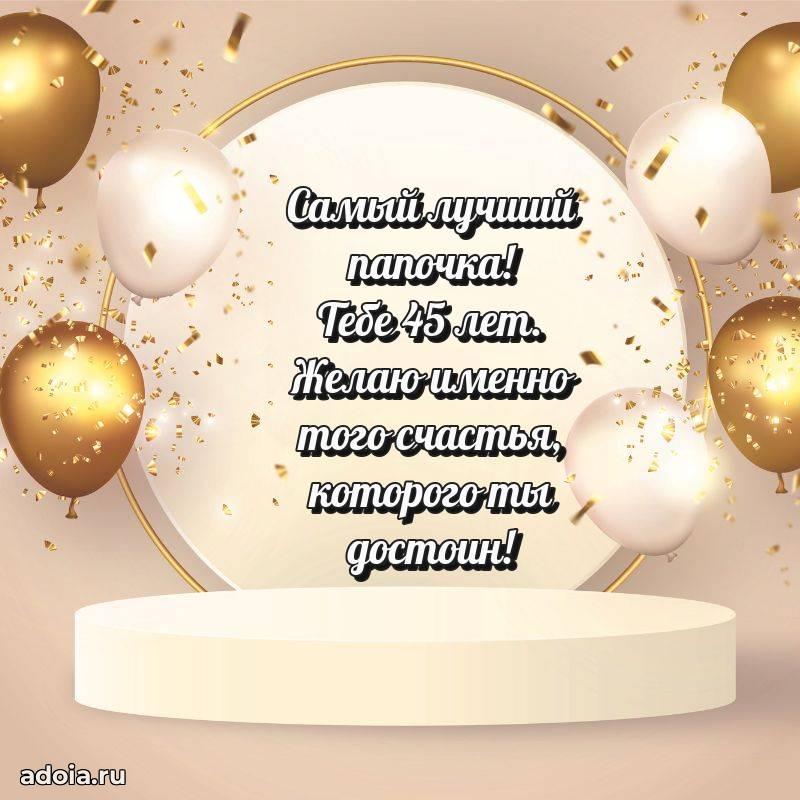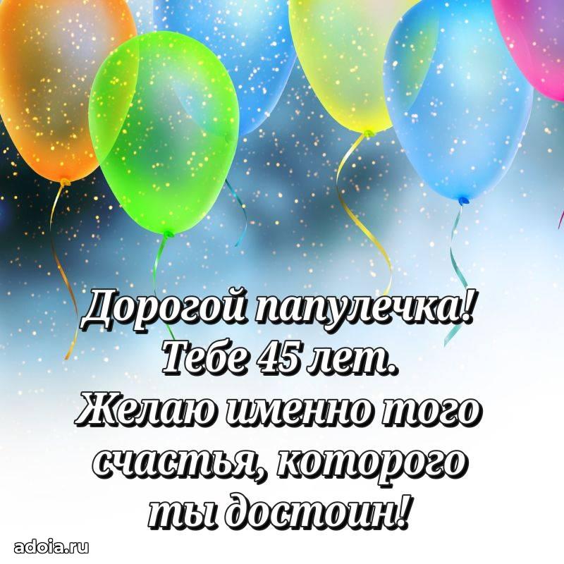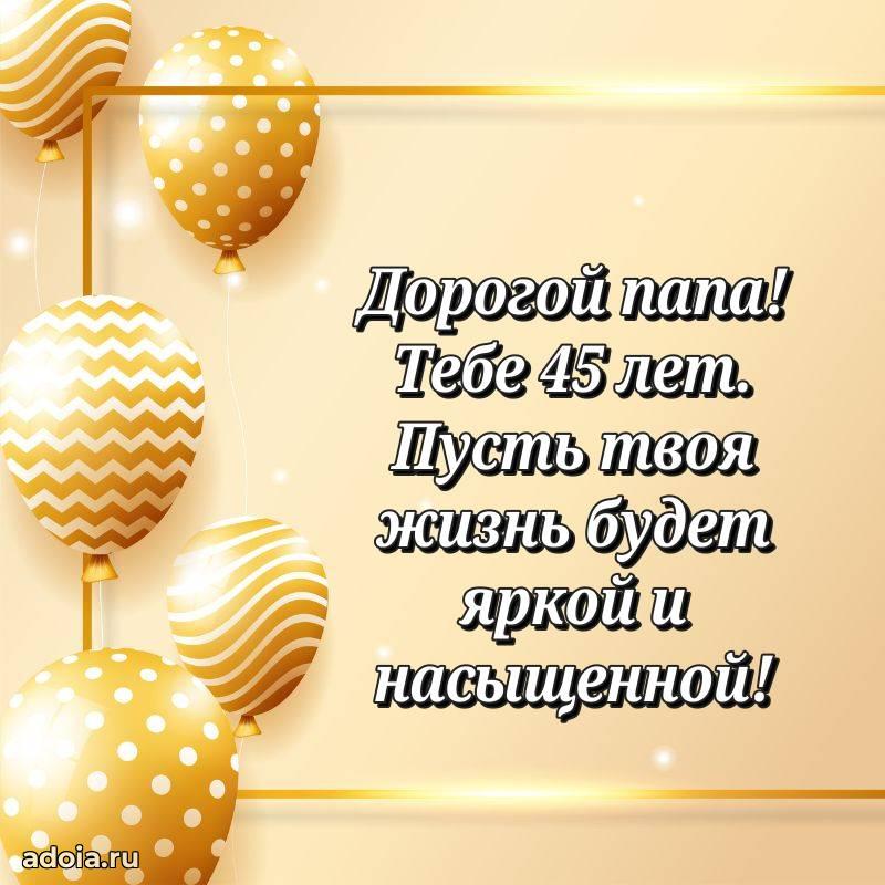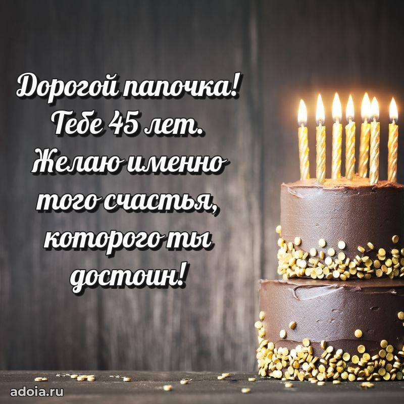 В поисках красивых и современных открыток? Вы попали по адресу! Здесь вы найдете картинки с днем рождения Папе на 45 лет! Все картинки в высоком качестве, которые можно скачать или отправить через WhatsApp бесплатно. Также вы найдете много прикольных и мерцающих гифок и анимаций, которые поднимут настроение! Все открытки содержат поздравления в стихах и прозе.