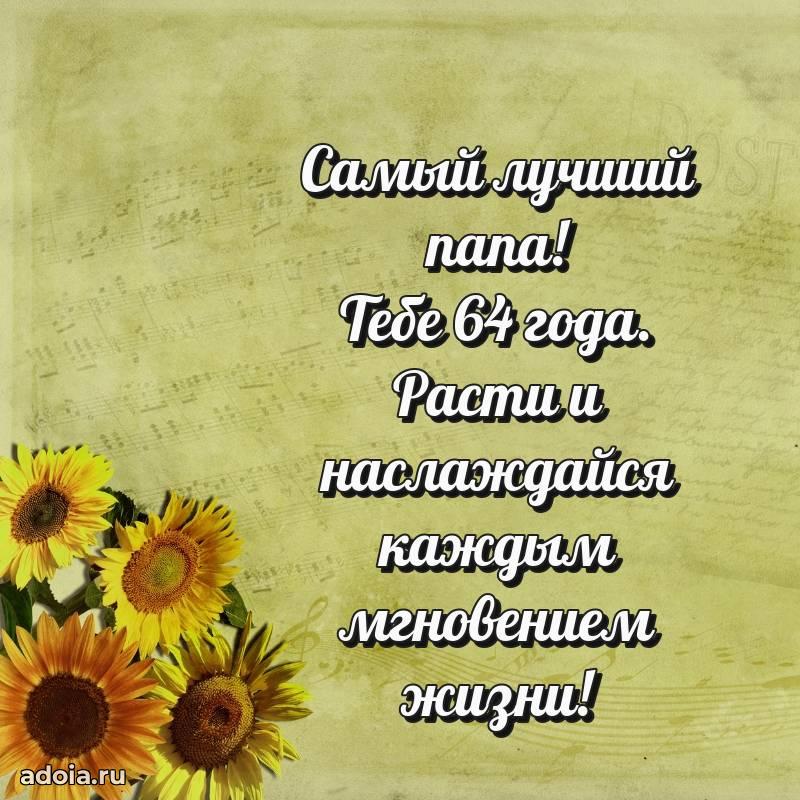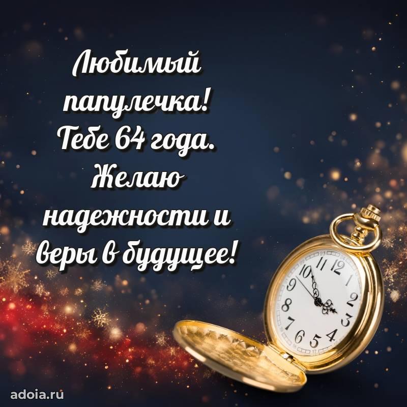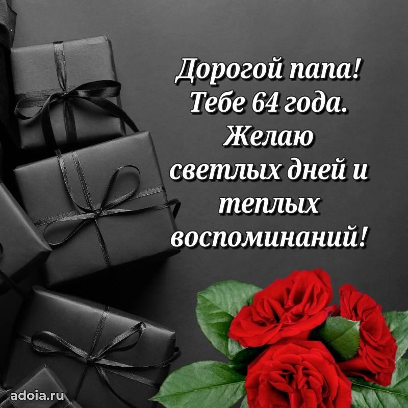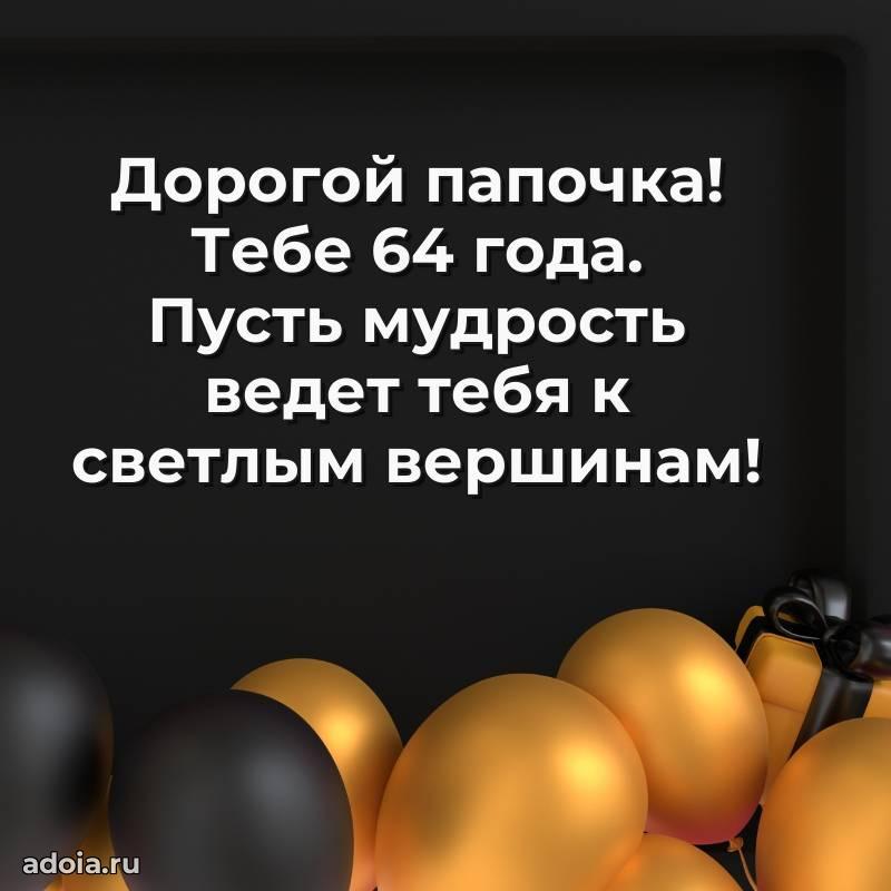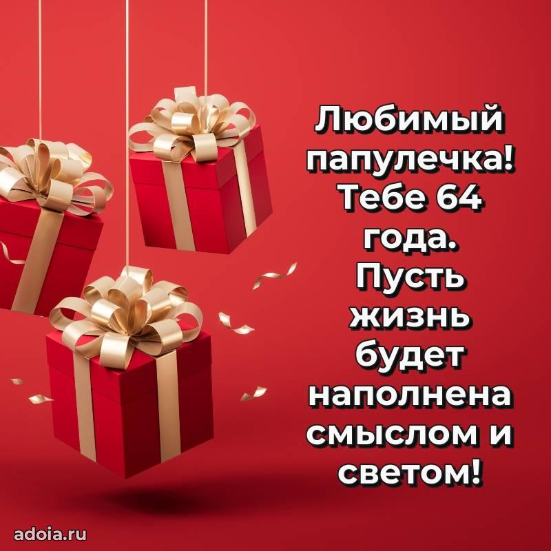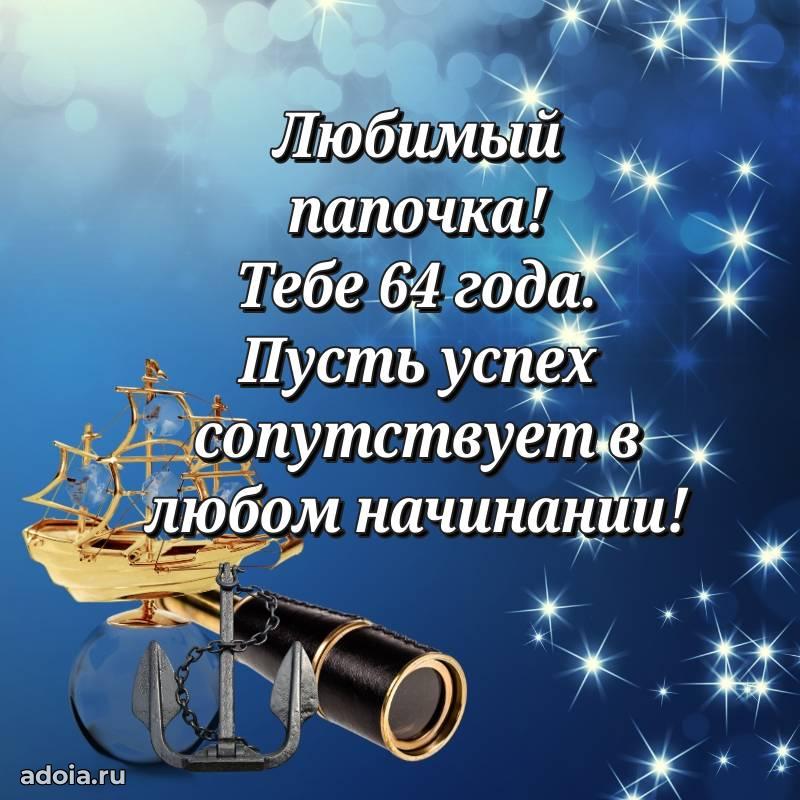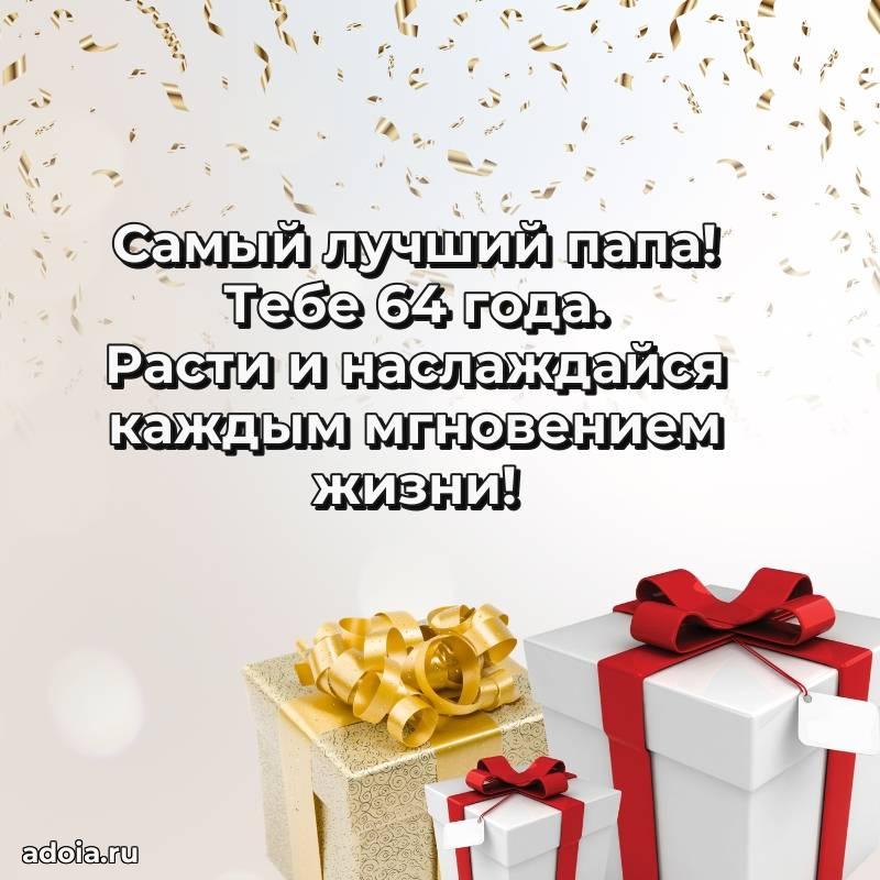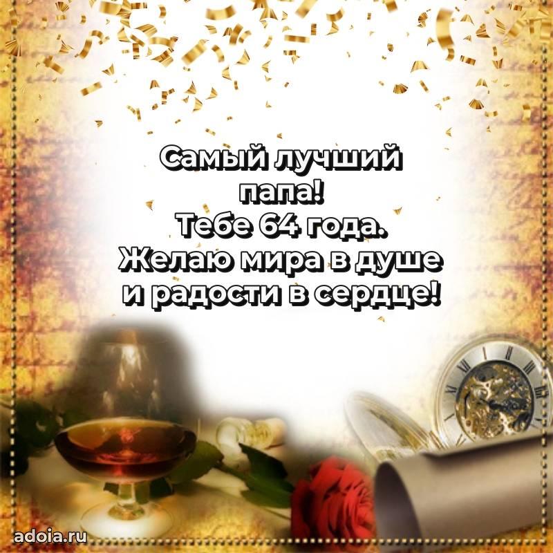 В поисках красивых и современных открыток? Вы попали по адресу! Здесь вы найдете картинки с днем рождения Папе на 64 года! Все картинки в высоком качестве, которые можно скачать или отправить через WhatsApp бесплатно. Также вы найдете много прикольных и мерцающих гифок и анимаций, которые поднимут настроение! Все открытки содержат поздравления в стихах и прозе.