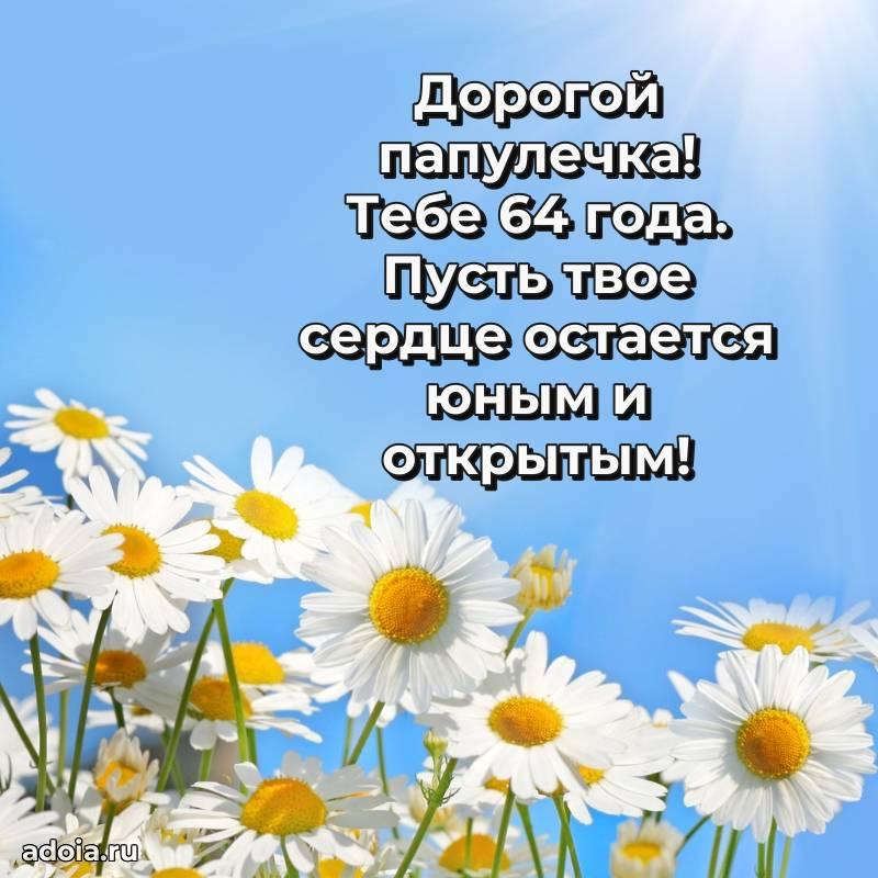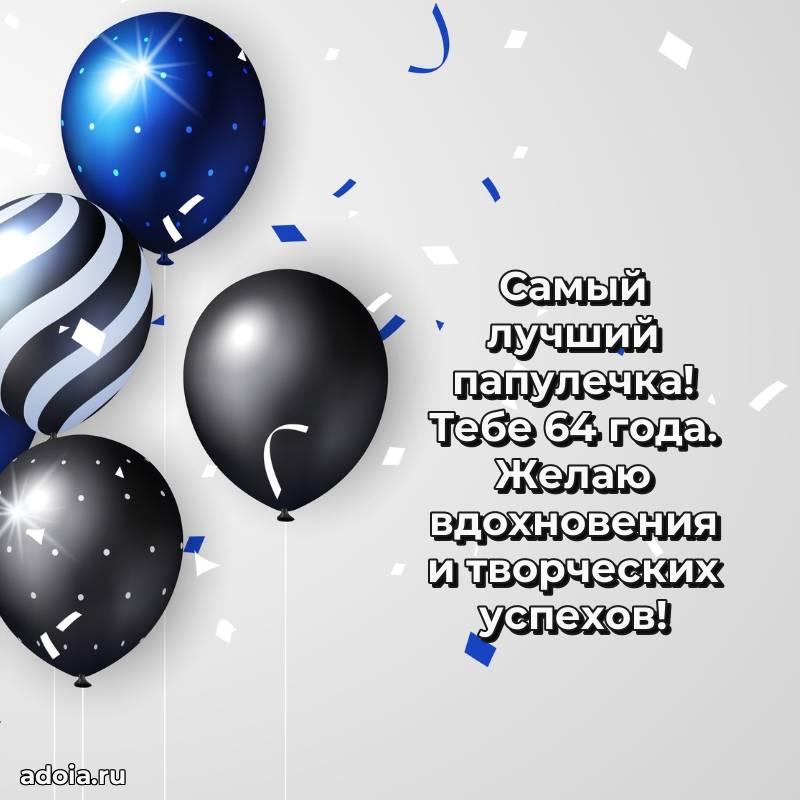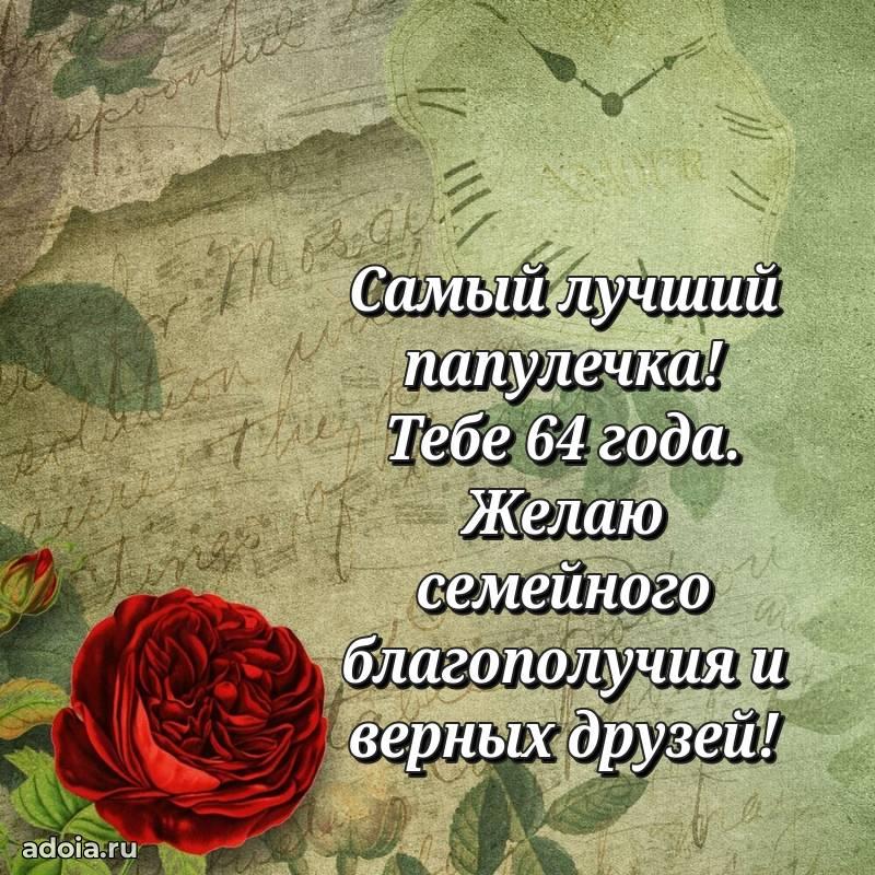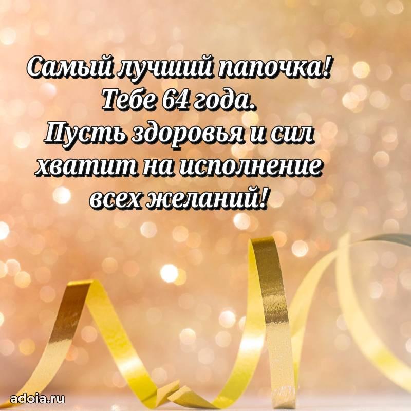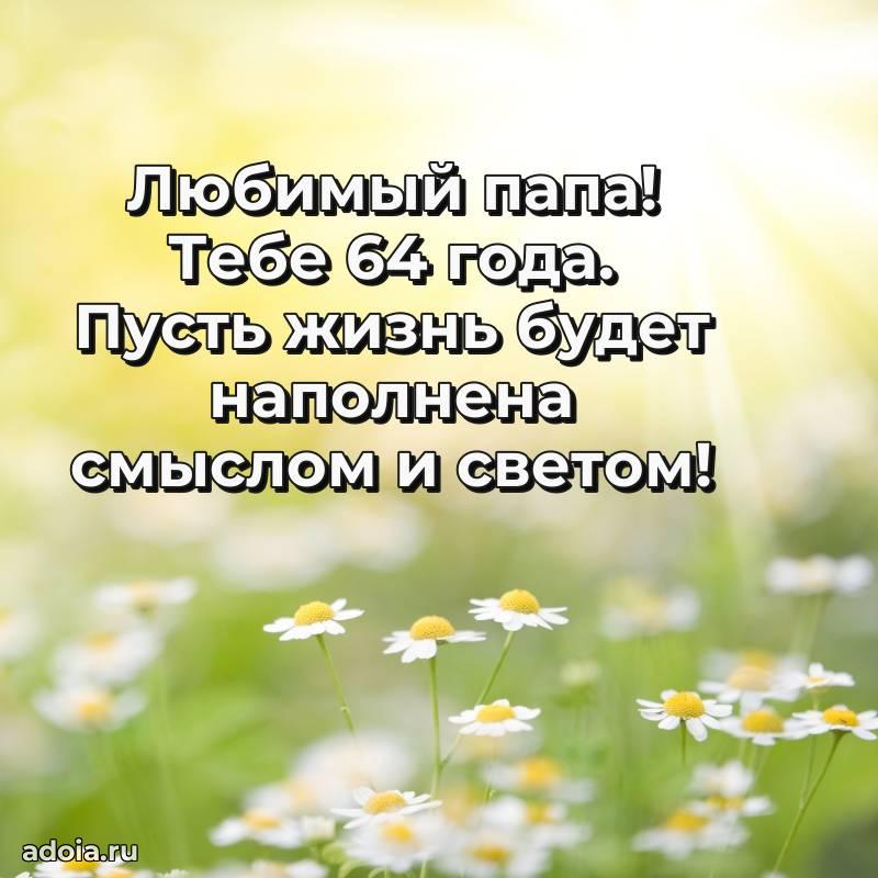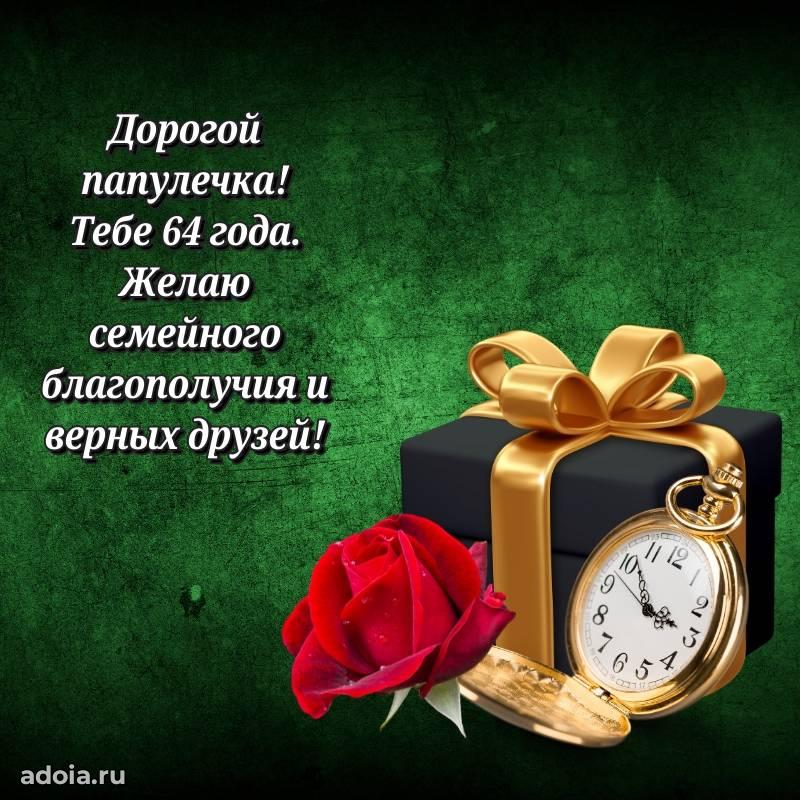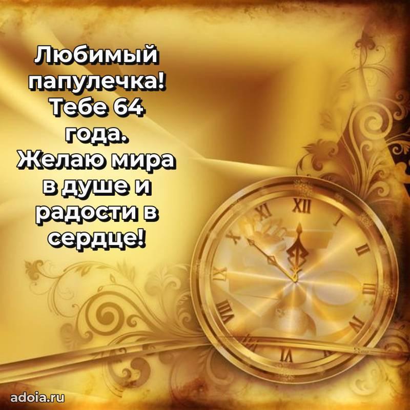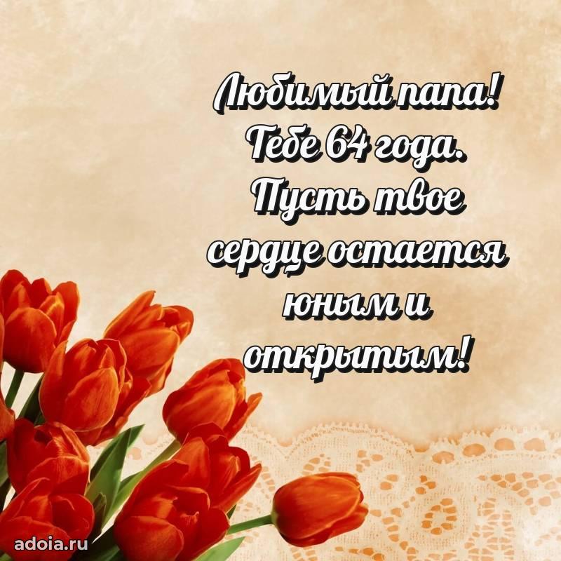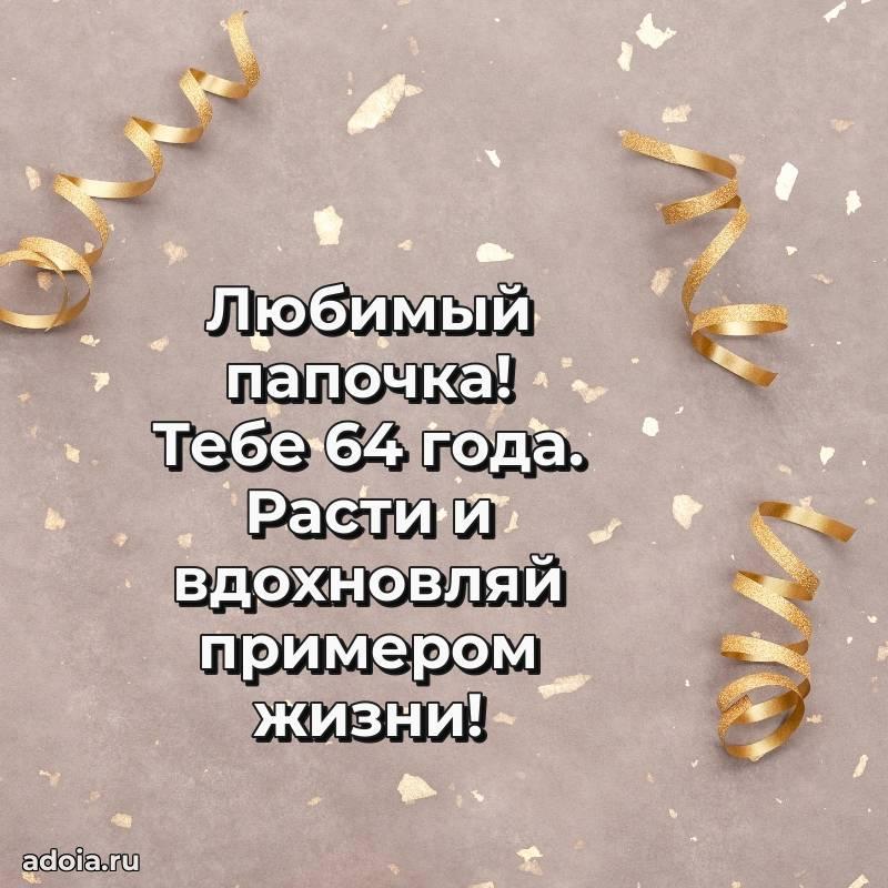 В поисках красивых и современных открыток? Вы попали по адресу! Здесь вы найдете картинки с днем рождения Папе на 64 года! Все картинки в высоком качестве, которые можно скачать или отправить через WhatsApp бесплатно. Также вы найдете много прикольных и мерцающих гифок и анимаций, которые поднимут настроение! Все открытки содержат поздравления в стихах и прозе.