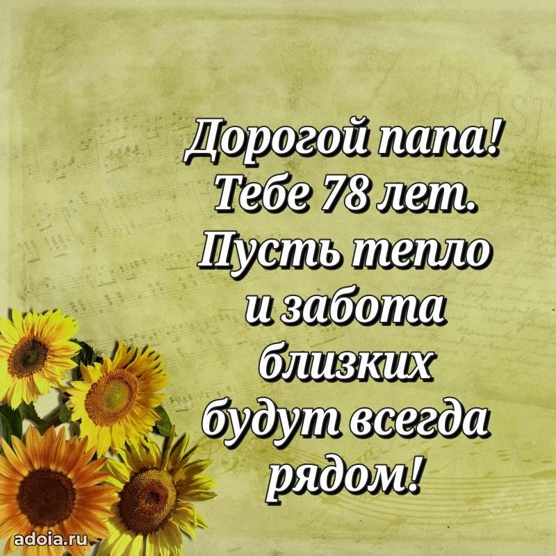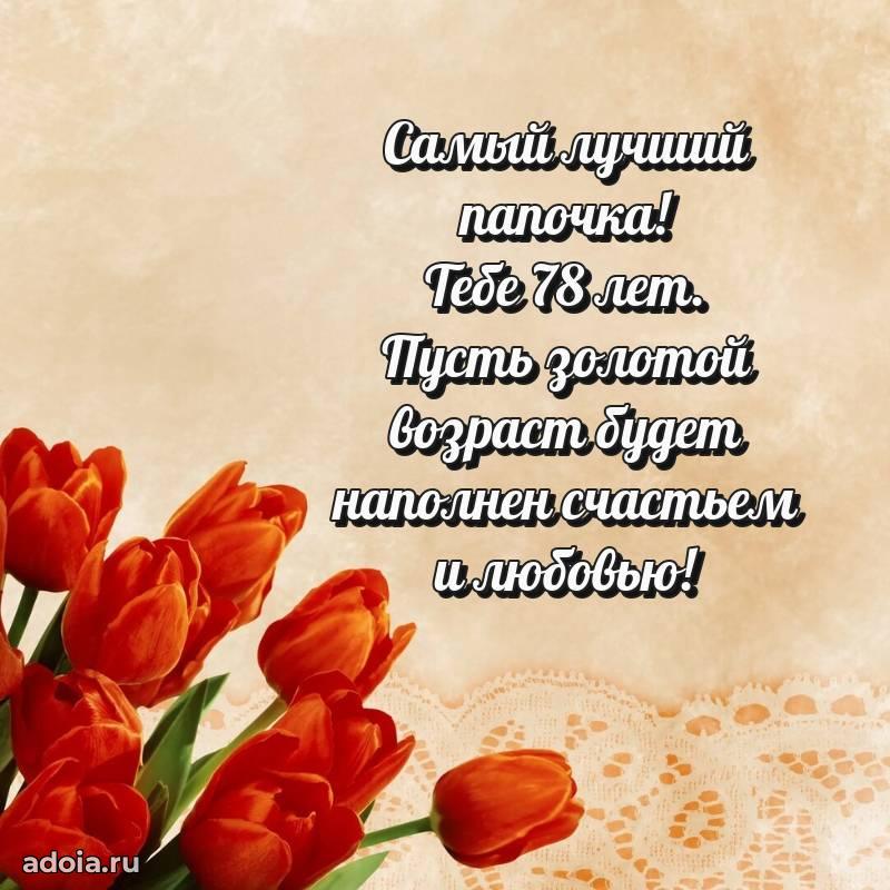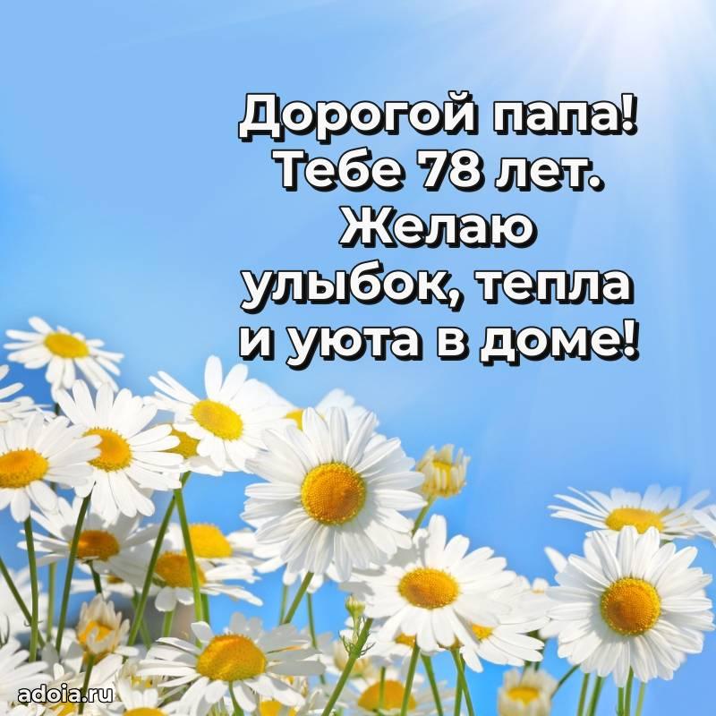 В поисках красивых и современных открыток? Вы попали по адресу! Здесь вы найдете картинки с днем рождения Папе на 78 лет! Все картинки в высоком качестве, которые можно скачать или отправить через WhatsApp бесплатно. Также вы найдете много прикольных и мерцающих гифок и анимаций, которые поднимут настроение! Все открытки содержат поздравления в стихах и прозе.