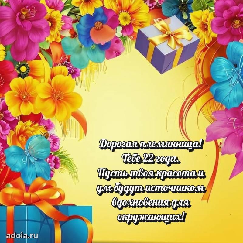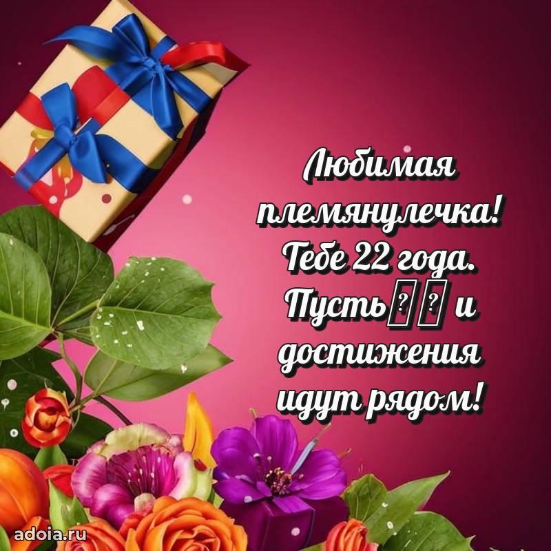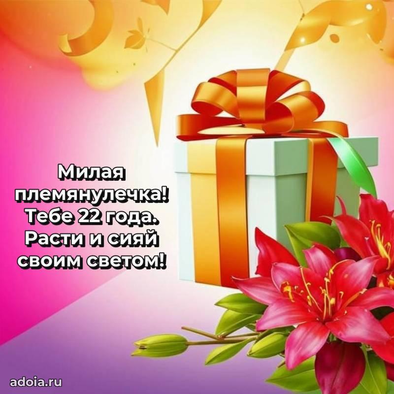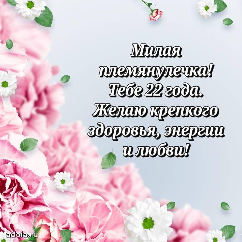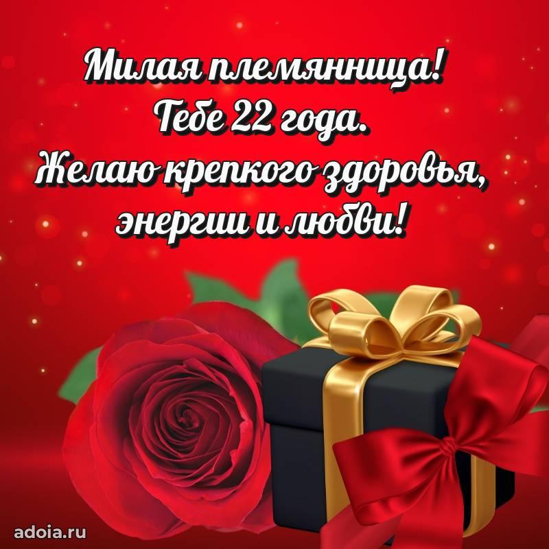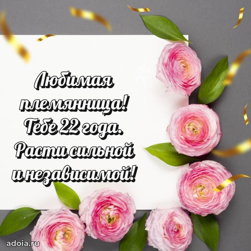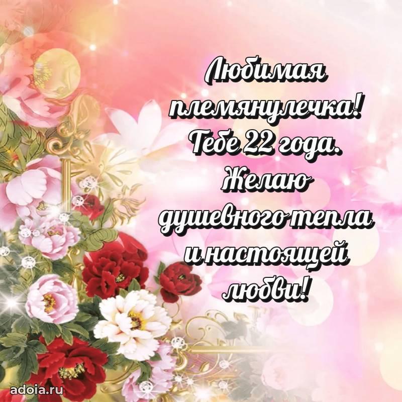 В поисках красивых и современных открыток? Вы попали по адресу! Здесь вы найдете картинки с днем рождения Племяннице на 22 года! Все картинки в высоком качестве, которые можно скачать или отправить через WhatsApp бесплатно. Также вы найдете много прикольных и мерцающих гифок и анимаций, которые поднимут настроение! Все открытки содержат поздравления в стихах и прозе.