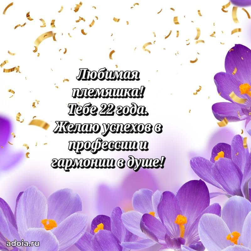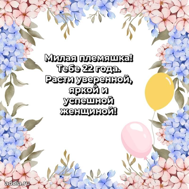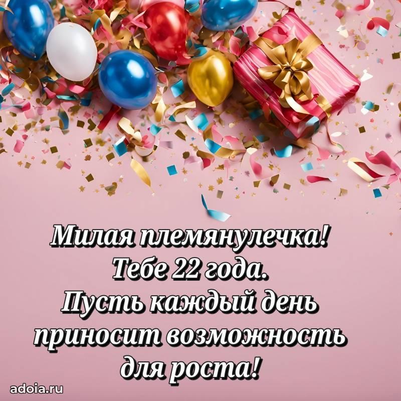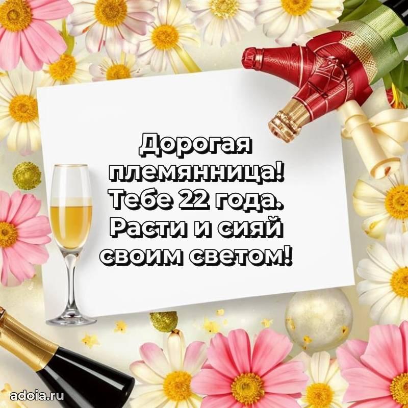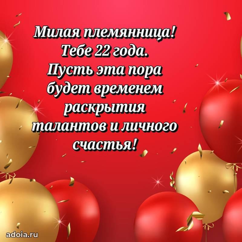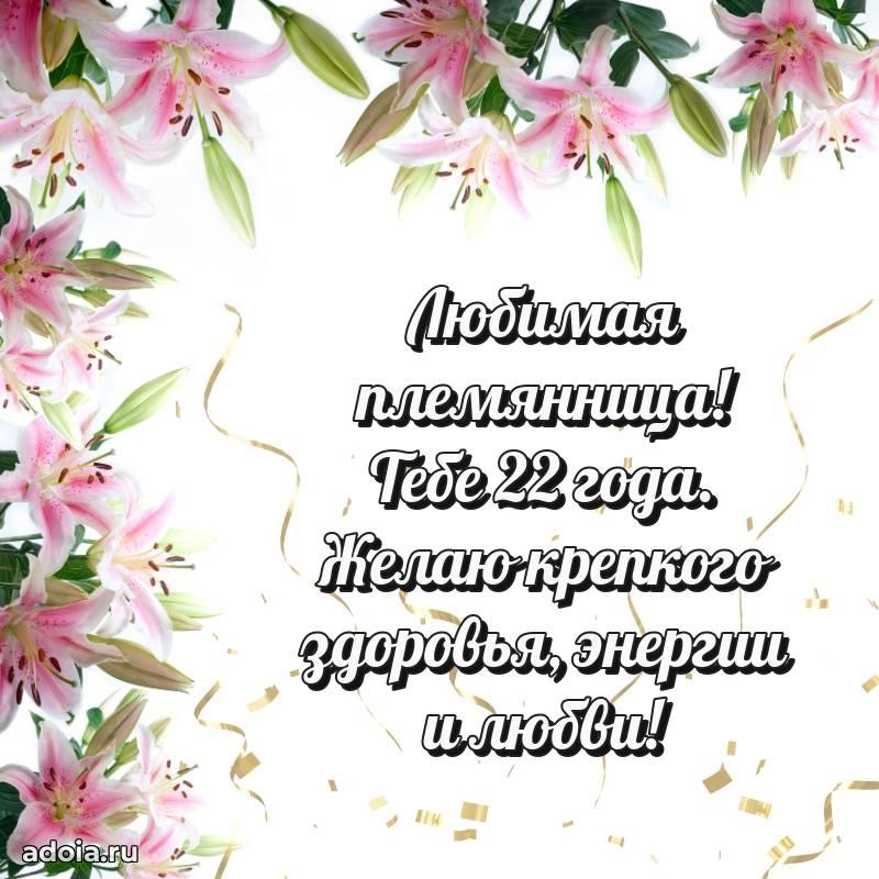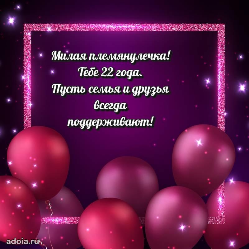 В поисках красивых и современных открыток? Вы попали по адресу! Здесь вы найдете картинки с днем рождения Племяннице на 22 года! Все картинки в высоком качестве, которые можно скачать или отправить через WhatsApp бесплатно. Также вы найдете много прикольных и мерцающих гифок и анимаций, которые поднимут настроение! Все открытки содержат поздравления в стихах и прозе.