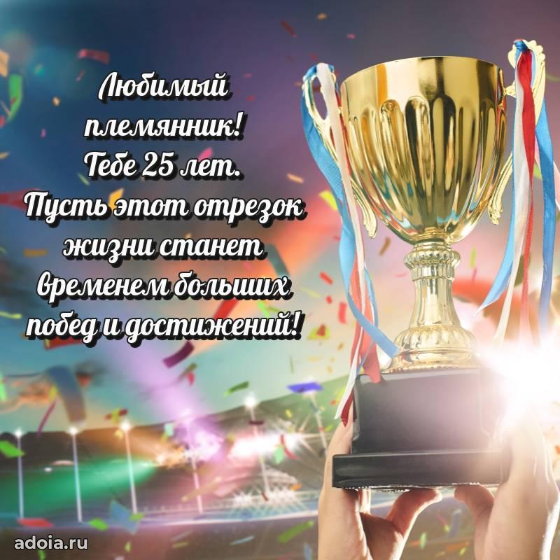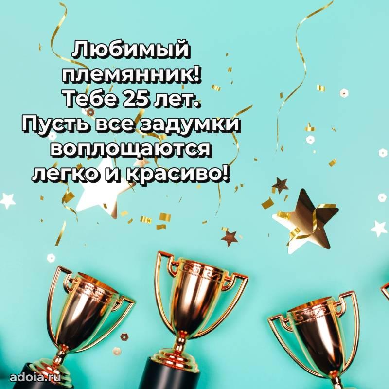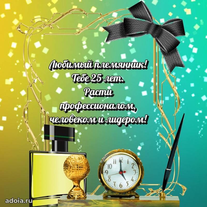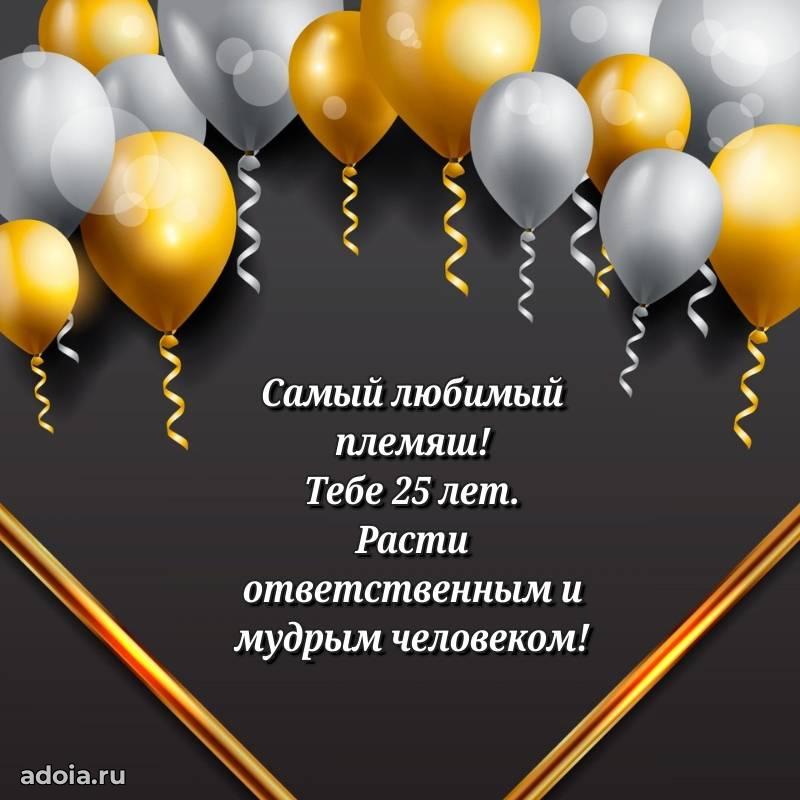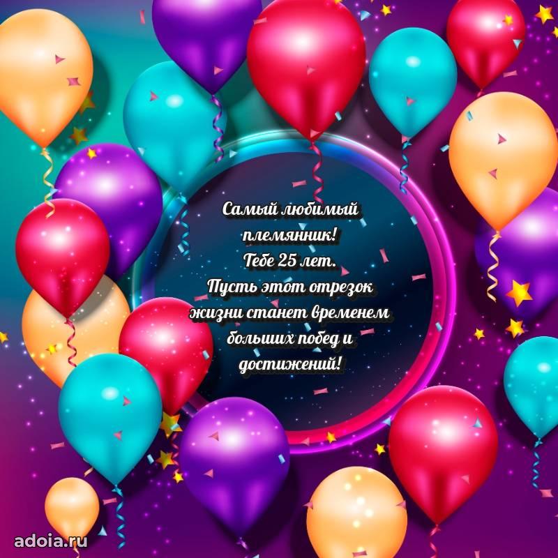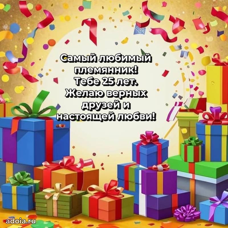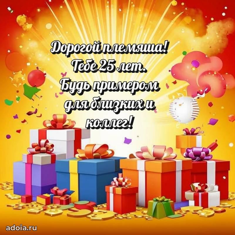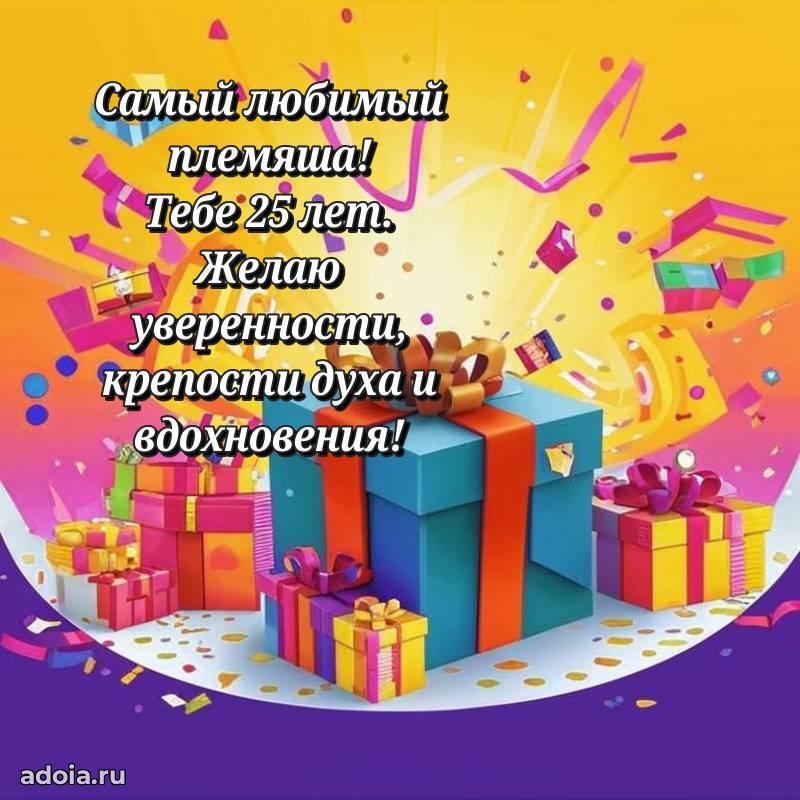 В поисках красивых и современных открыток? Вы попали по адресу! Здесь вы найдете картинки с днем рождения Племяннику на 25 лет! Все картинки в высоком качестве, которые можно скачать или отправить через WhatsApp бесплатно. Также вы найдете много прикольных и мерцающих гифок и анимаций, которые поднимут настроение! Все открытки содержат поздравления в стихах и прозе.