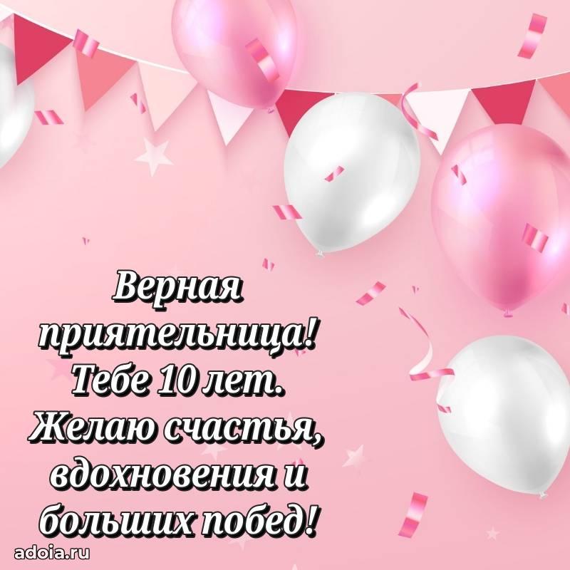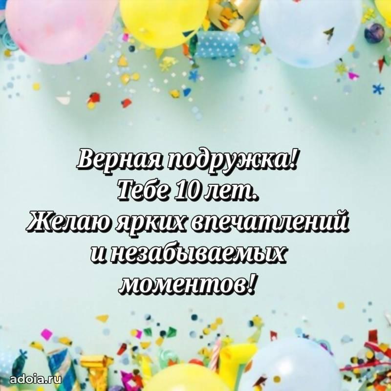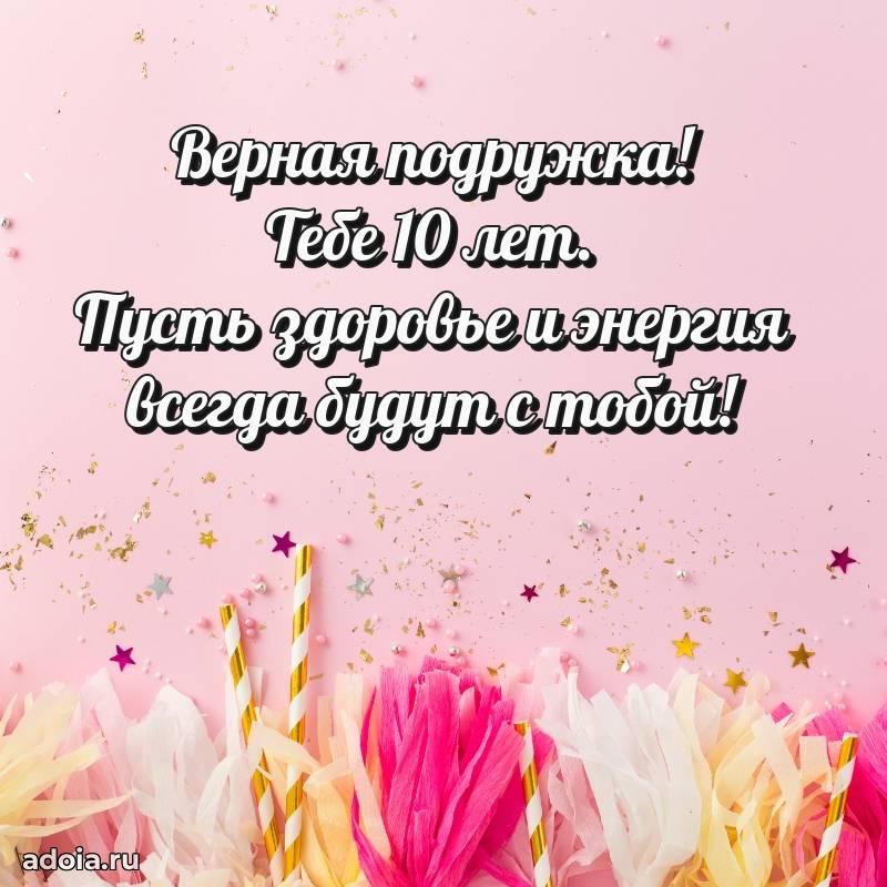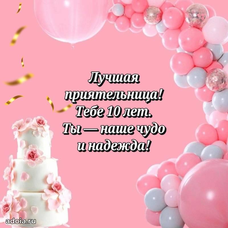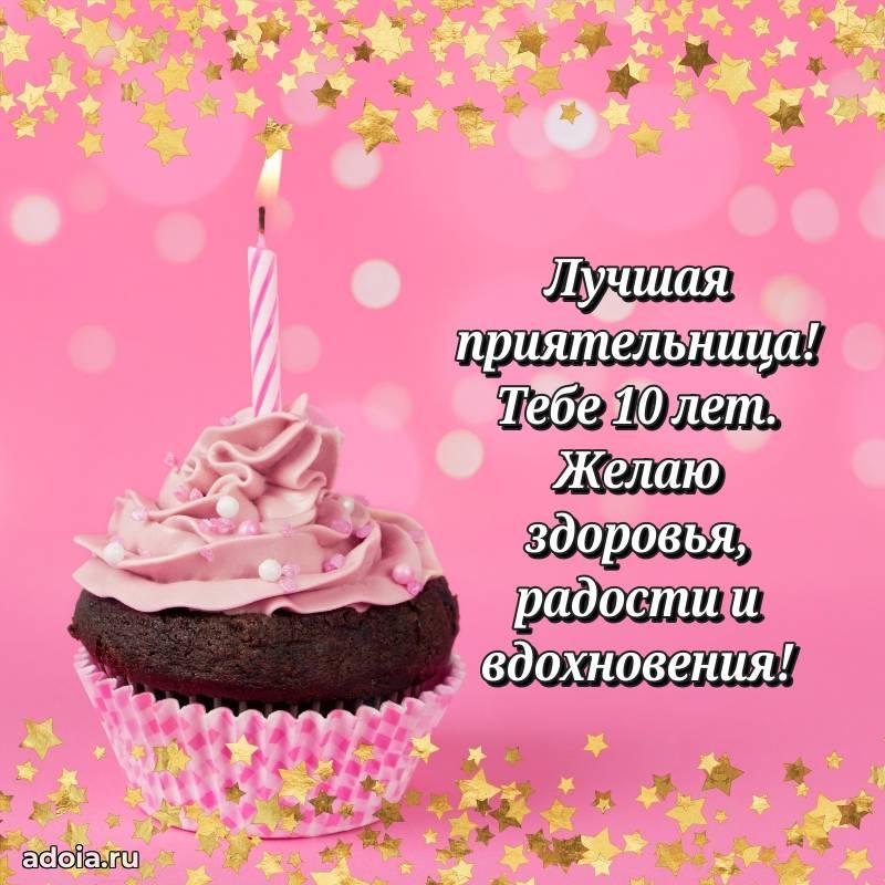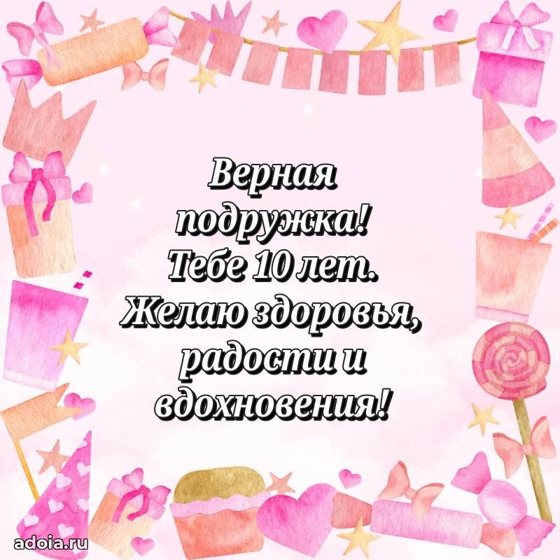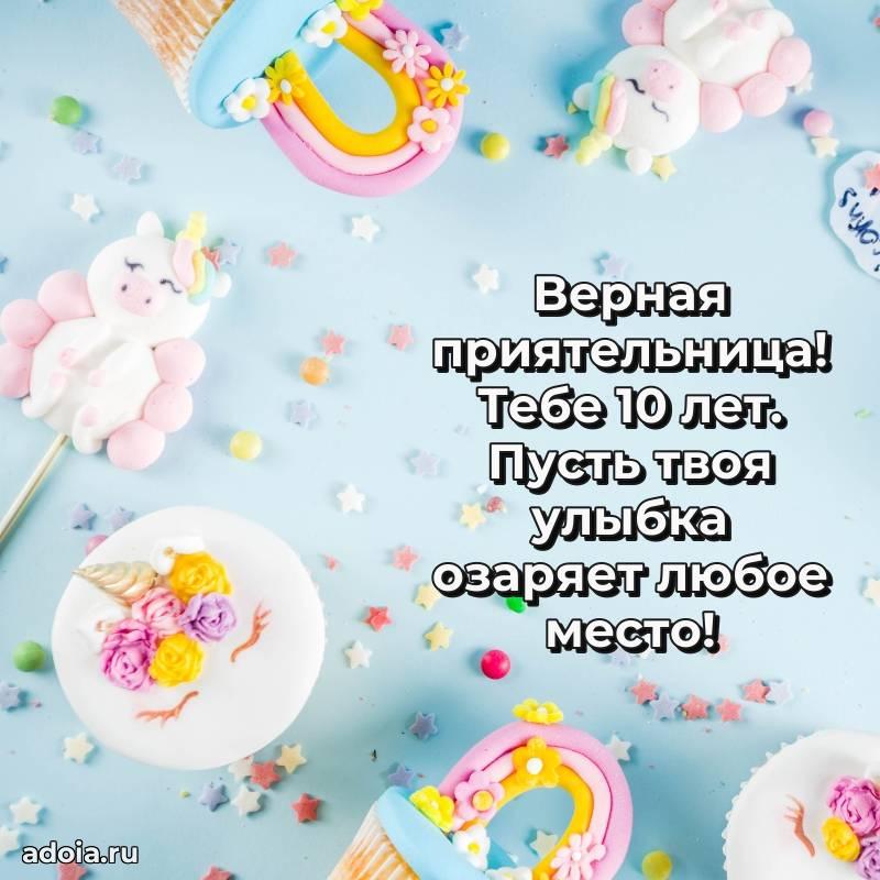 В поисках красивых и современных открыток? Вы попали по адресу! Здесь вы найдете картинки с днем рождения Подруге на 10 лет! Все картинки в высоком качестве, которые можно скачать или отправить через WhatsApp бесплатно. Также вы найдете много прикольных и мерцающих гифок и анимаций, которые поднимут настроение! Все открытки содержат поздравления в стихах и прозе.