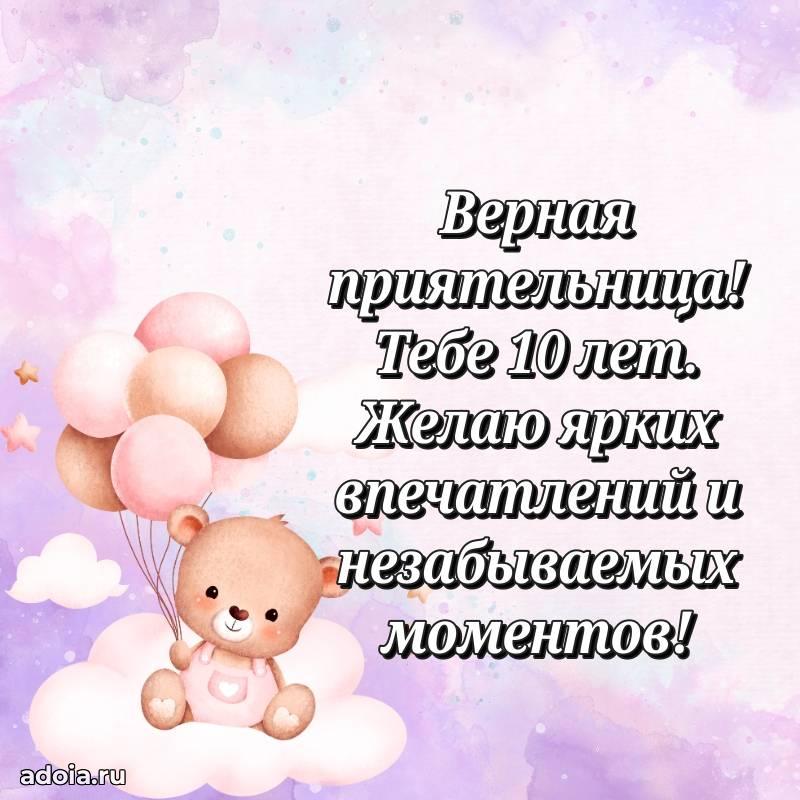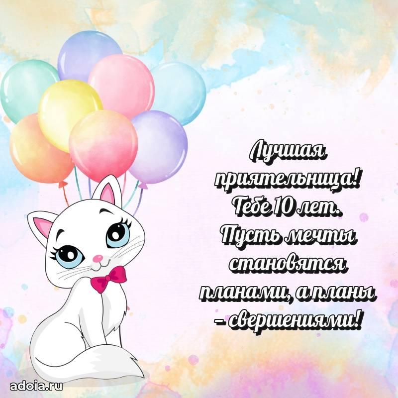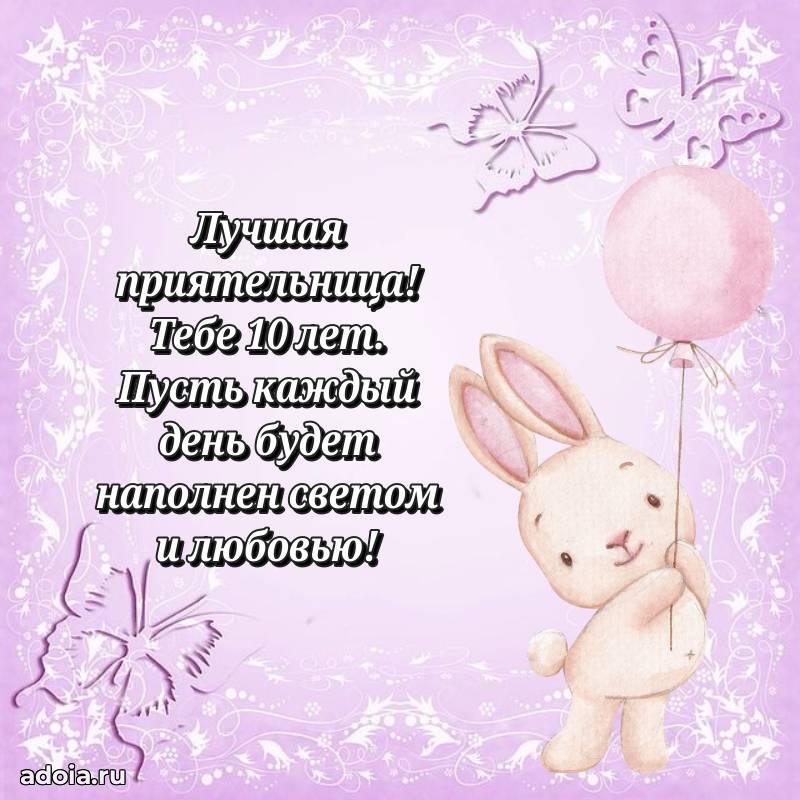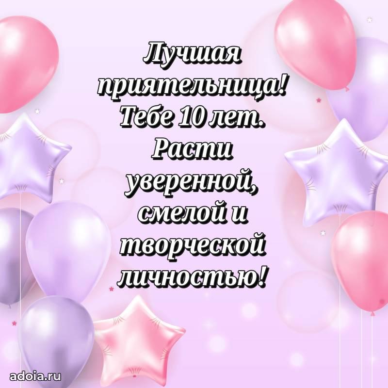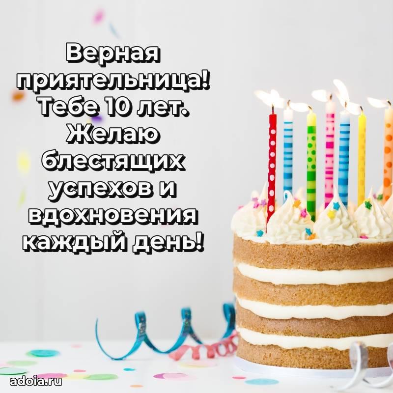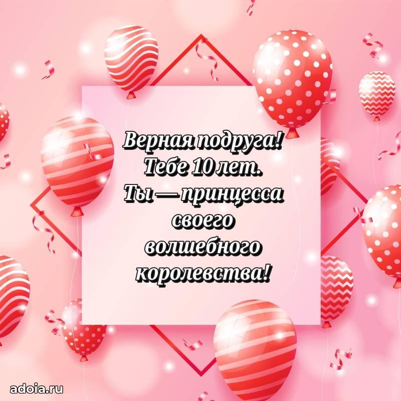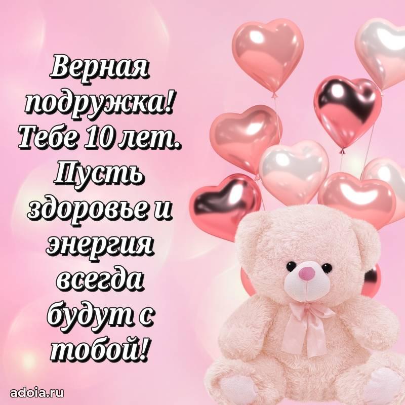 В поисках красивых и современных открыток? Вы попали по адресу! Здесь вы найдете картинки с днем рождения Подруге на 10 лет! Все картинки в высоком качестве, которые можно скачать или отправить через WhatsApp бесплатно. Также вы найдете много прикольных и мерцающих гифок и анимаций, которые поднимут настроение! Все открытки содержат поздравления в стихах и прозе.