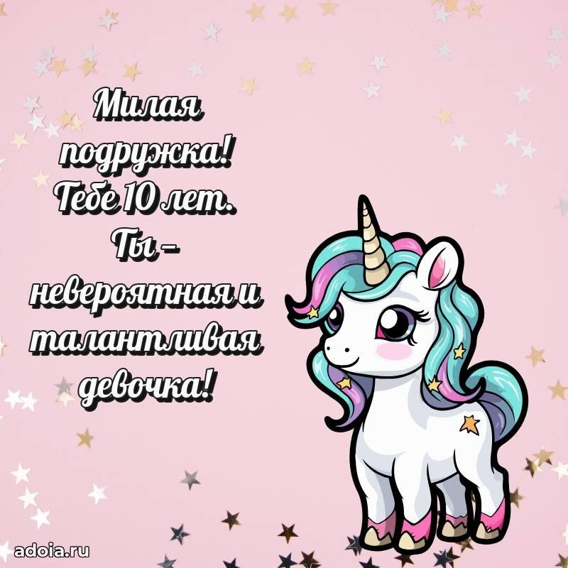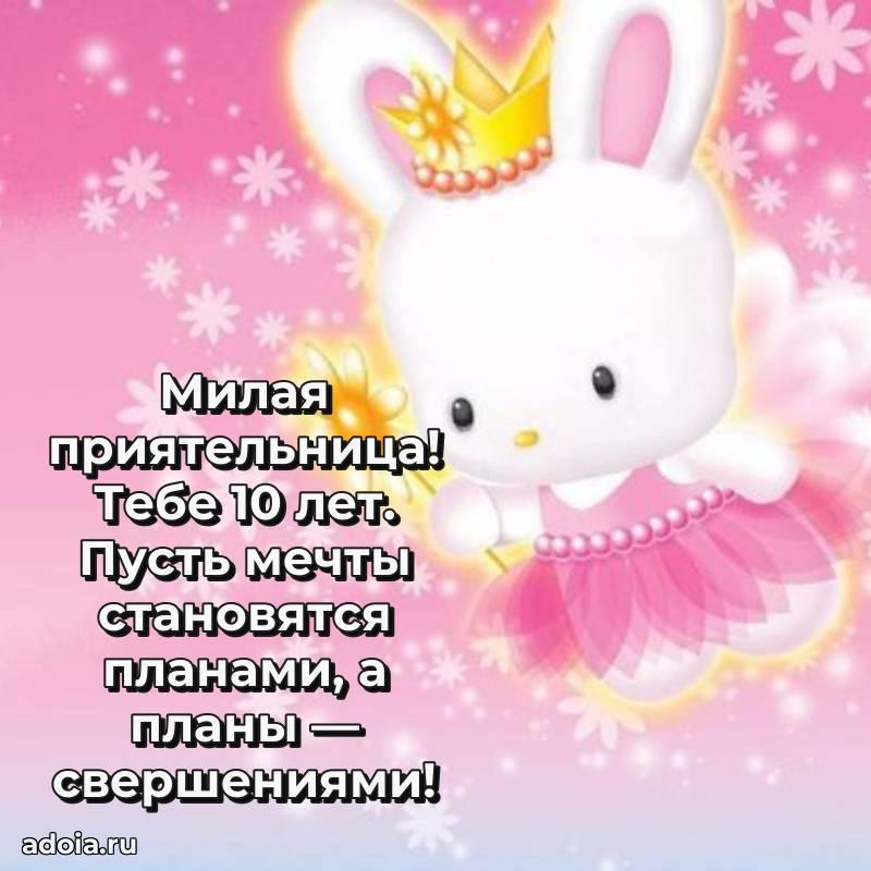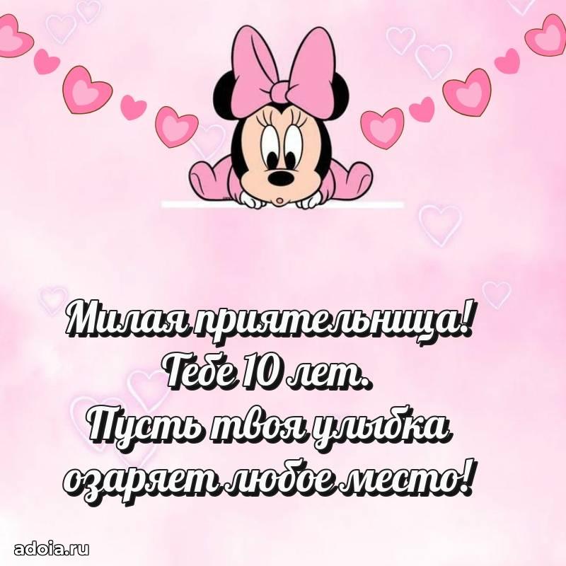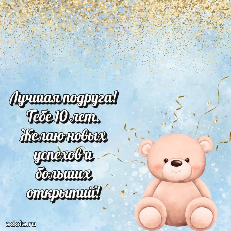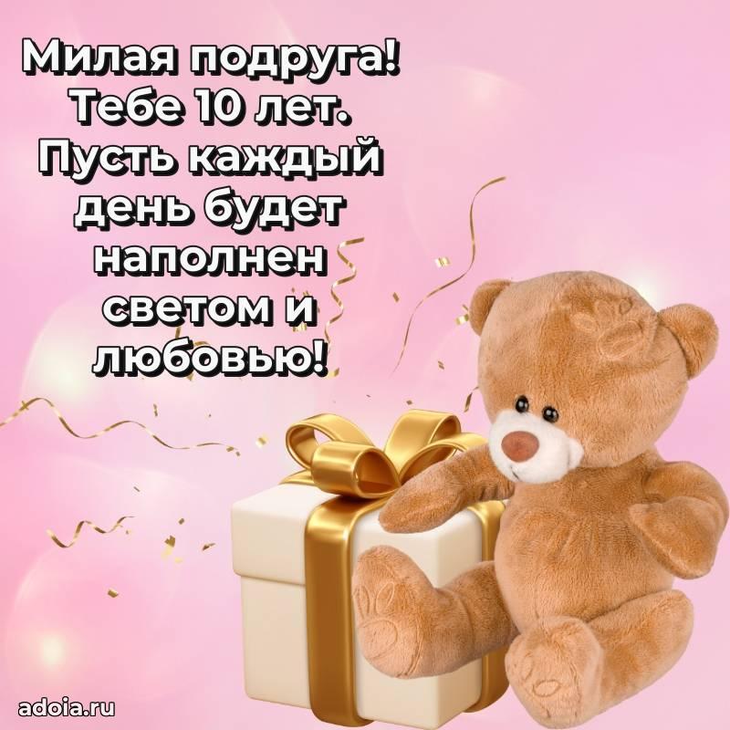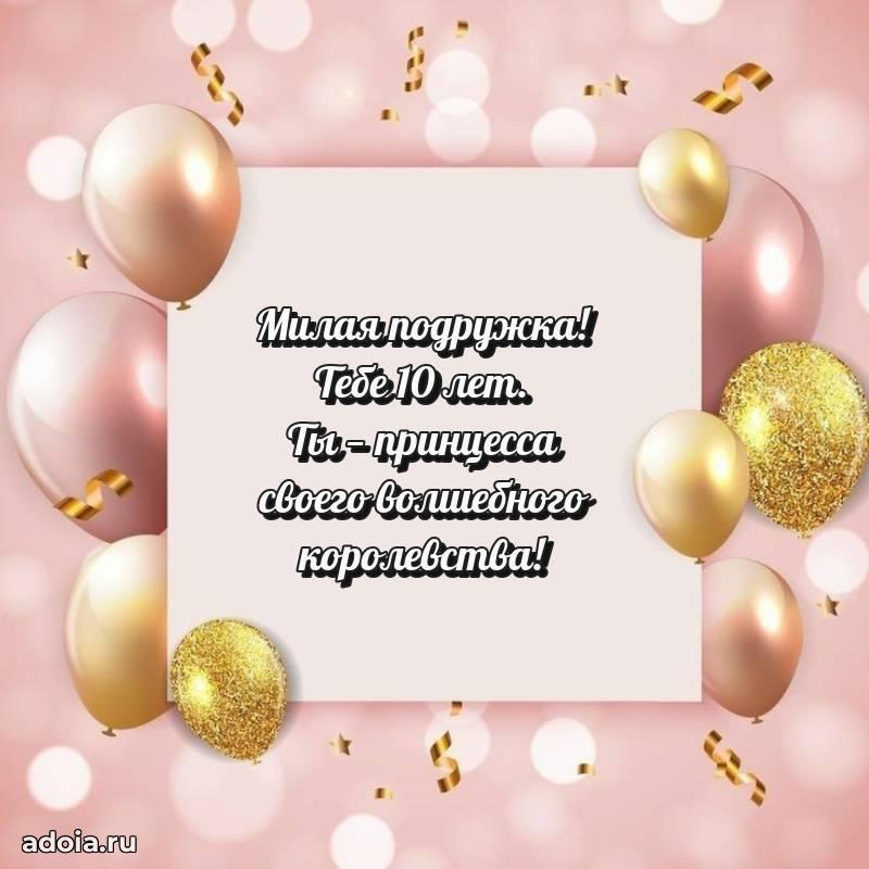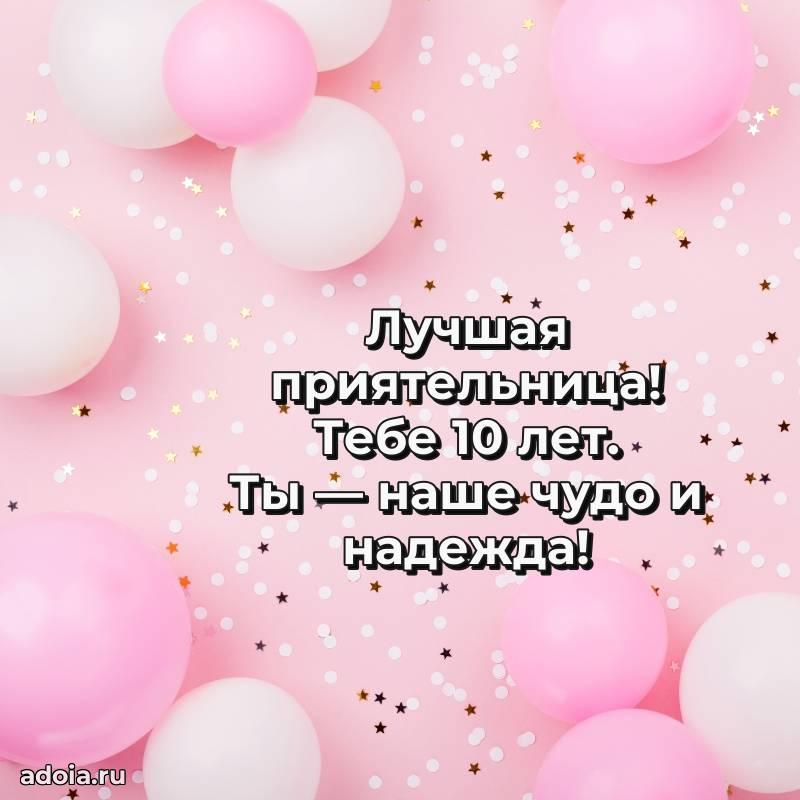В поисках красивых и современных открыток? Вы попали по адресу! Здесь вы найдете картинки с днем рождения Подруге на 10 лет! Все картинки в высоком качестве, которые можно скачать или отправить через WhatsApp бесплатно. Также вы найдете много прикольных и мерцающих гифок и анимаций, которые поднимут настроение! Все открытки содержат поздравления в стихах и прозе.
