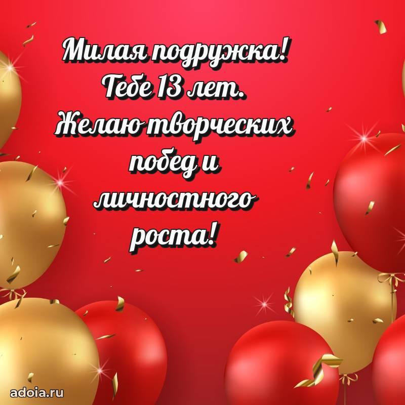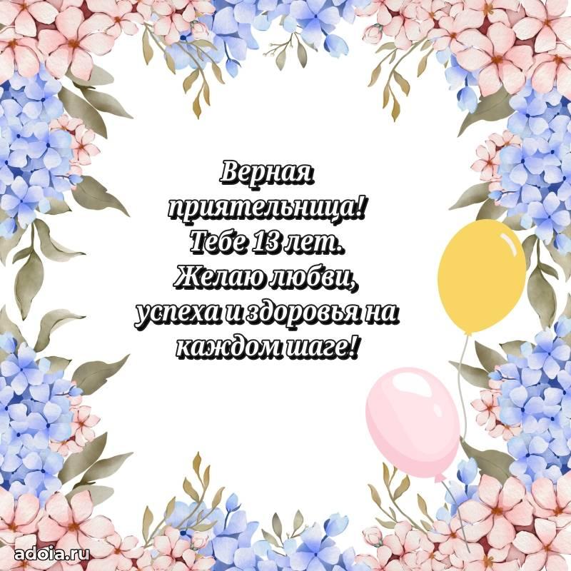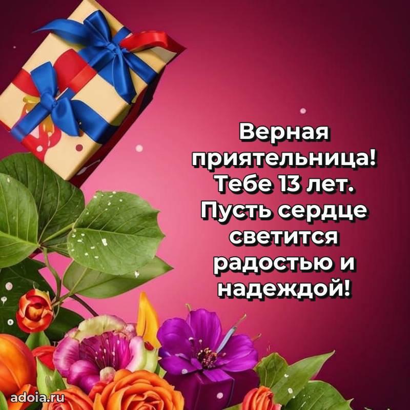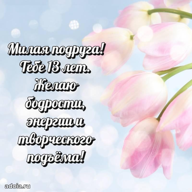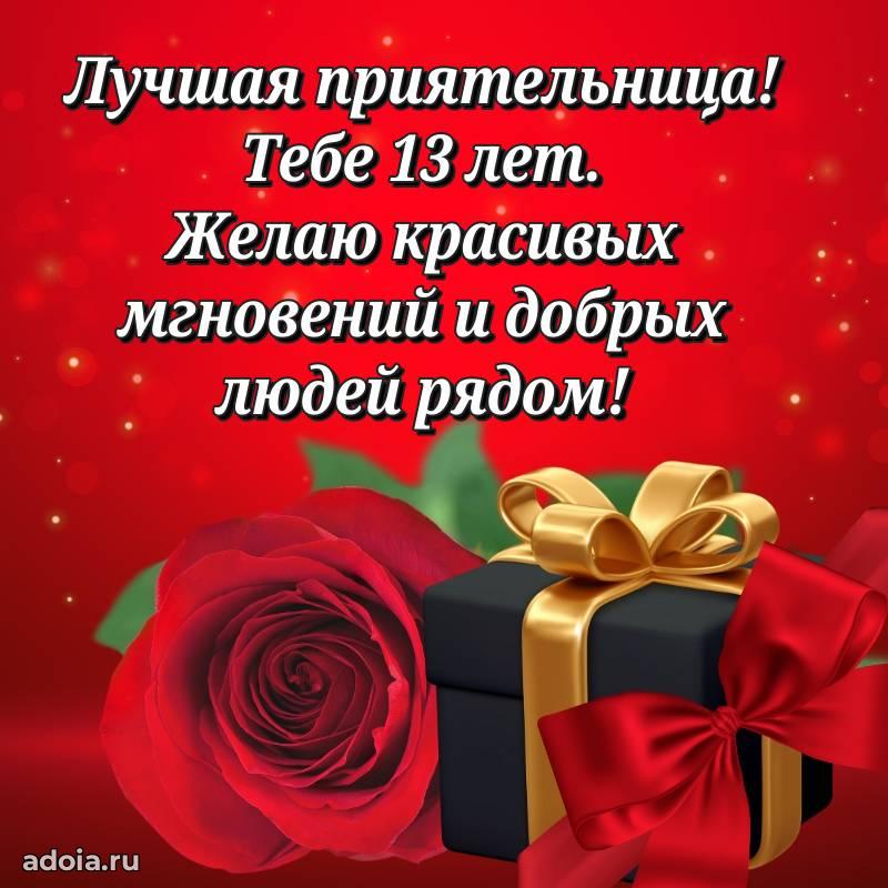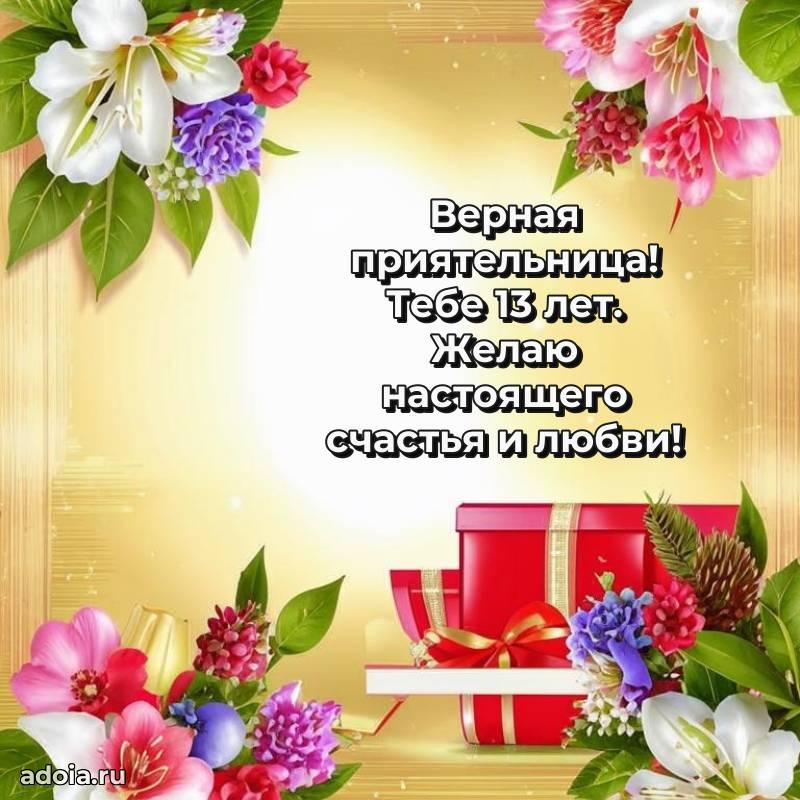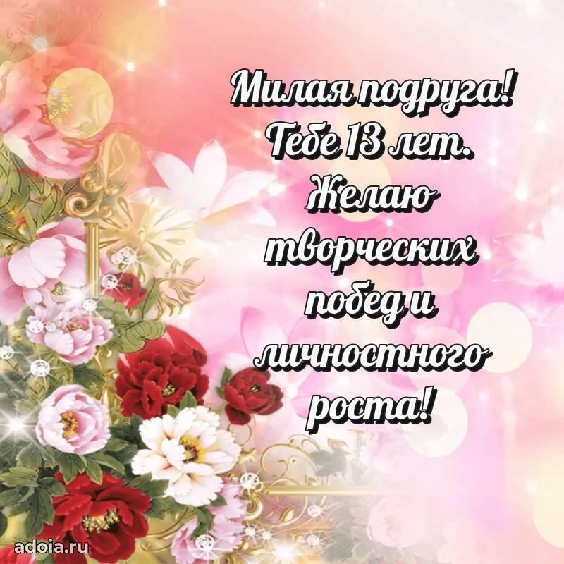В поисках красивых и современных открыток? Вы попали по адресу! Здесь вы найдете картинки с днем рождения Подруге на 13 лет! Все картинки в высоком качестве, которые можно скачать или отправить через WhatsApp бесплатно. Также вы найдете много прикольных и мерцающих гифок и анимаций, которые поднимут настроение! Все открытки содержат поздравления в стихах и прозе.