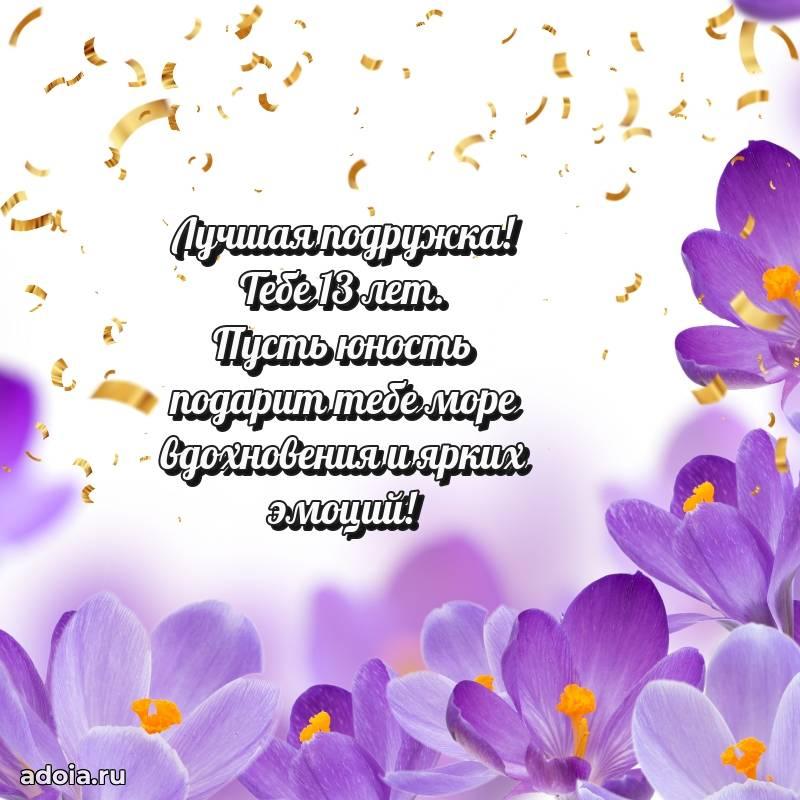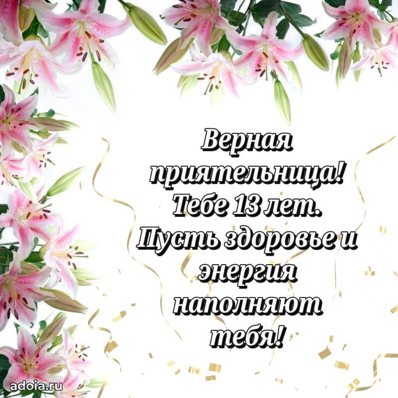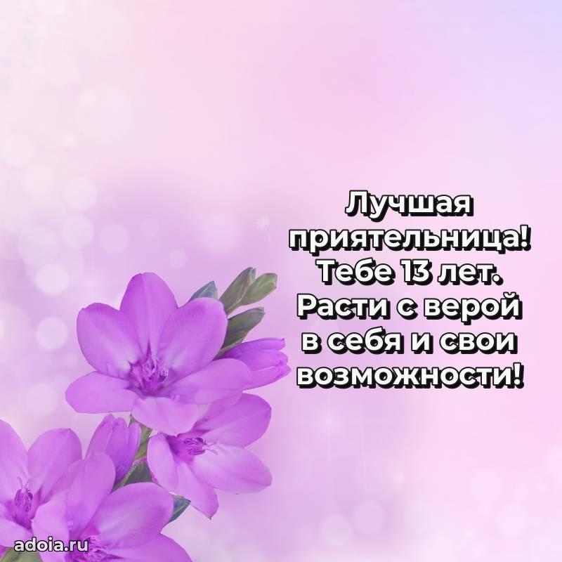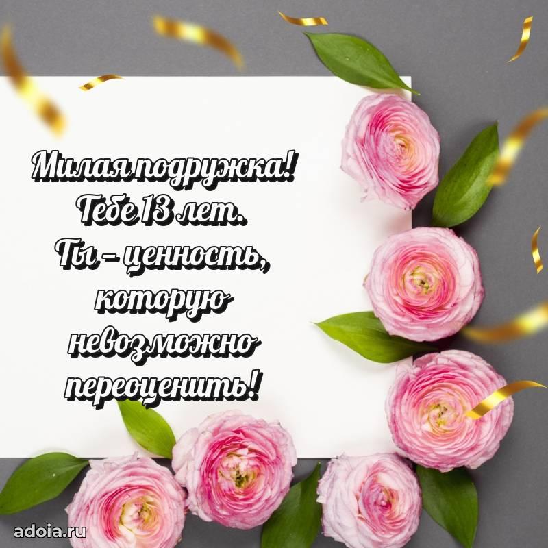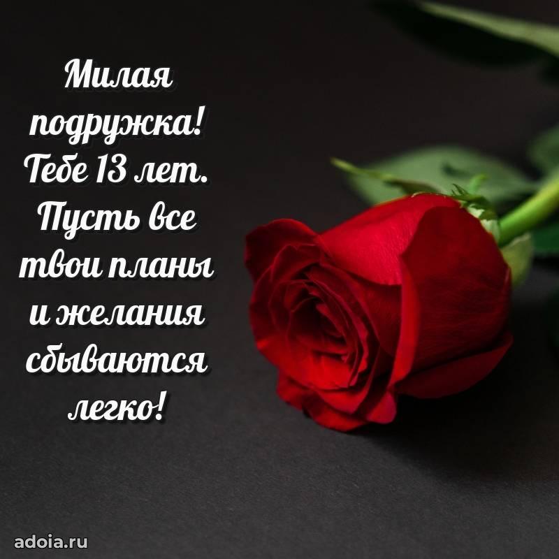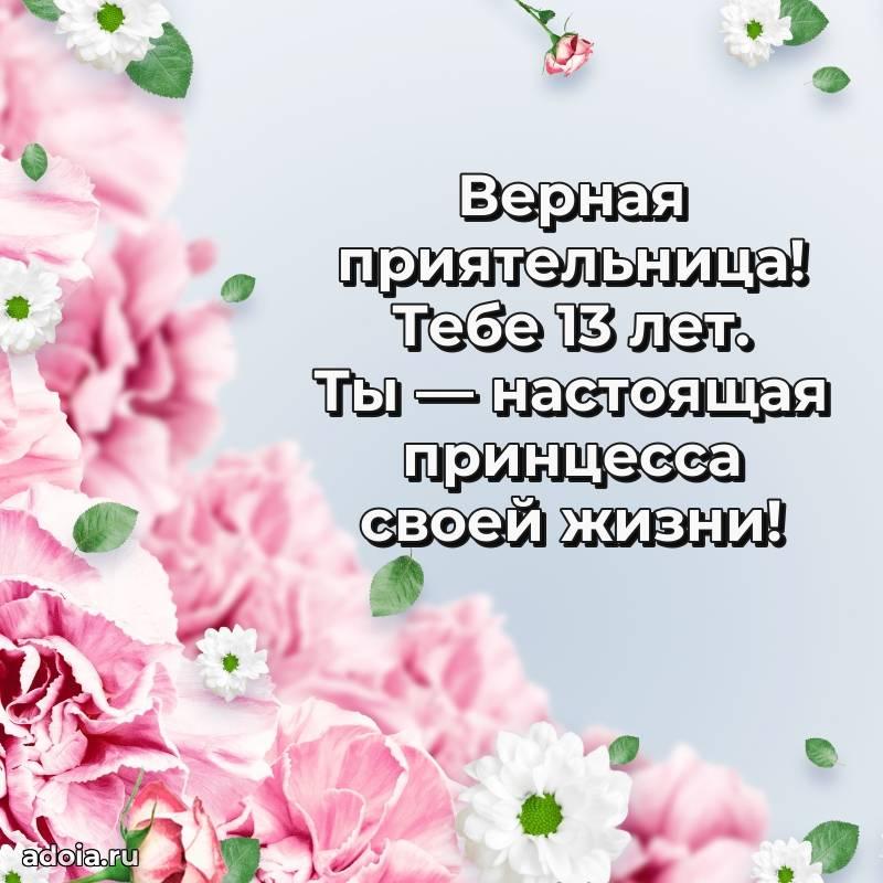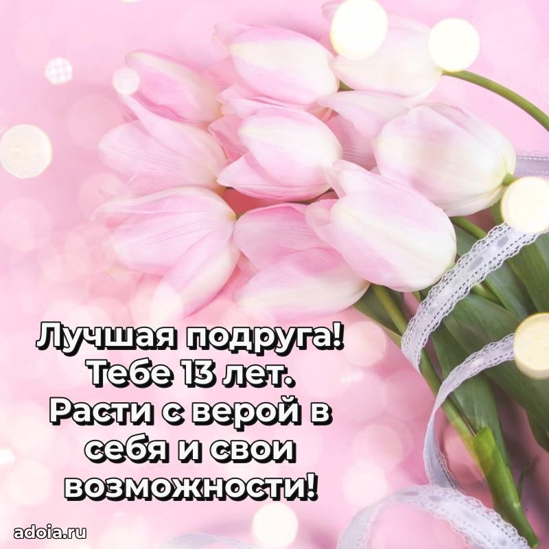 В поисках красивых и современных открыток? Вы попали по адресу! Здесь вы найдете картинки с днем рождения Подруге на 13 лет! Все картинки в высоком качестве, которые можно скачать или отправить через WhatsApp бесплатно. Также вы найдете много прикольных и мерцающих гифок и анимаций, которые поднимут настроение! Все открытки содержат поздравления в стихах и прозе.