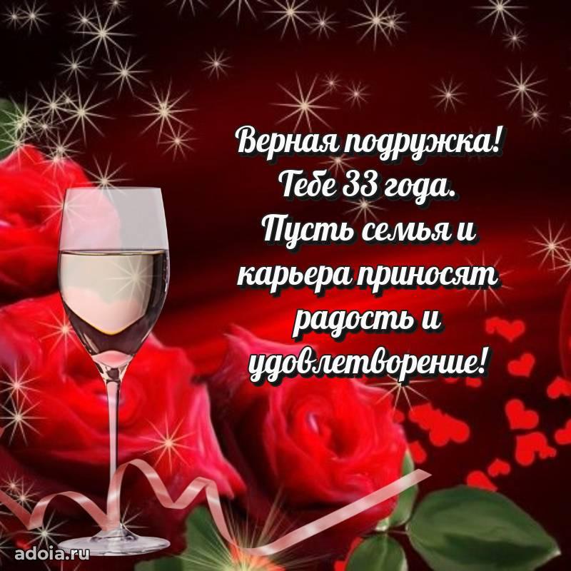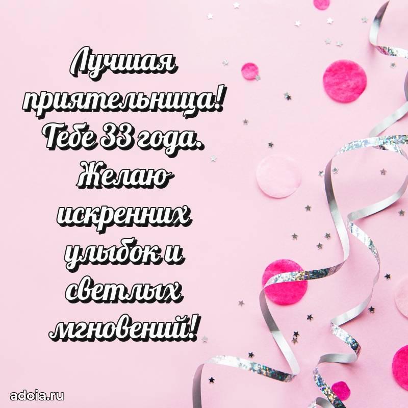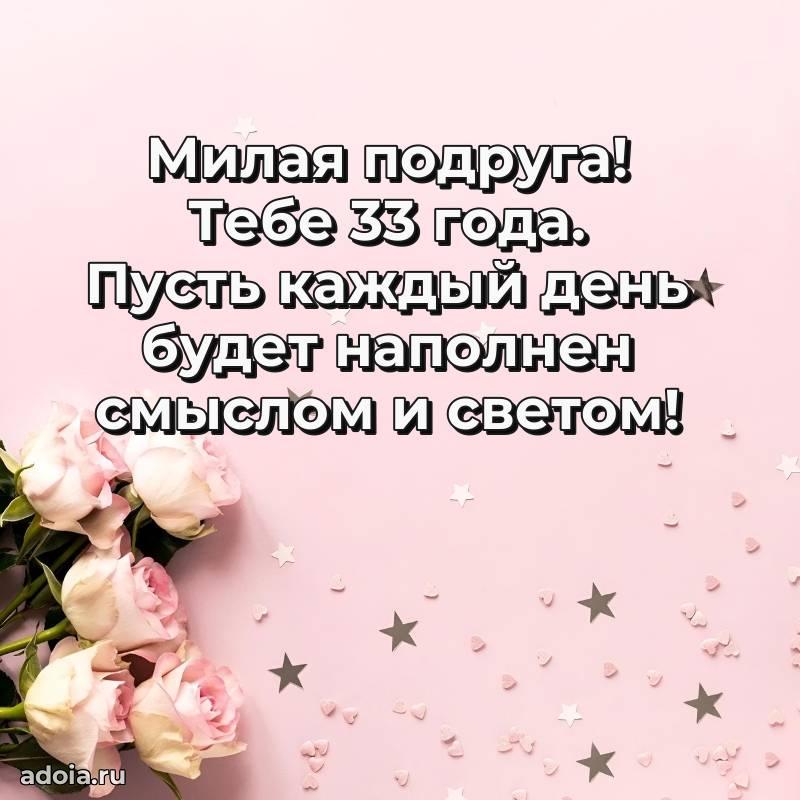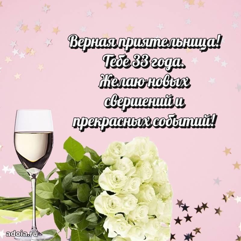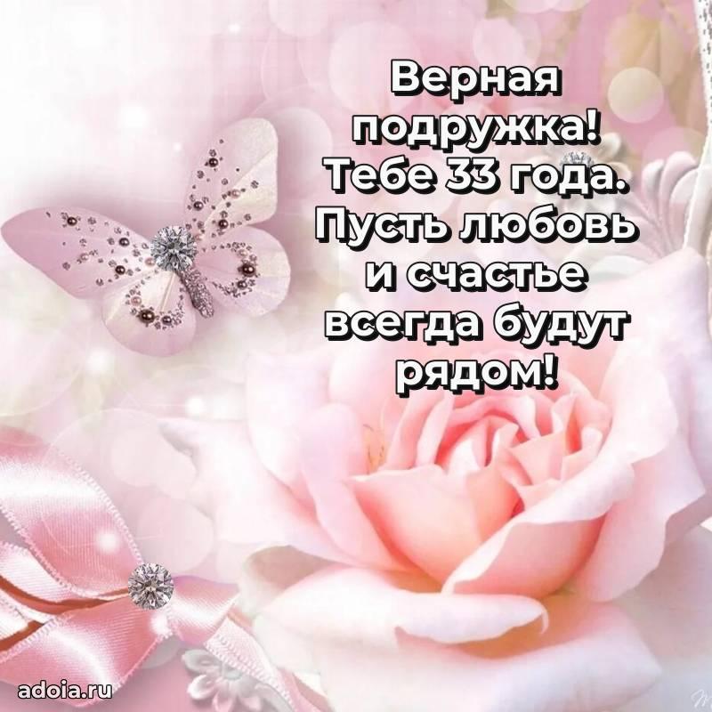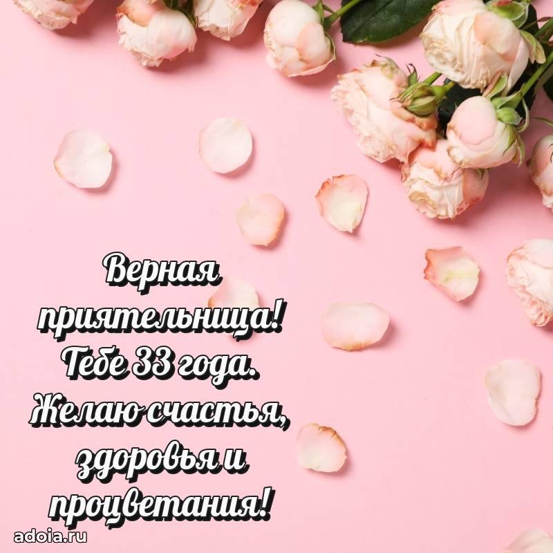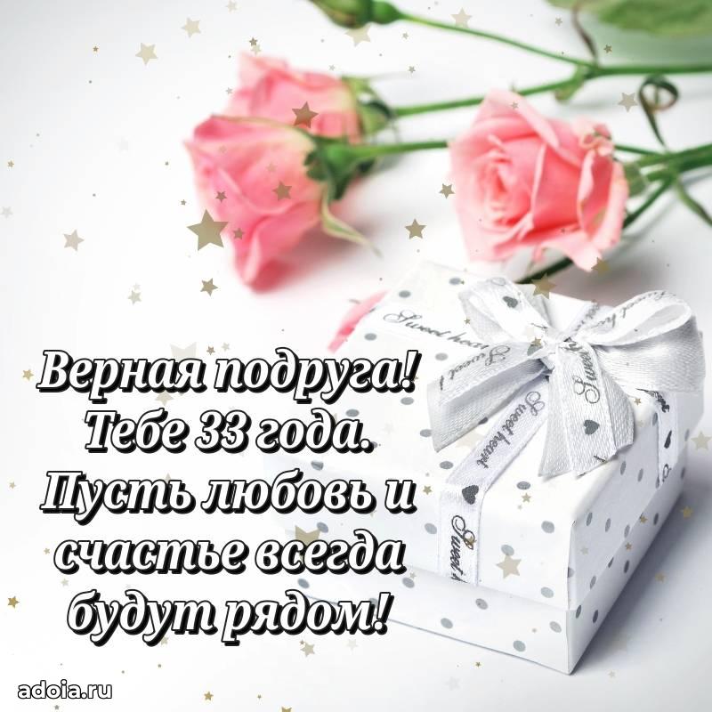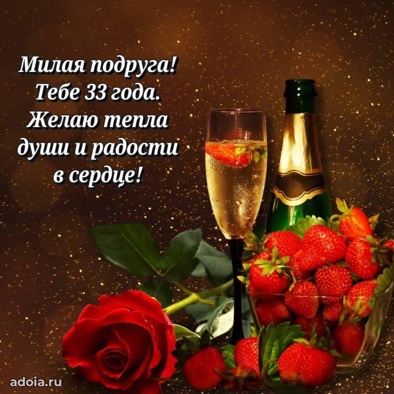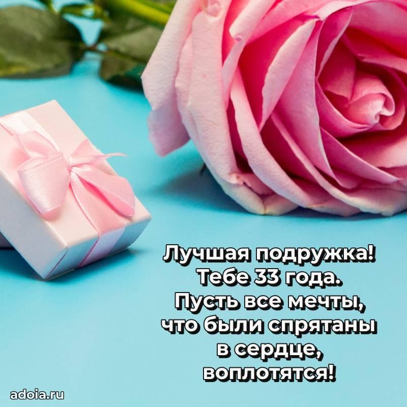 В поисках красивых и современных открыток? Вы попали по адресу! Здесь вы найдете картинки с днем рождения Подруге на 33 года! Все картинки в высоком качестве, которые можно скачать или отправить через WhatsApp бесплатно. Также вы найдете много прикольных и мерцающих гифок и анимаций, которые поднимут настроение! Все открытки содержат поздравления в стихах и прозе.