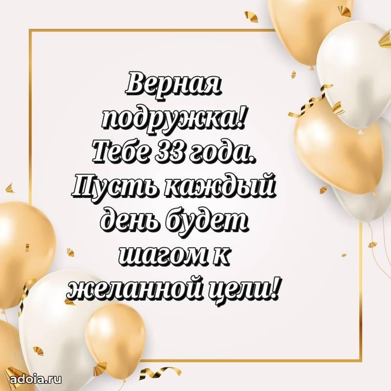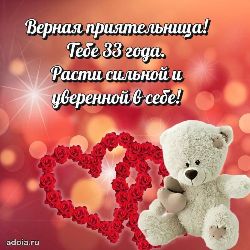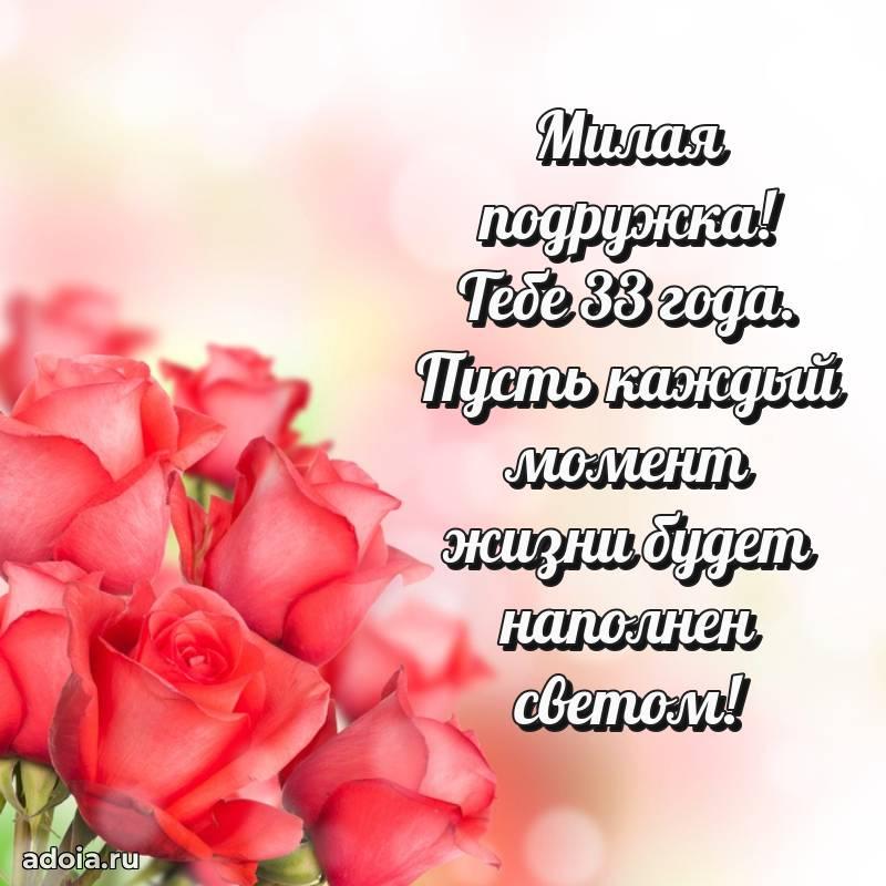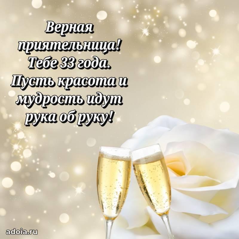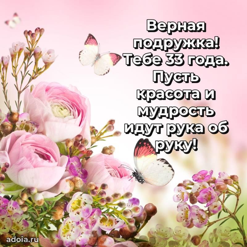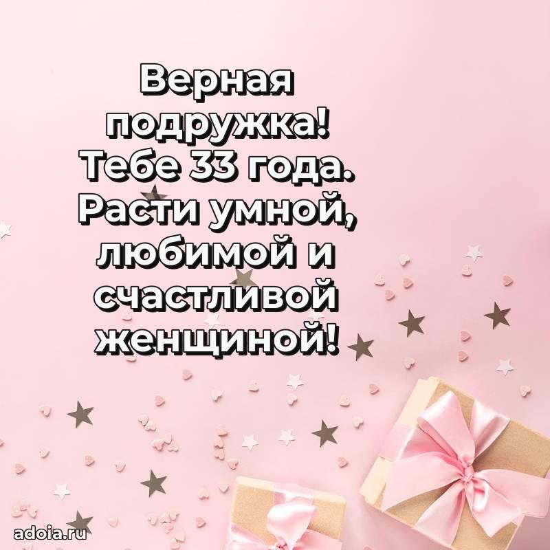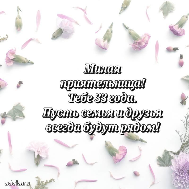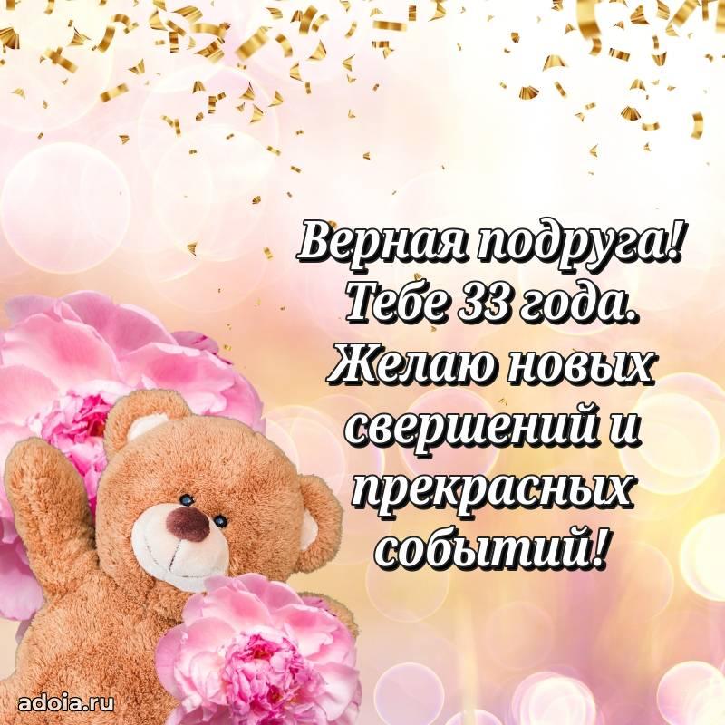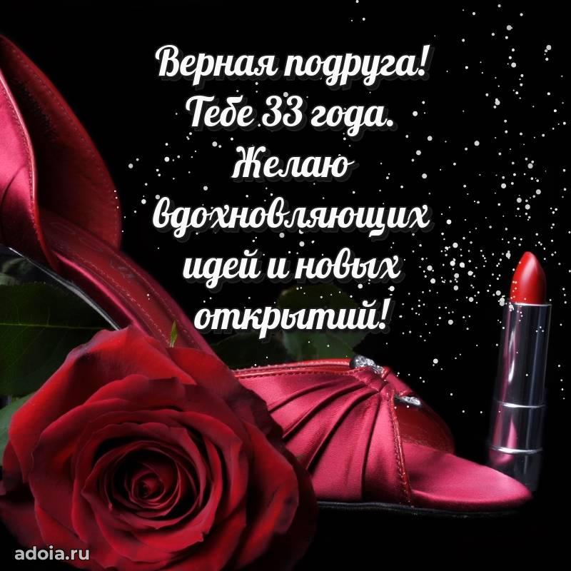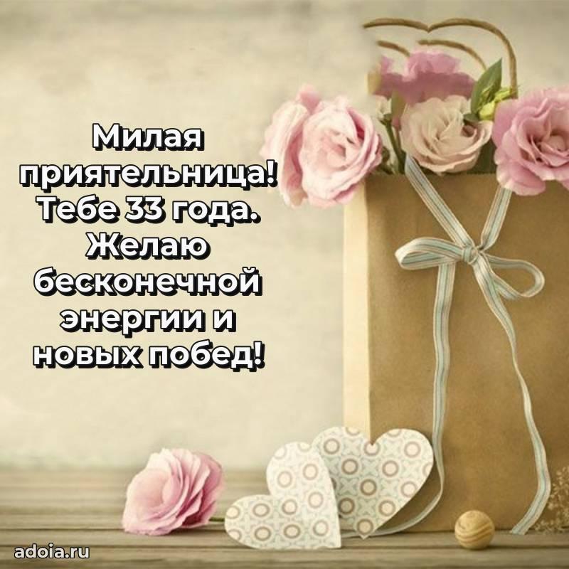 В поисках красивых и современных открыток? Вы попали по адресу! Здесь вы найдете картинки с днем рождения Подруге на 33 года! Все картинки в высоком качестве, которые можно скачать или отправить через WhatsApp бесплатно. Также вы найдете много прикольных и мерцающих гифок и анимаций, которые поднимут настроение! Все открытки содержат поздравления в стихах и прозе.