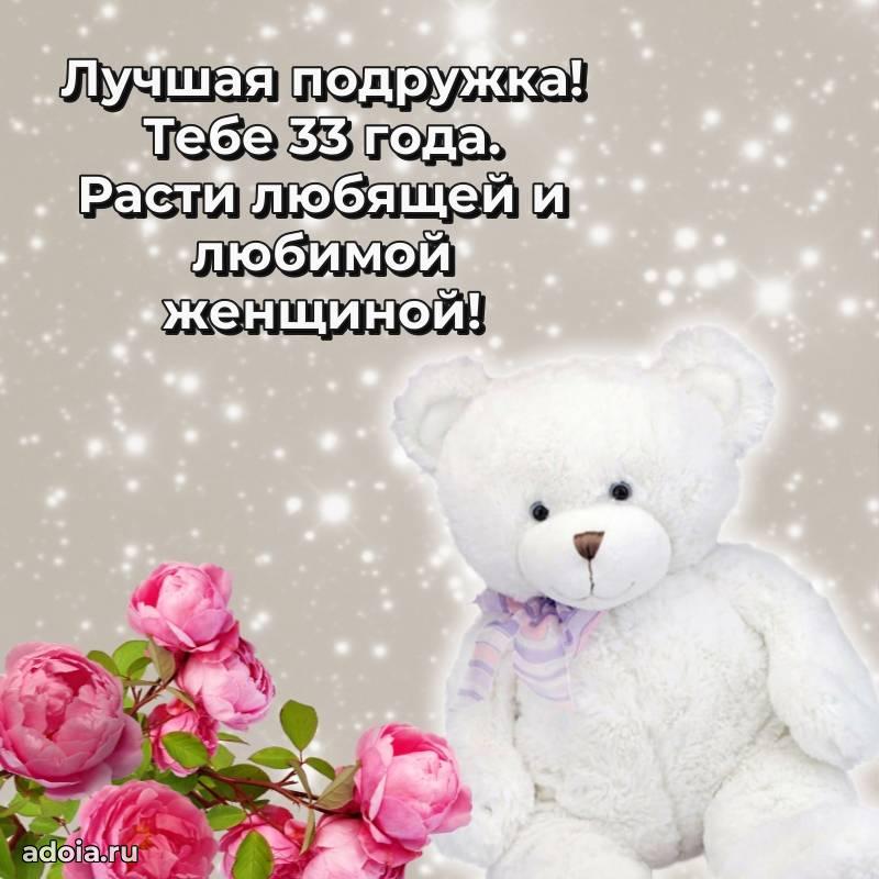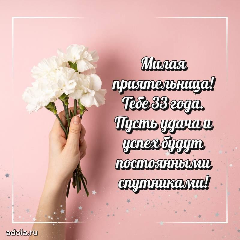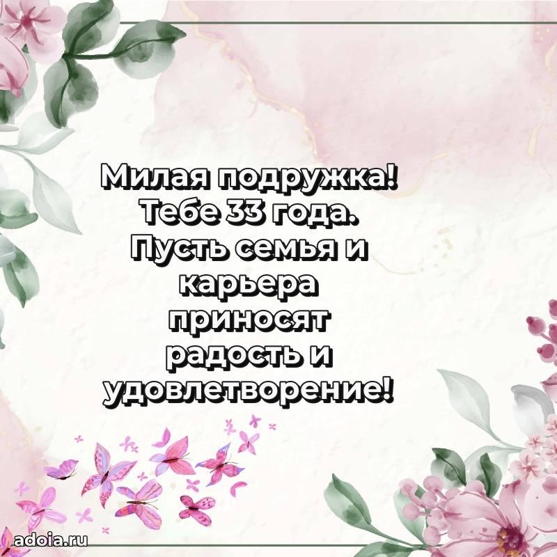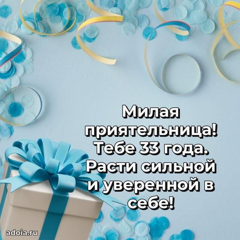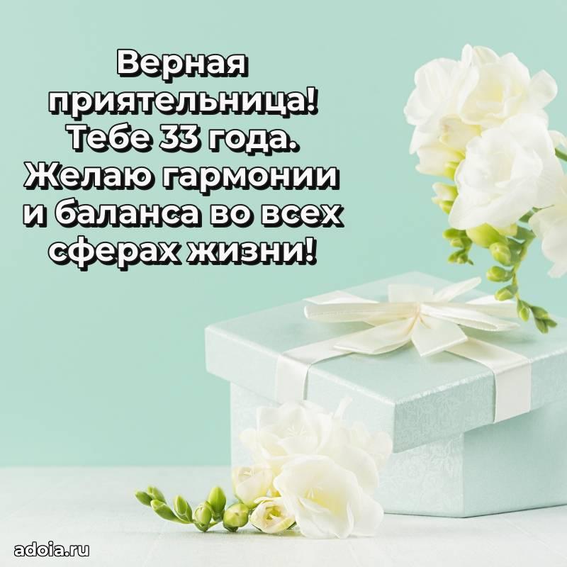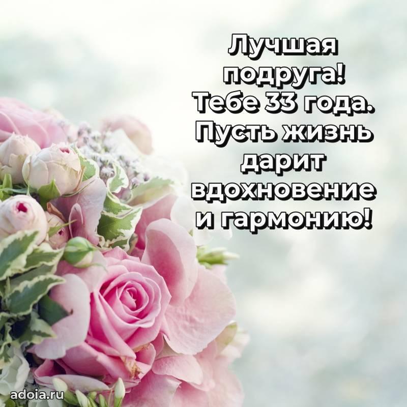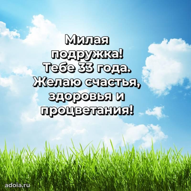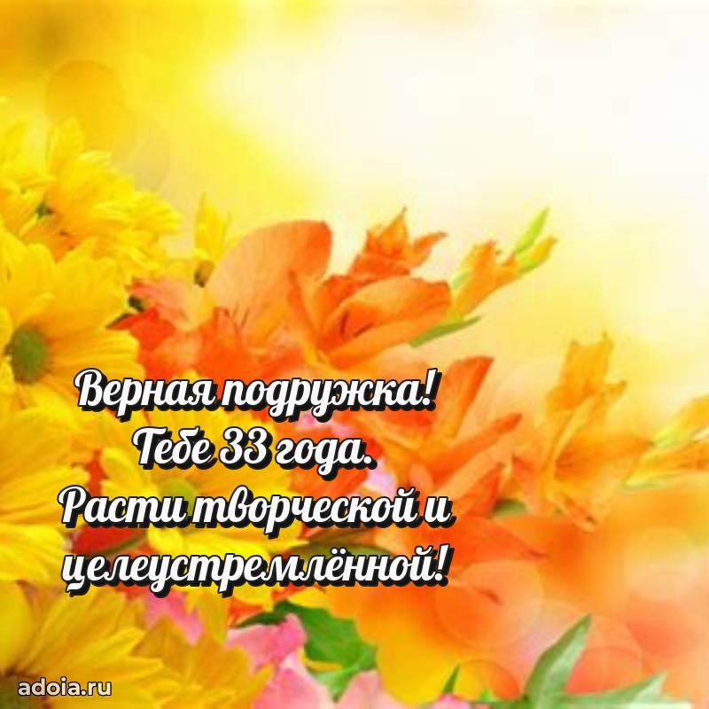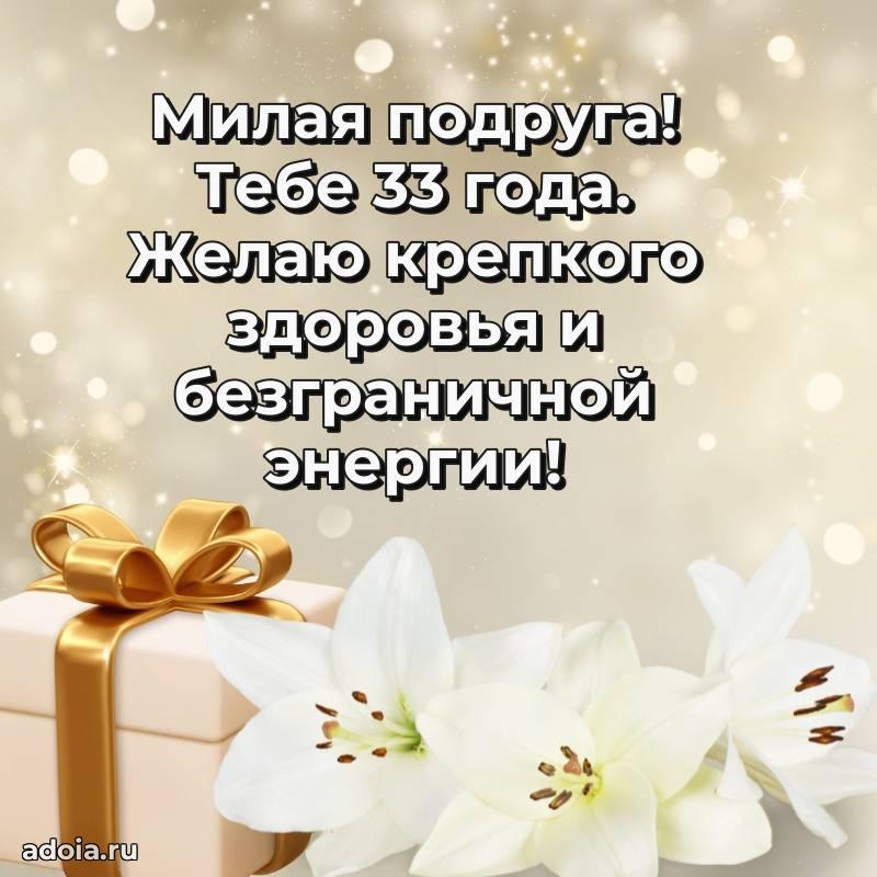 В поисках красивых и современных открыток? Вы попали по адресу! Здесь вы найдете картинки с днем рождения Подруге на 33 года! Все картинки в высоком качестве, которые можно скачать или отправить через WhatsApp бесплатно. Также вы найдете много прикольных и мерцающих гифок и анимаций, которые поднимут настроение! Все открытки содержат поздравления в стихах и прозе.