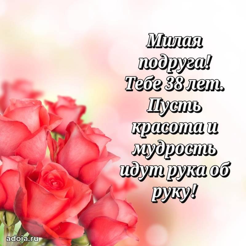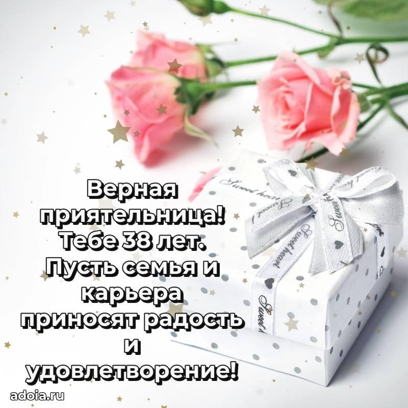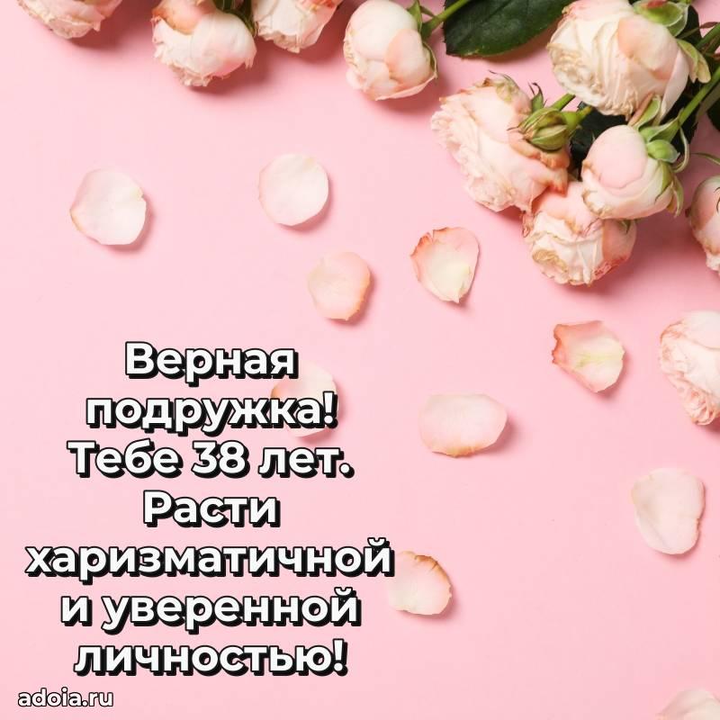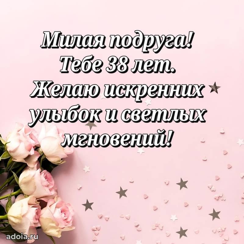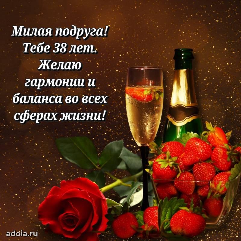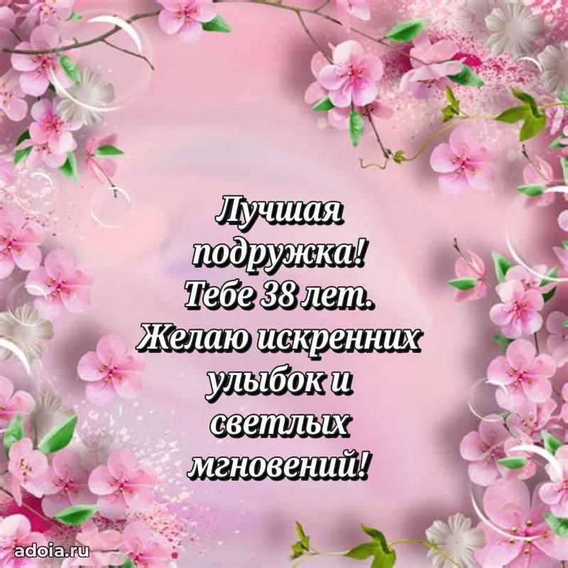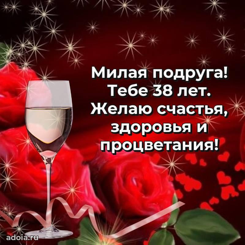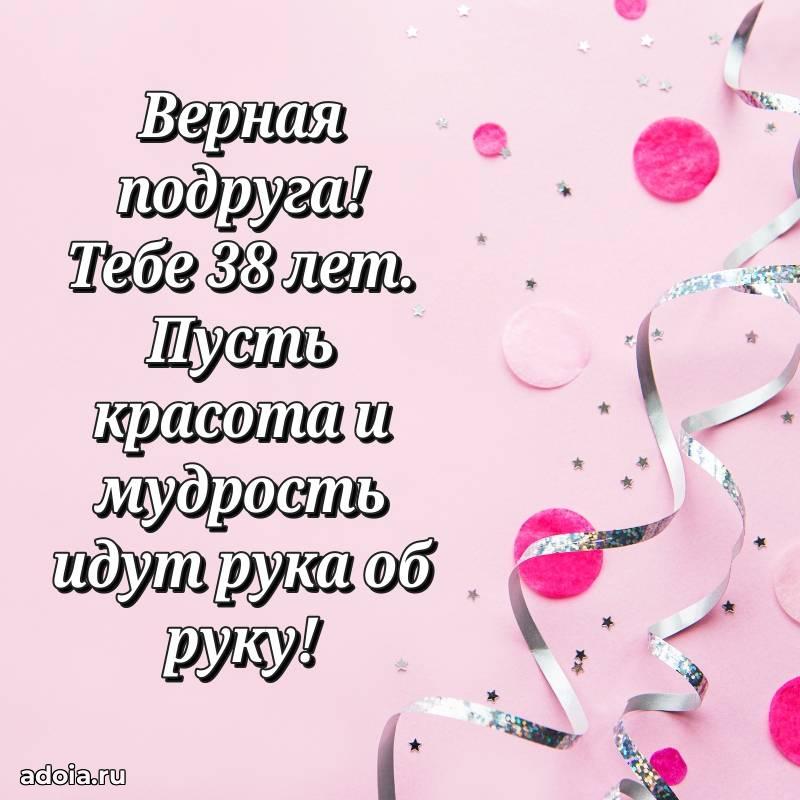 В поисках красивых и современных открыток? Вы попали по адресу! Здесь вы найдете картинки с днем рождения Подруге на 38 лет! Все картинки в высоком качестве, которые можно скачать или отправить через WhatsApp бесплатно. Также вы найдете много прикольных и мерцающих гифок и анимаций, которые поднимут настроение! Все открытки содержат поздравления в стихах и прозе.