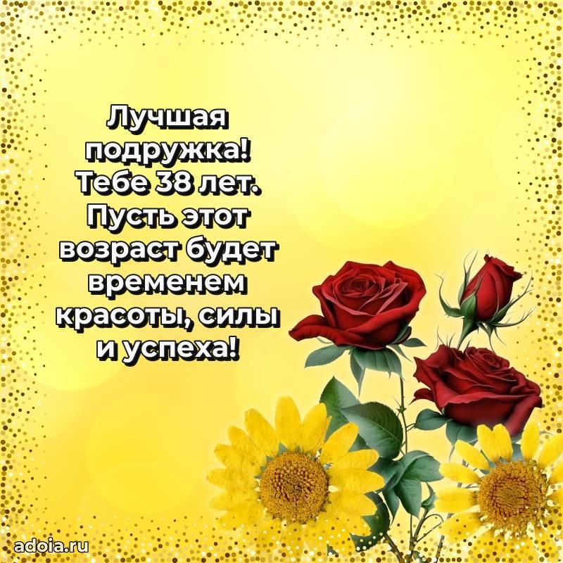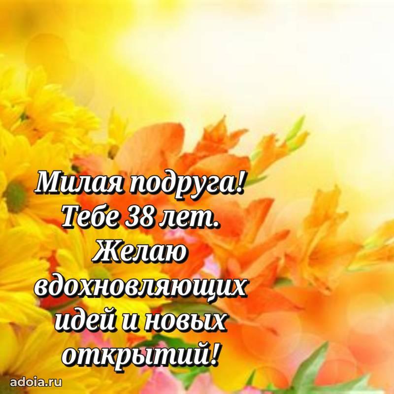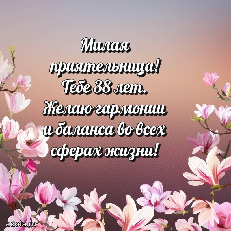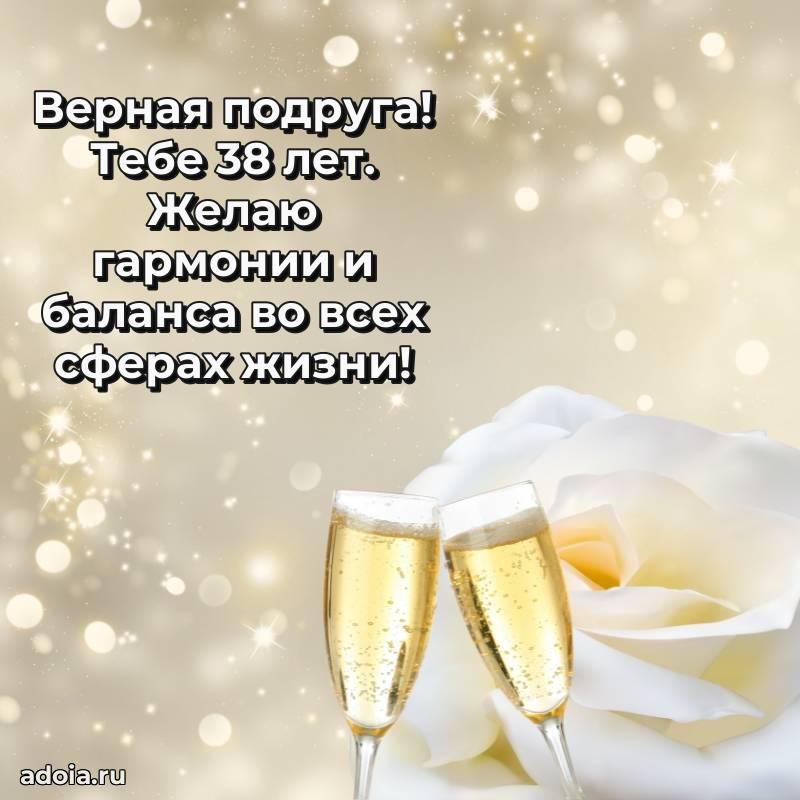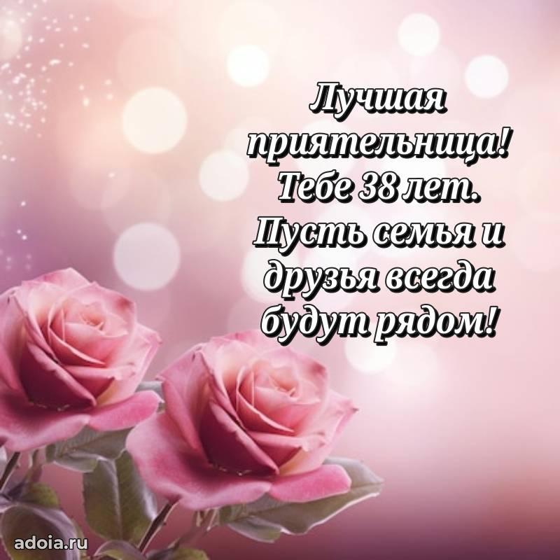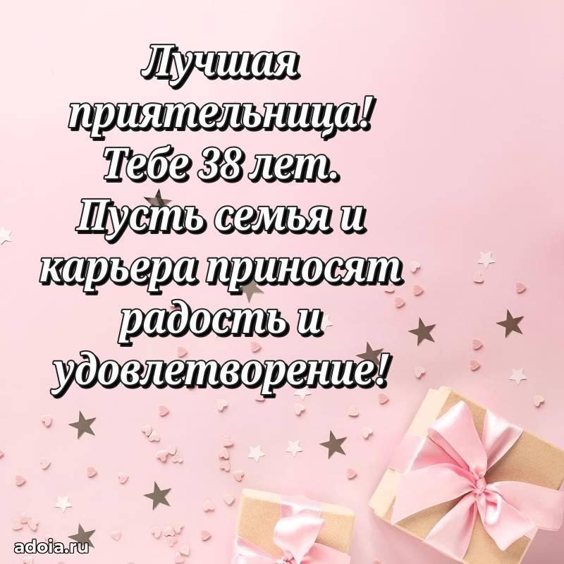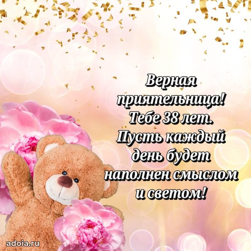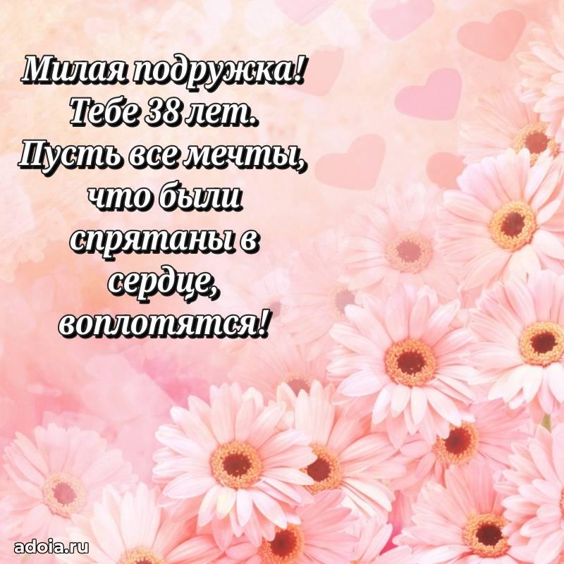 В поисках красивых и современных открыток? Вы попали по адресу! Здесь вы найдете картинки с днем рождения Подруге на 38 лет! Все картинки в высоком качестве, которые можно скачать или отправить через WhatsApp бесплатно. Также вы найдете много прикольных и мерцающих гифок и анимаций, которые поднимут настроение! Все открытки содержат поздравления в стихах и прозе.