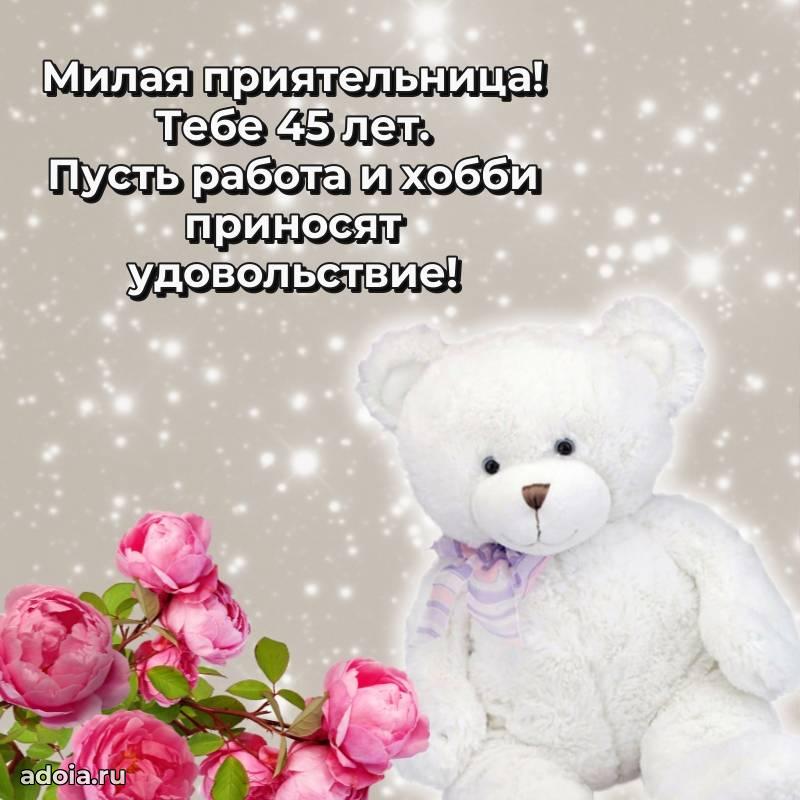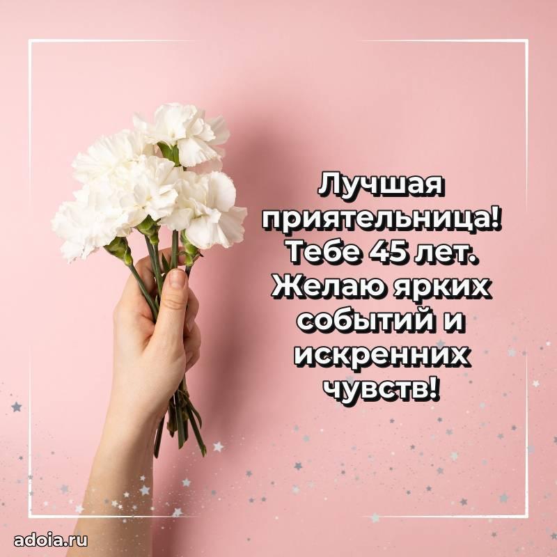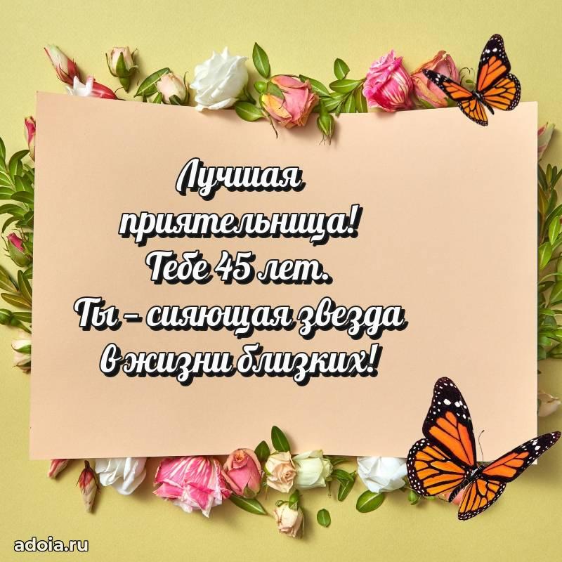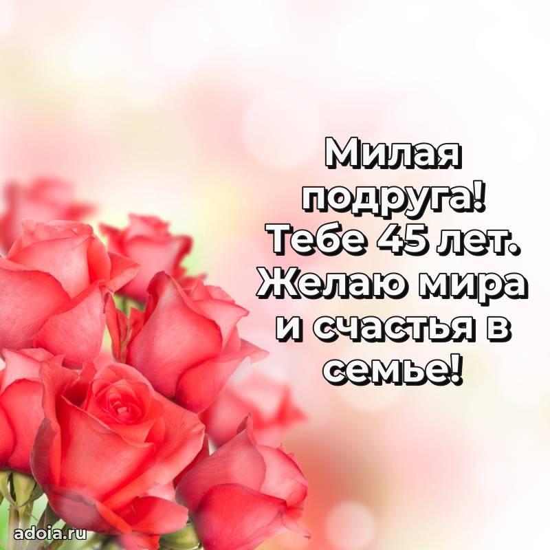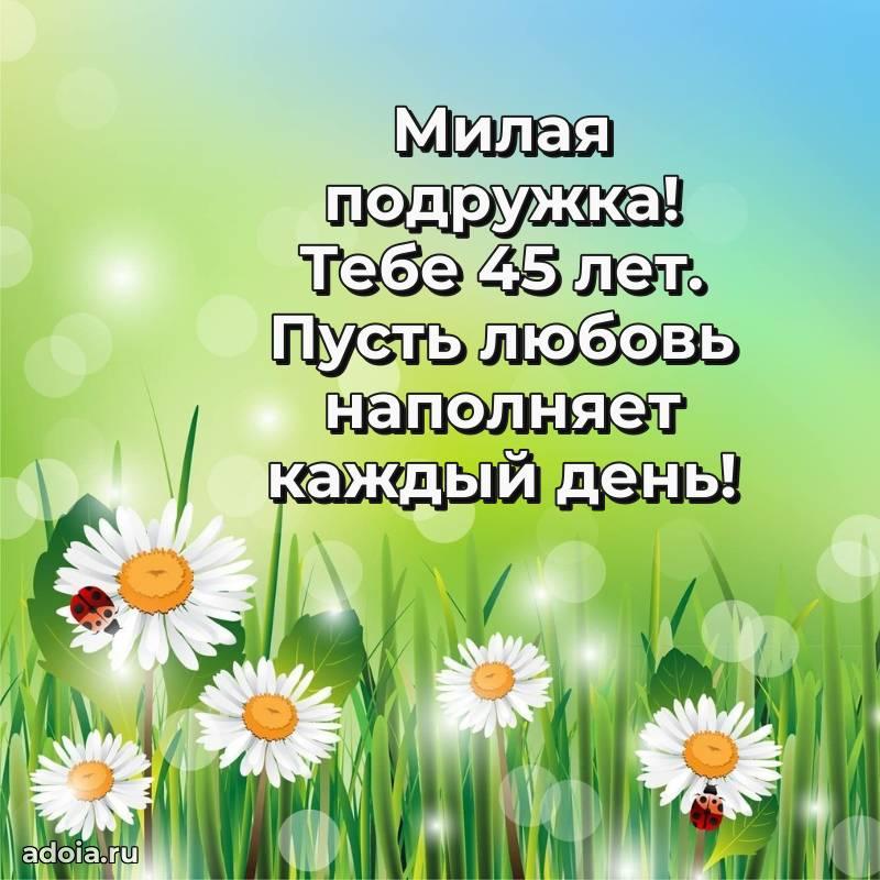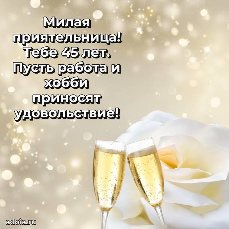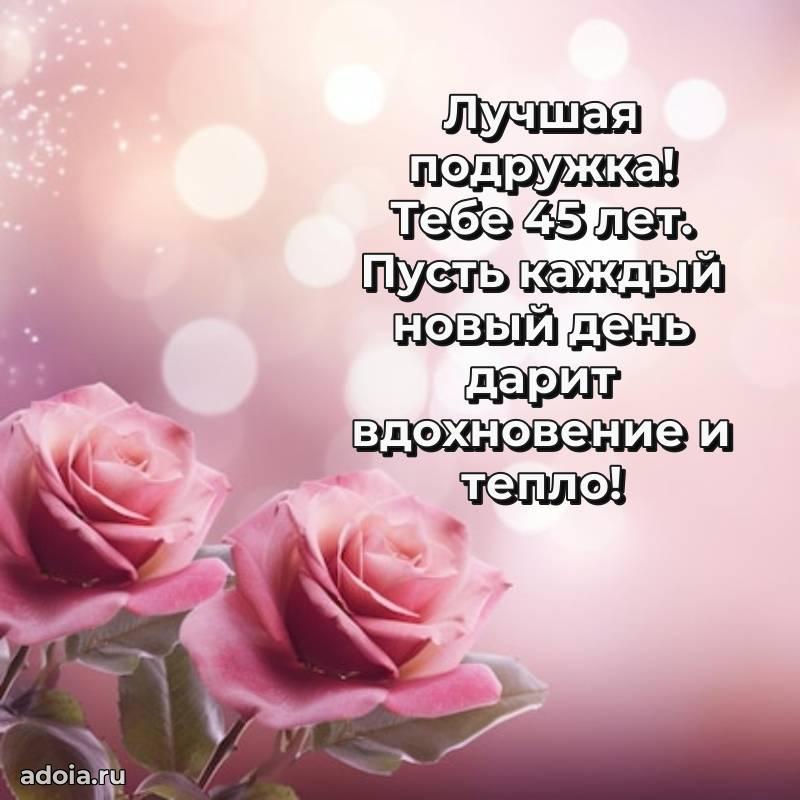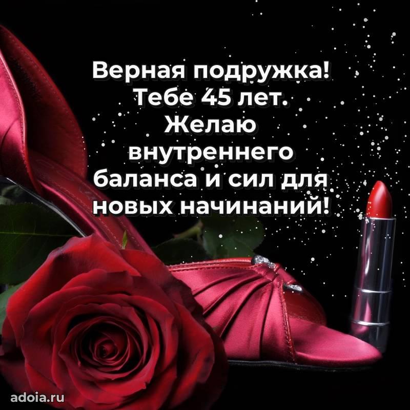 В поисках красивых и современных открыток? Вы попали по адресу! Здесь вы найдете картинки с днем рождения Подруге на 45 лет! Все картинки в высоком качестве, которые можно скачать или отправить через WhatsApp бесплатно. Также вы найдете много прикольных и мерцающих гифок и анимаций, которые поднимут настроение! Все открытки содержат поздравления в стихах и прозе.