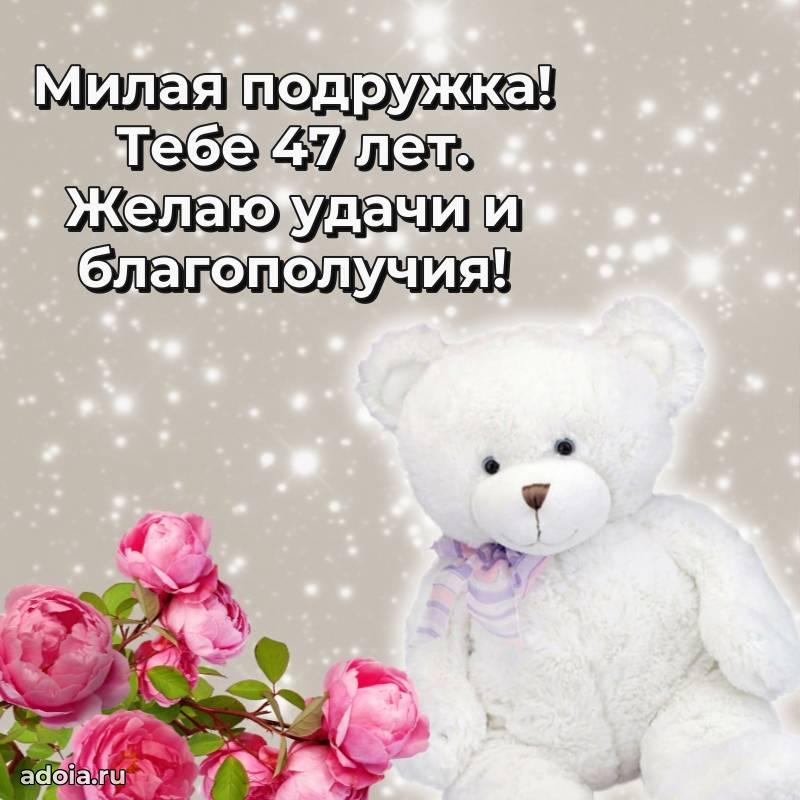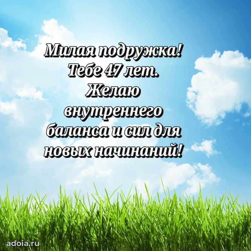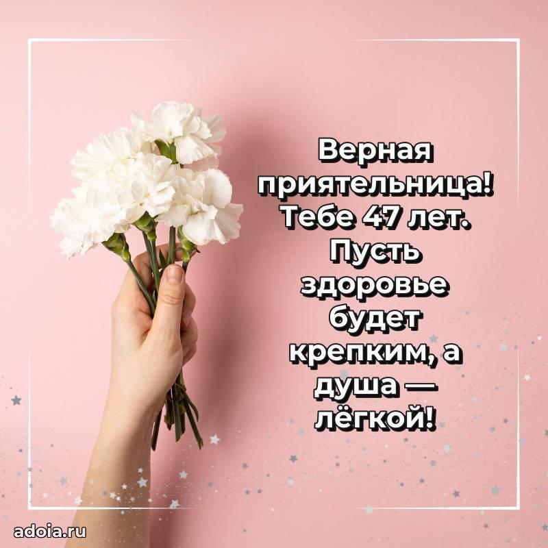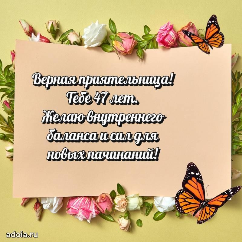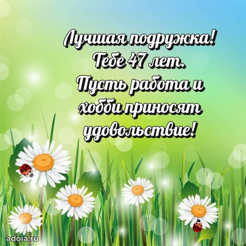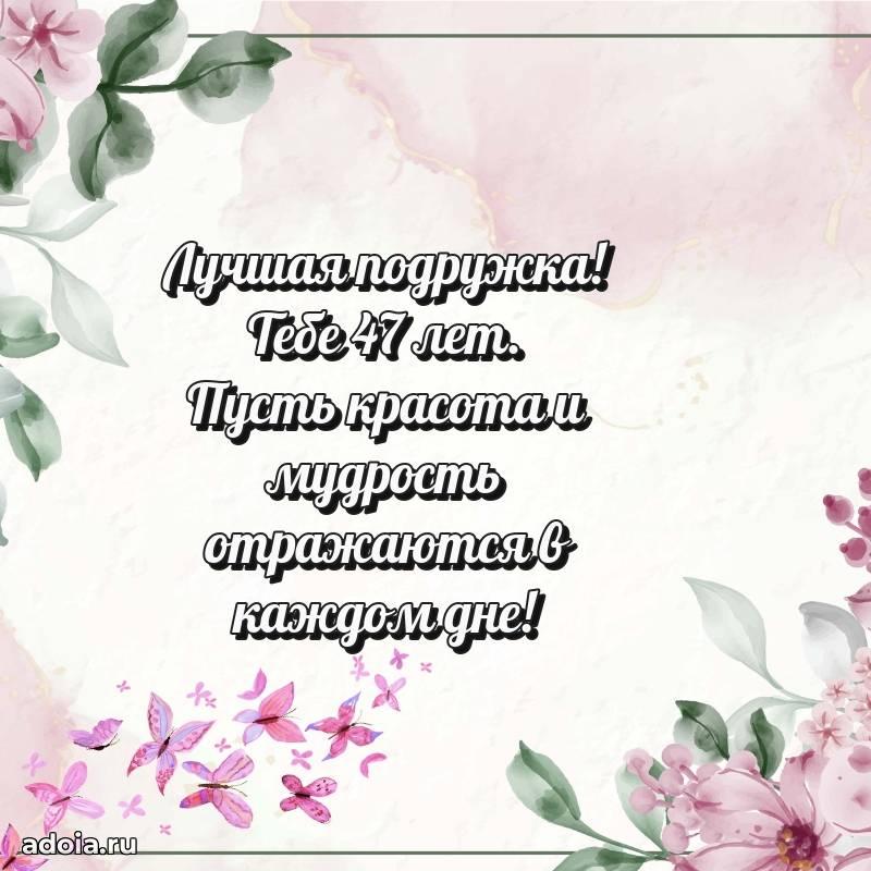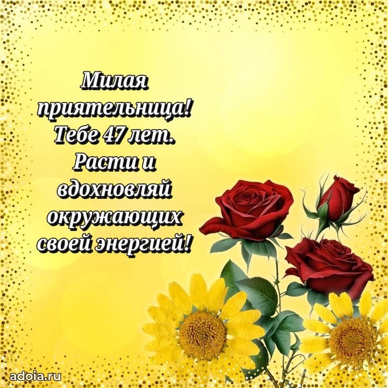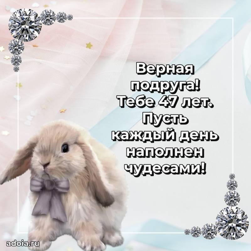 В поисках красивых и современных открыток? Вы попали по адресу! Здесь вы найдете картинки с днем рождения Подруге на 47 лет! Все картинки в высоком качестве, которые можно скачать или отправить через WhatsApp бесплатно. Также вы найдете много прикольных и мерцающих гифок и анимаций, которые поднимут настроение! Все открытки содержат поздравления в стихах и прозе.
