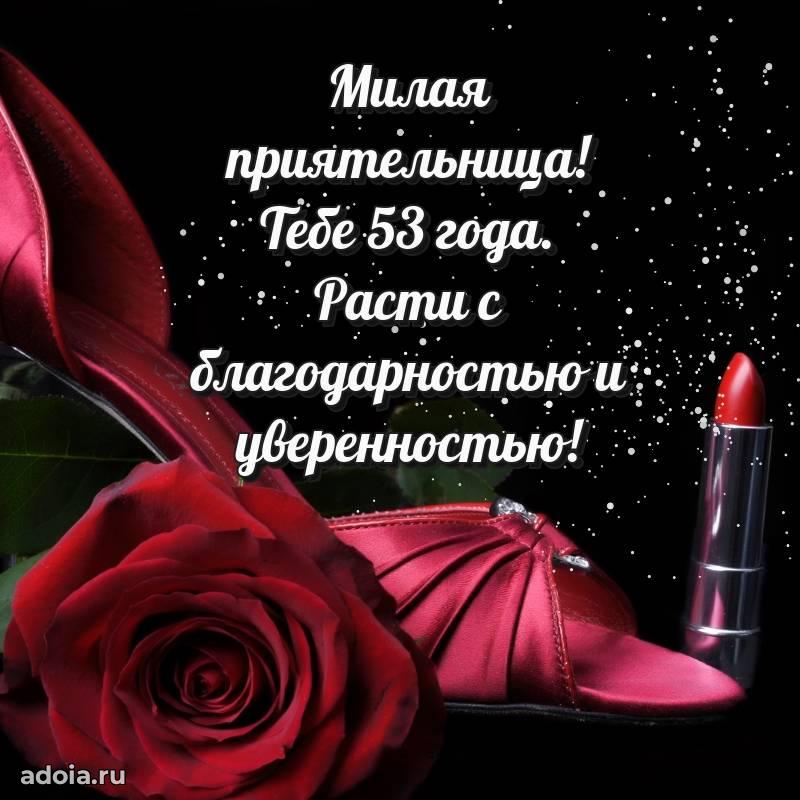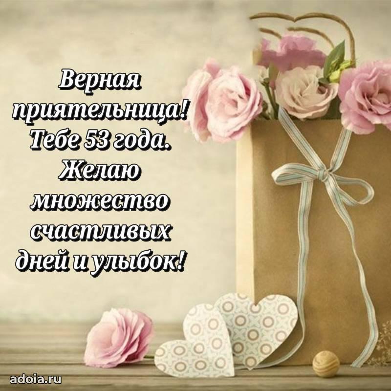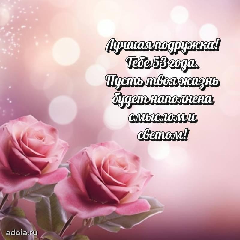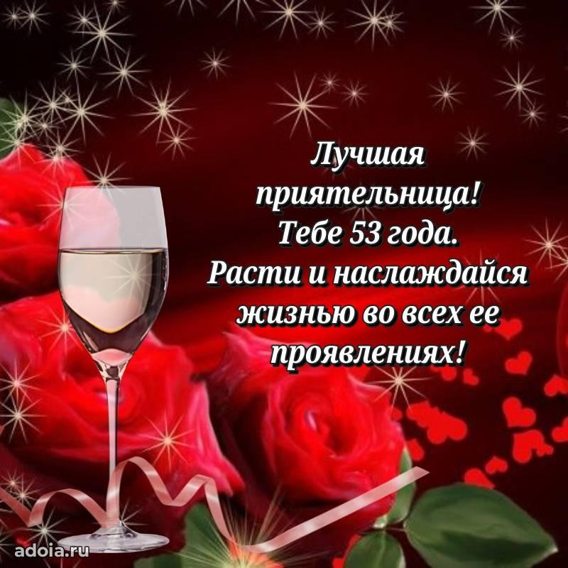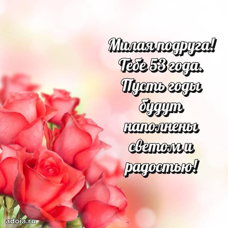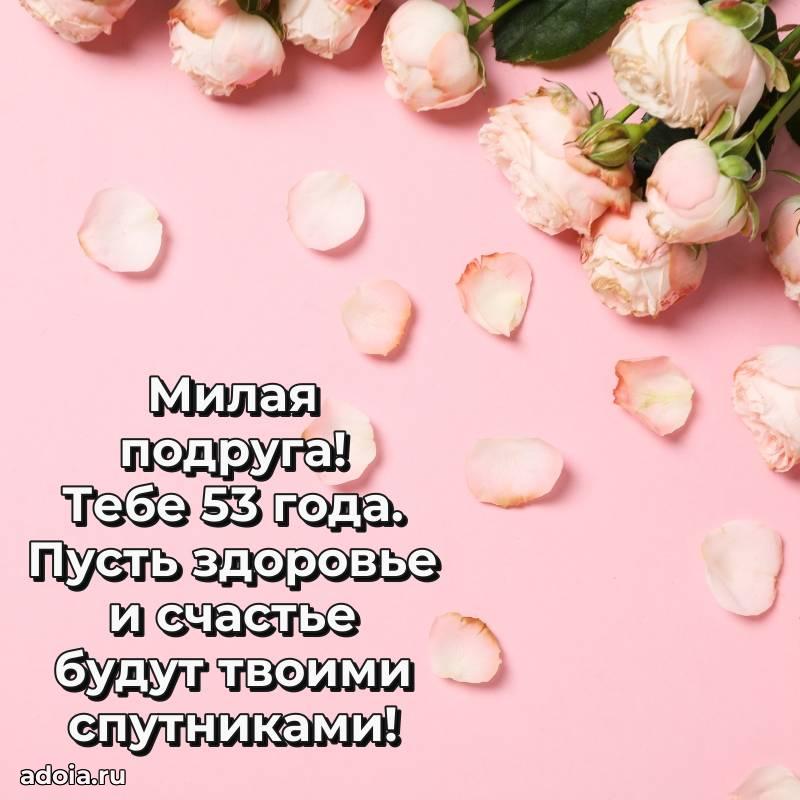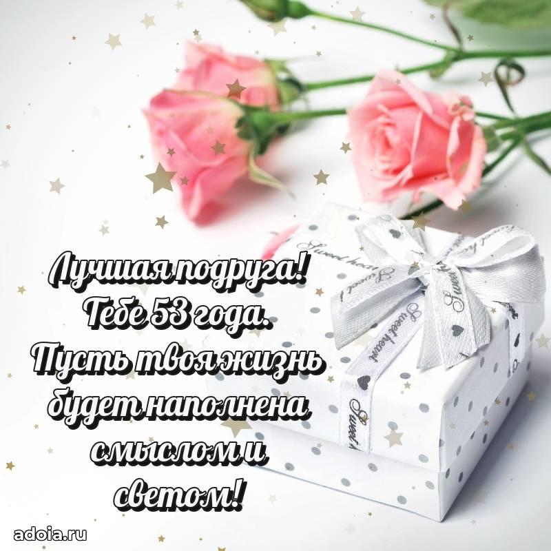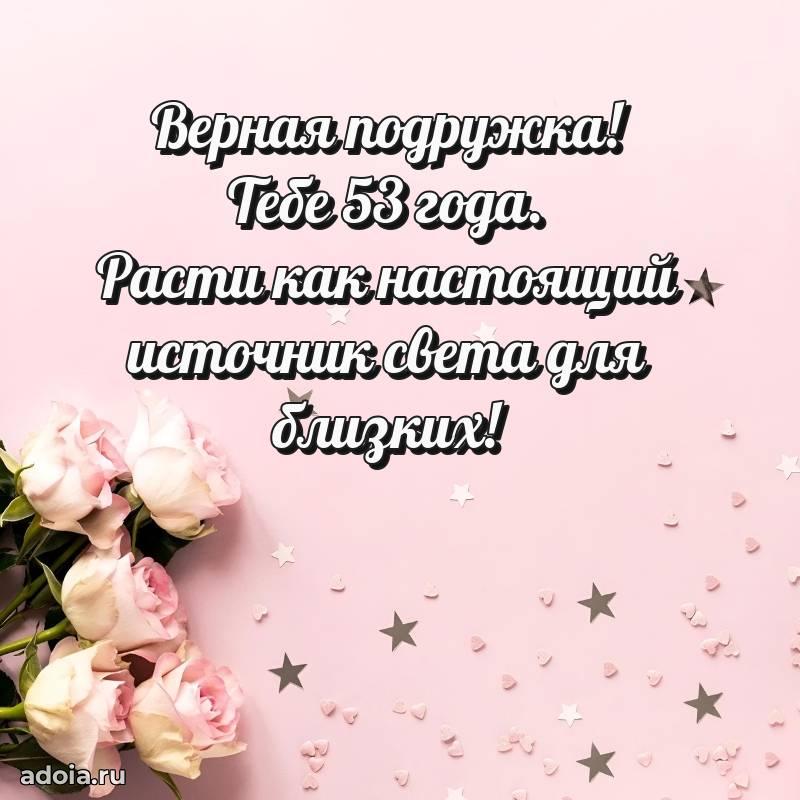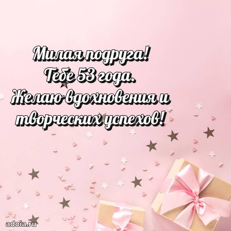 В поисках красивых и современных открыток? Вы попали по адресу! Здесь вы найдете картинки с днем рождения Подруге на 53 года! Все картинки в высоком качестве, которые можно скачать или отправить через WhatsApp бесплатно. Также вы найдете много прикольных и мерцающих гифок и анимаций, которые поднимут настроение! Все открытки содержат поздравления в стихах и прозе.