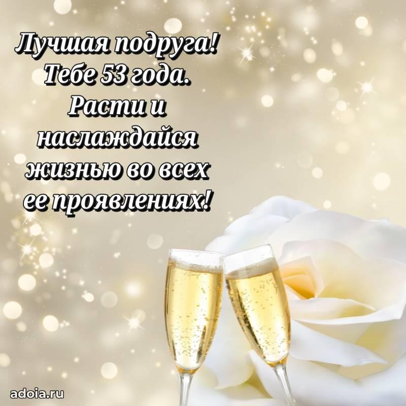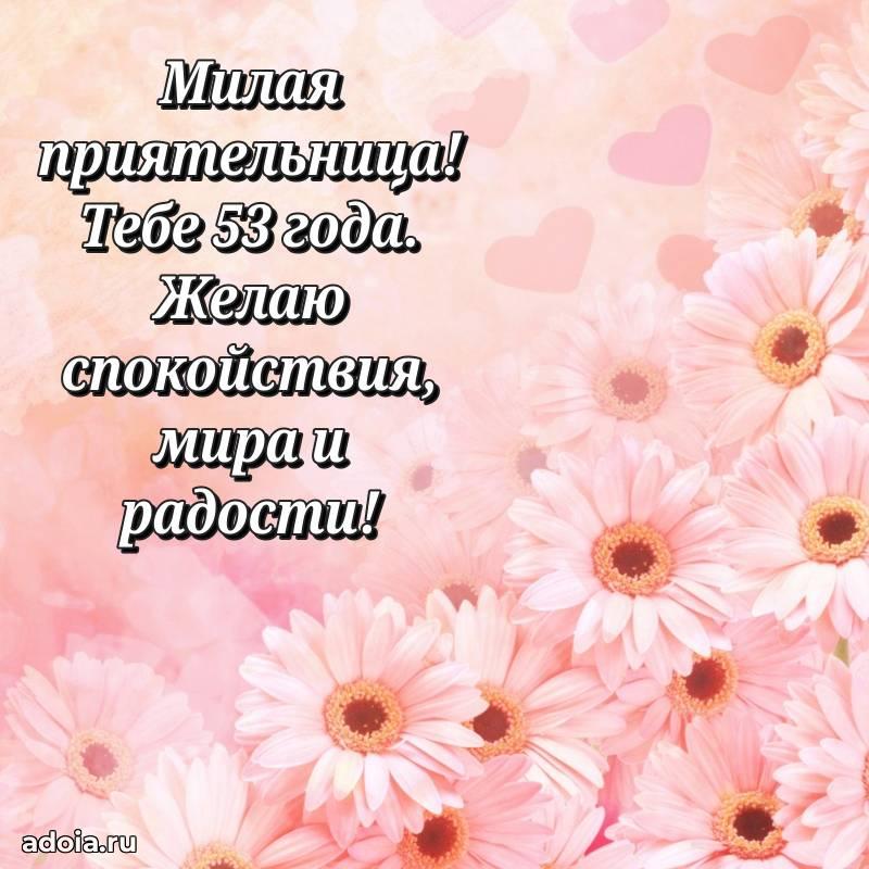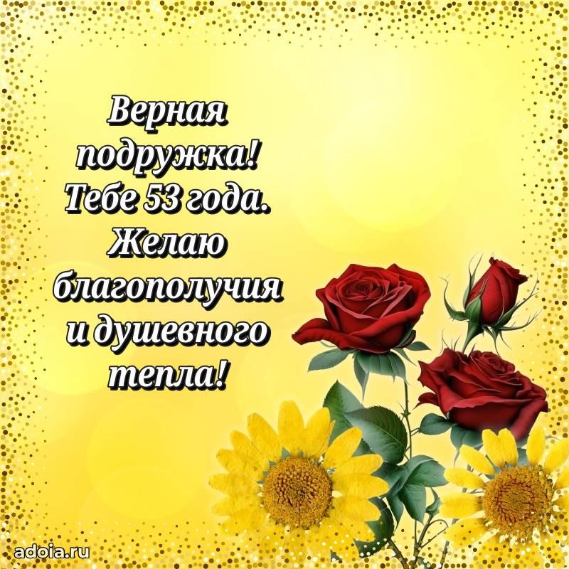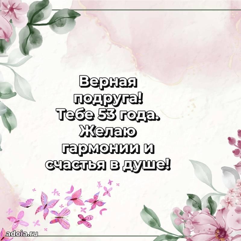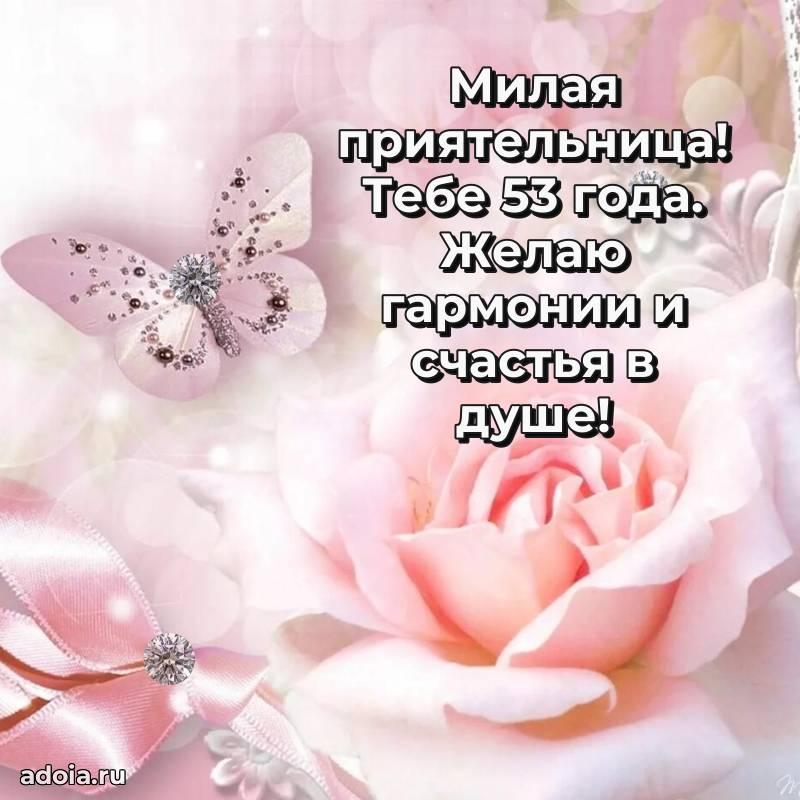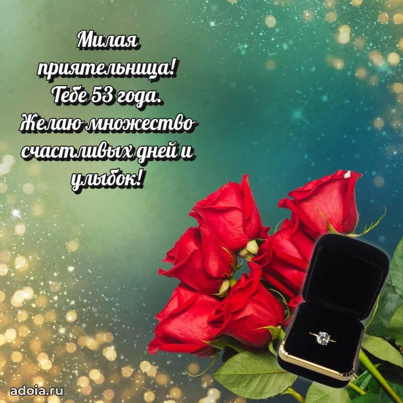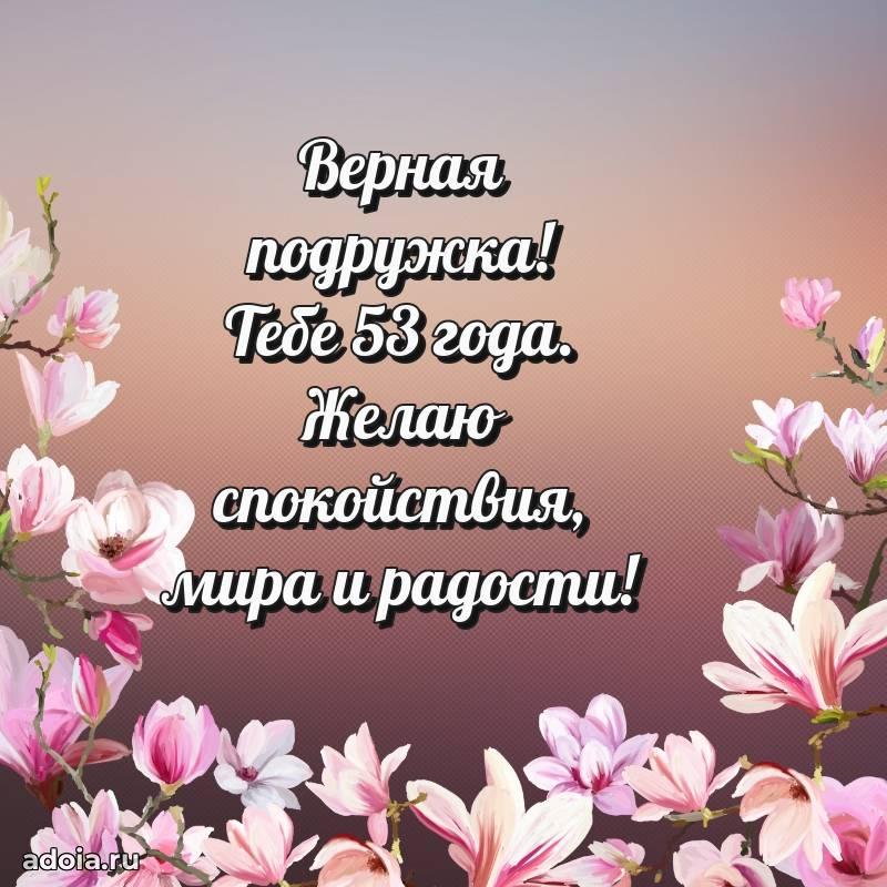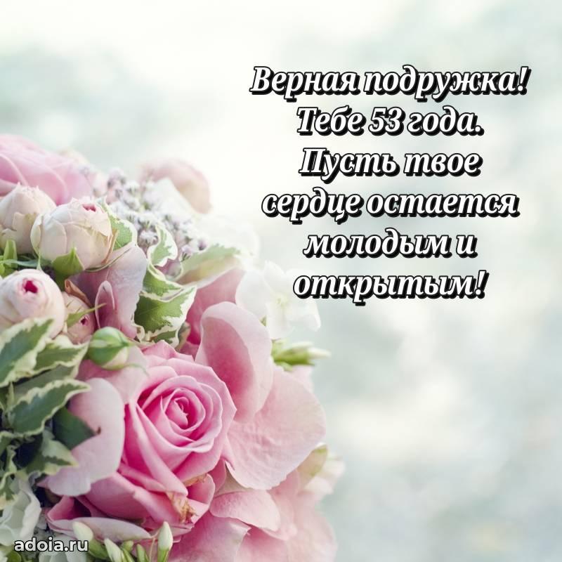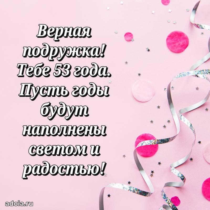 В поисках красивых и современных открыток? Вы попали по адресу! Здесь вы найдете картинки с днем рождения Подруге на 53 года! Все картинки в высоком качестве, которые можно скачать или отправить через WhatsApp бесплатно. Также вы найдете много прикольных и мерцающих гифок и анимаций, которые поднимут настроение! Все открытки содержат поздравления в стихах и прозе.