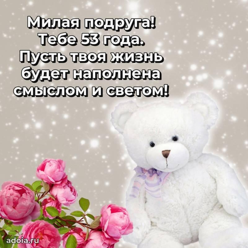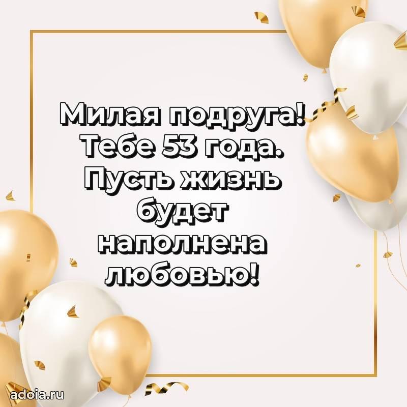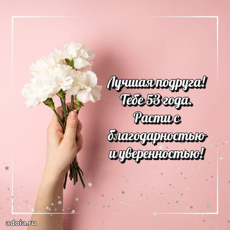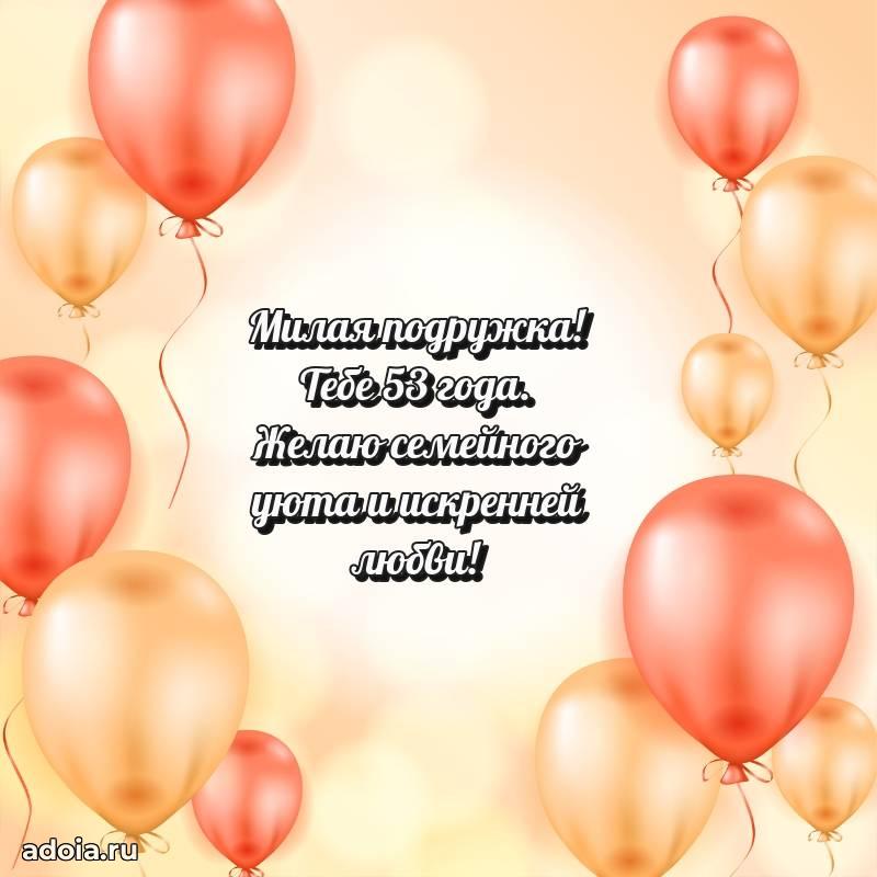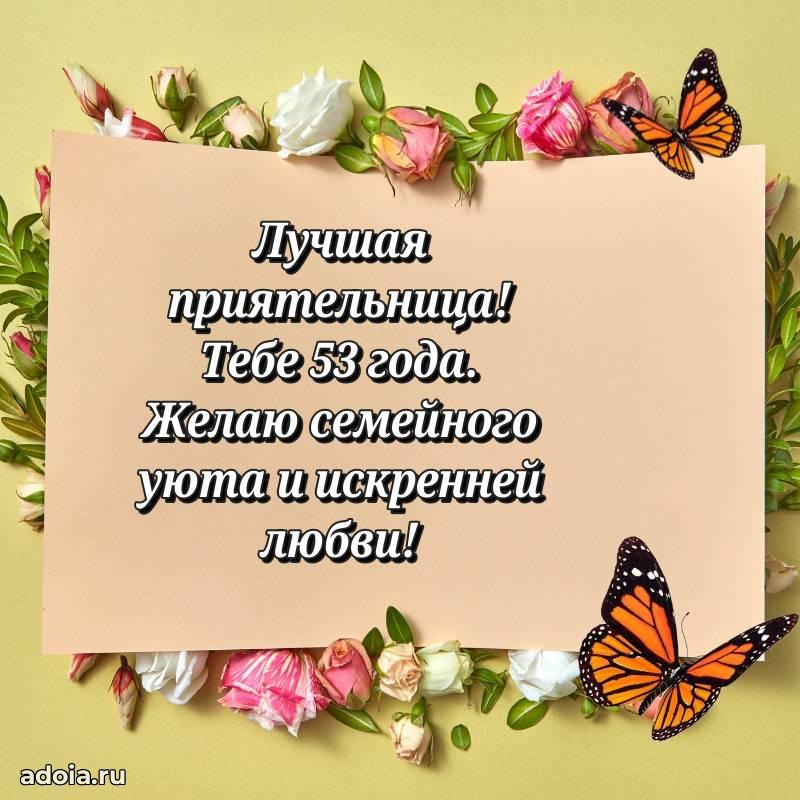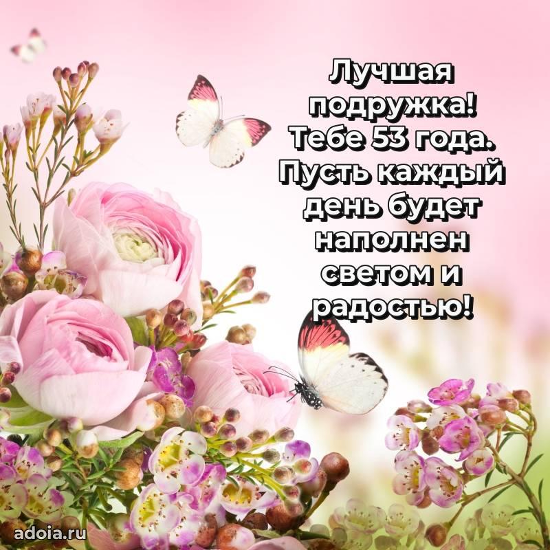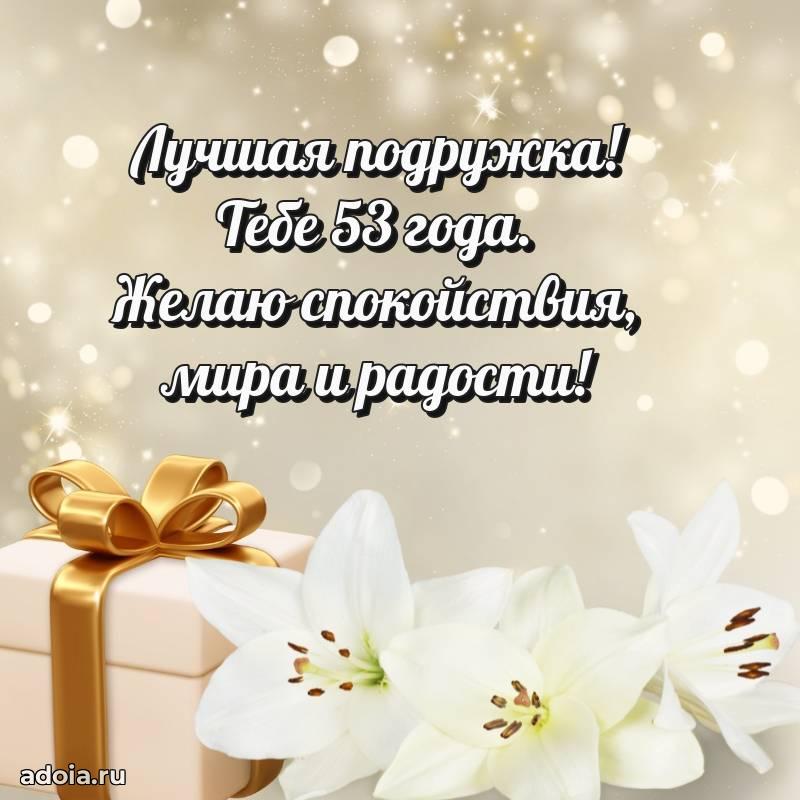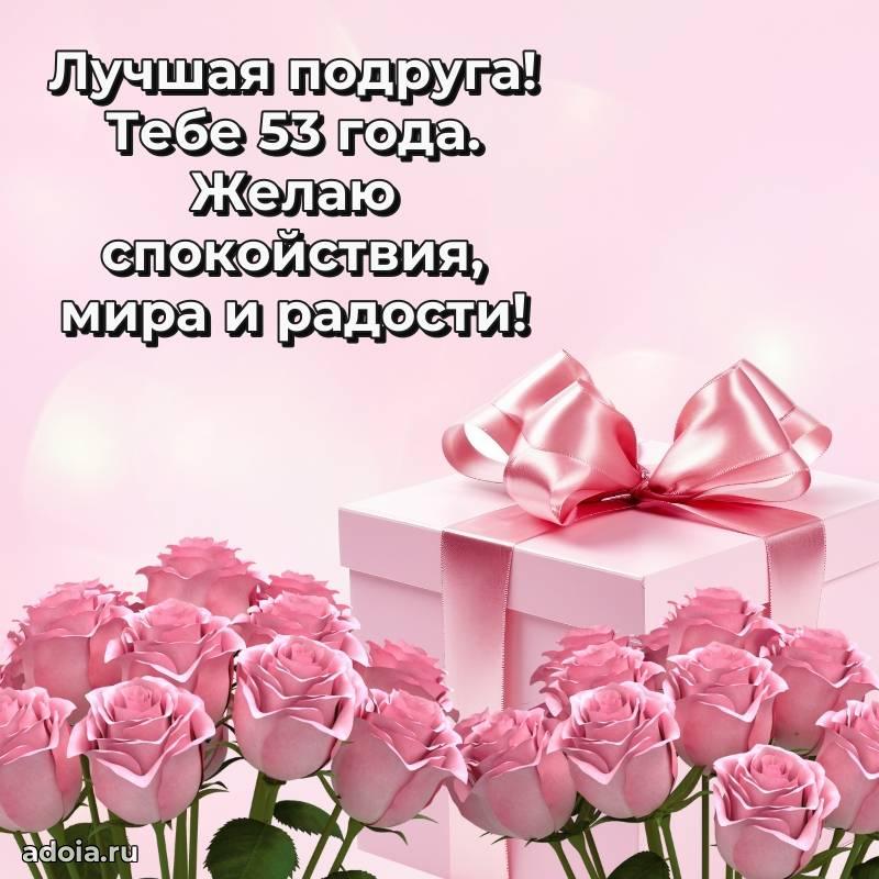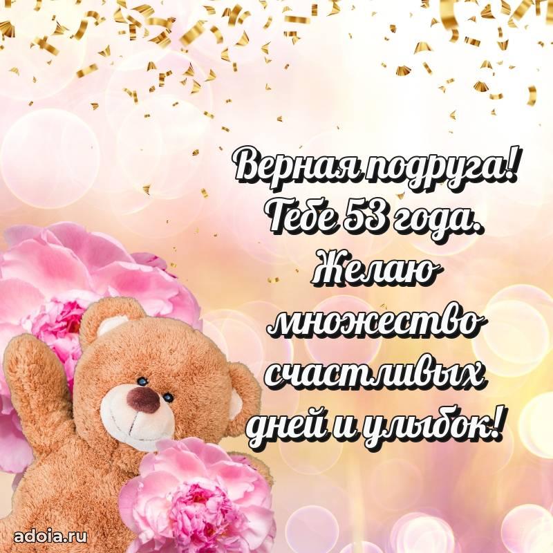 В поисках красивых и современных открыток? Вы попали по адресу! Здесь вы найдете картинки с днем рождения Подруге на 53 года! Все картинки в высоком качестве, которые можно скачать или отправить через WhatsApp бесплатно. Также вы найдете много прикольных и мерцающих гифок и анимаций, которые поднимут настроение! Все открытки содержат поздравления в стихах и прозе.