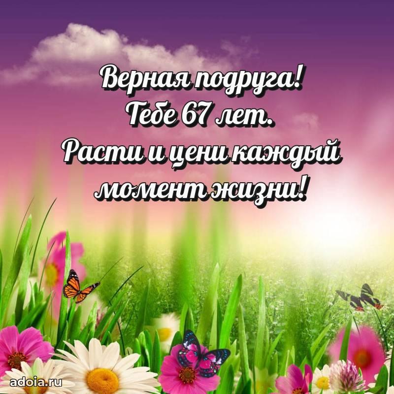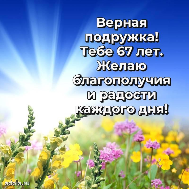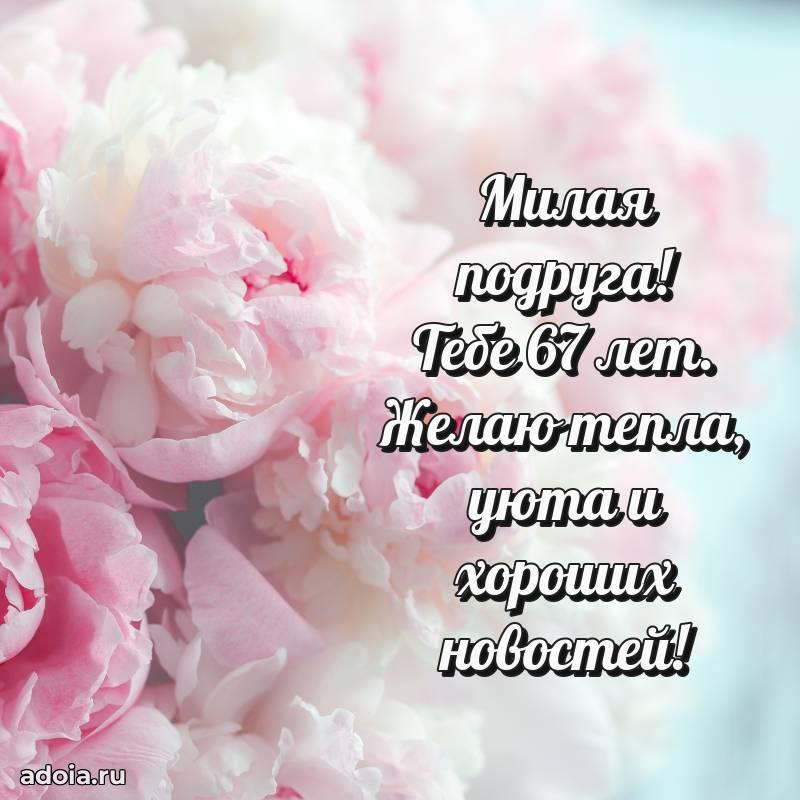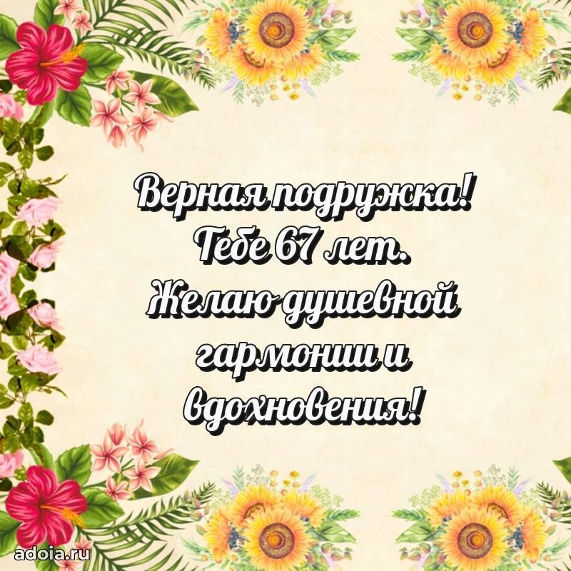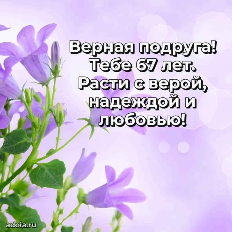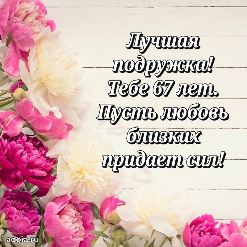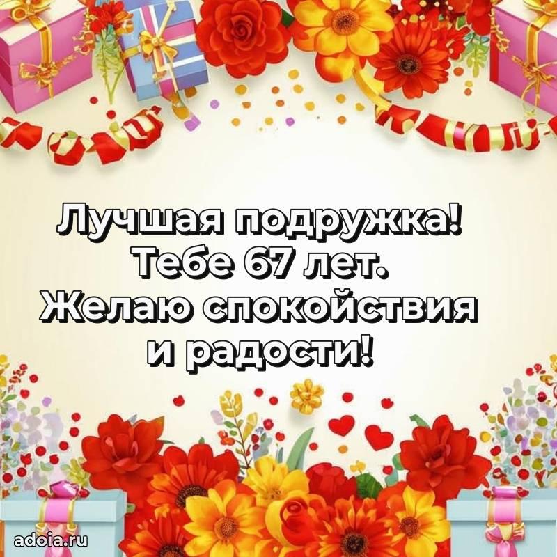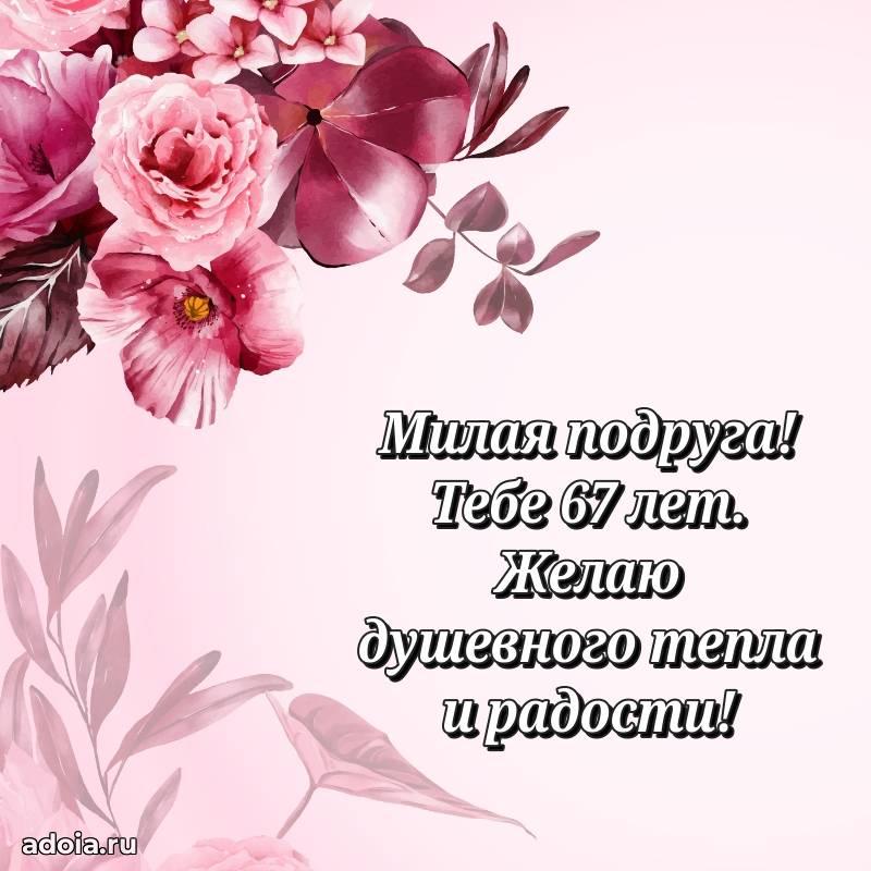 В поисках красивых и современных открыток? Вы попали по адресу! Здесь вы найдете картинки с днем рождения Подруге на 67 лет! Все картинки в высоком качестве, которые можно скачать или отправить через WhatsApp бесплатно. Также вы найдете много прикольных и мерцающих гифок и анимаций, которые поднимут настроение! Все открытки содержат поздравления в стихах и прозе.