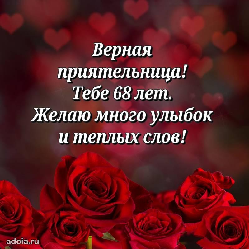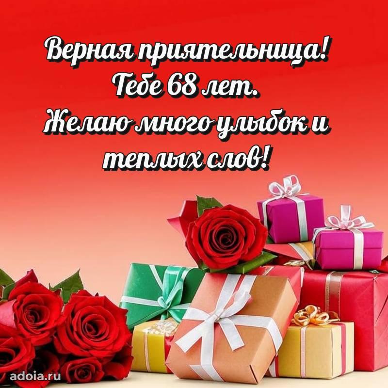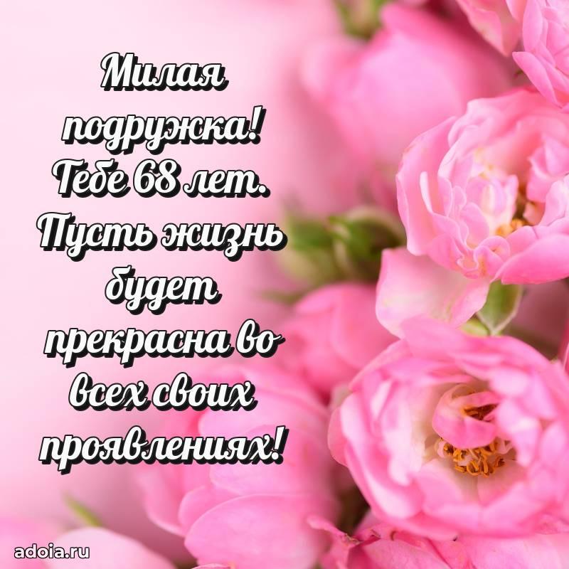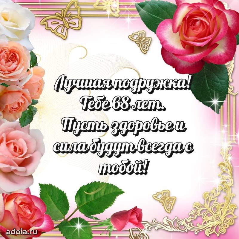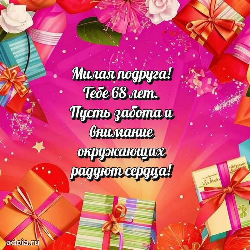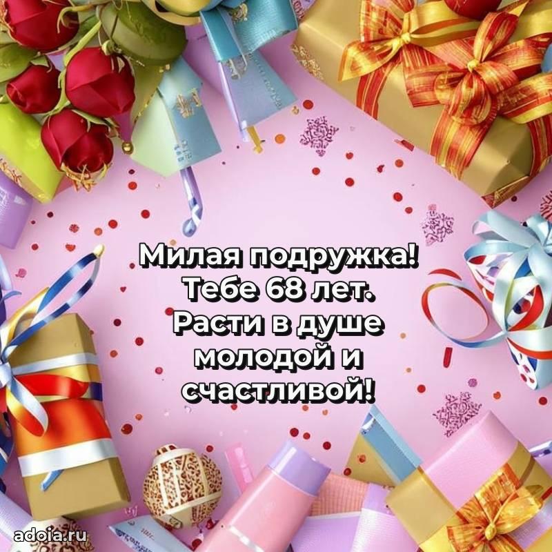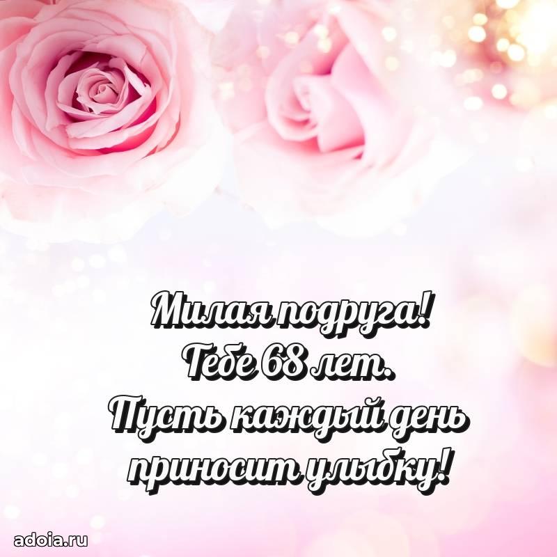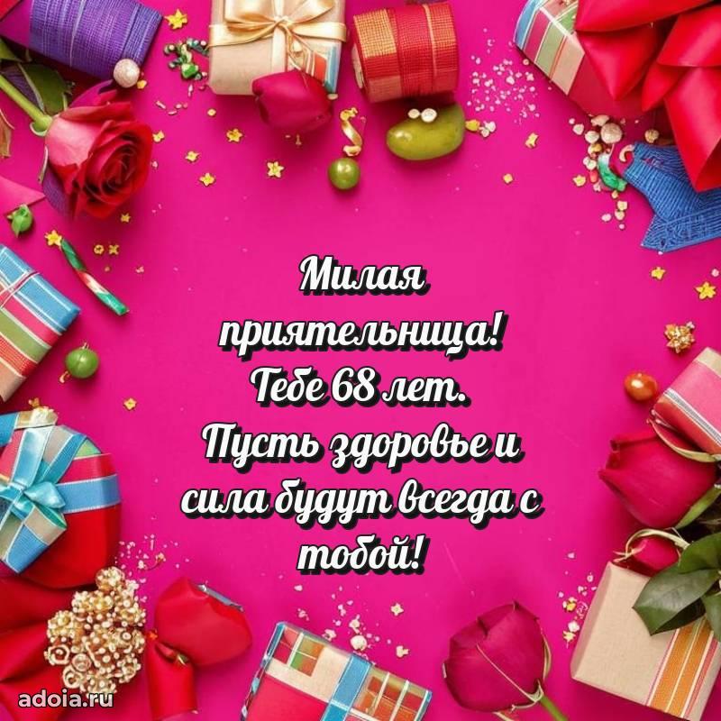 В поисках красивых и современных открыток? Вы попали по адресу! Здесь вы найдете картинки с днем рождения Подруге на 68 лет! Все картинки в высоком качестве, которые можно скачать или отправить через WhatsApp бесплатно. Также вы найдете много прикольных и мерцающих гифок и анимаций, которые поднимут настроение! Все открытки содержат поздравления в стихах и прозе.