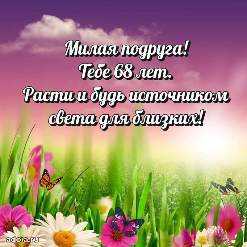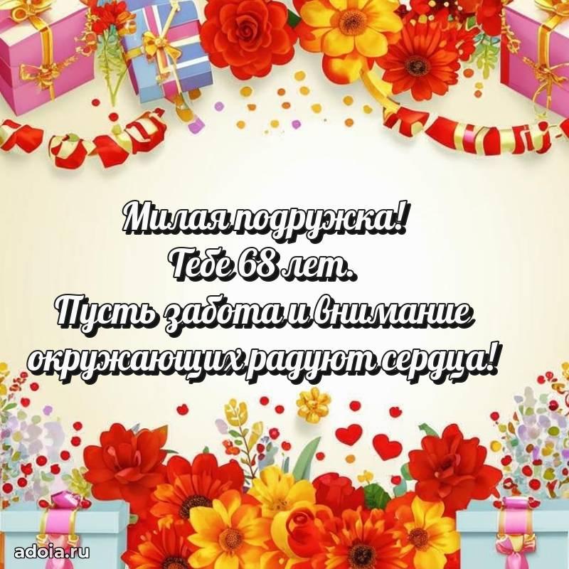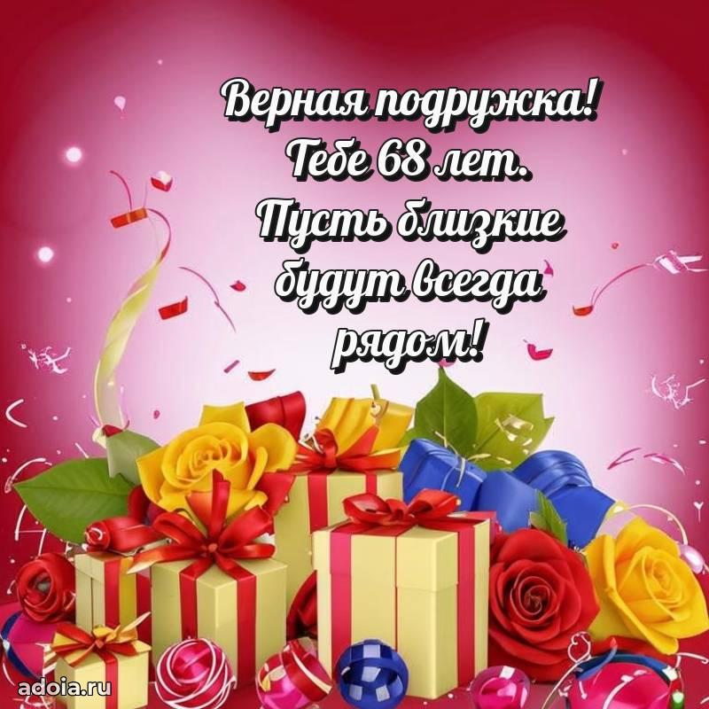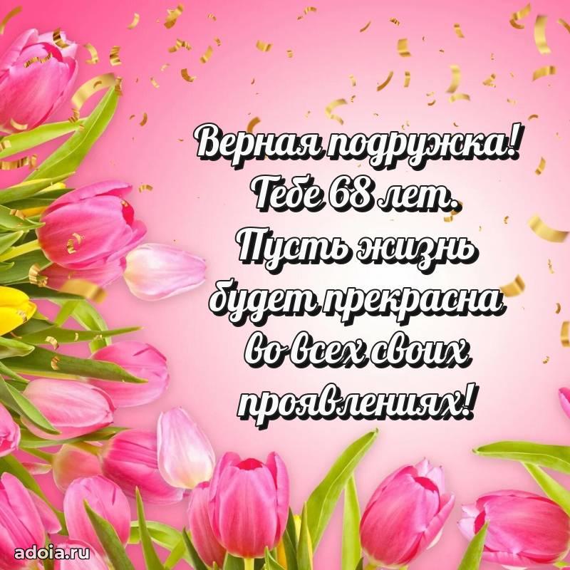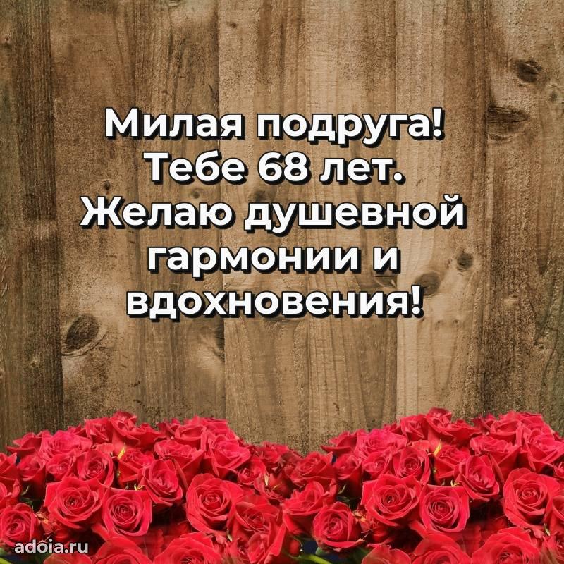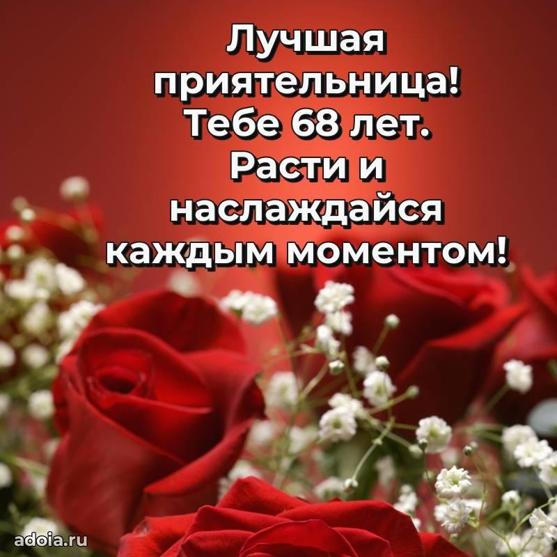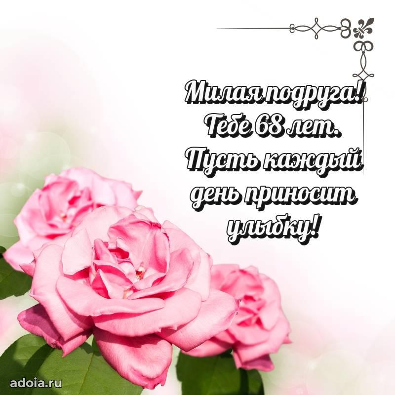 В поисках красивых и современных открыток? Вы попали по адресу! Здесь вы найдете картинки с днем рождения Подруге на 68 лет! Все картинки в высоком качестве, которые можно скачать или отправить через WhatsApp бесплатно. Также вы найдете много прикольных и мерцающих гифок и анимаций, которые поднимут настроение! Все открытки содержат поздравления в стихах и прозе.