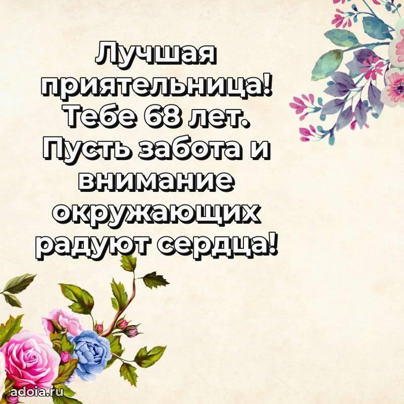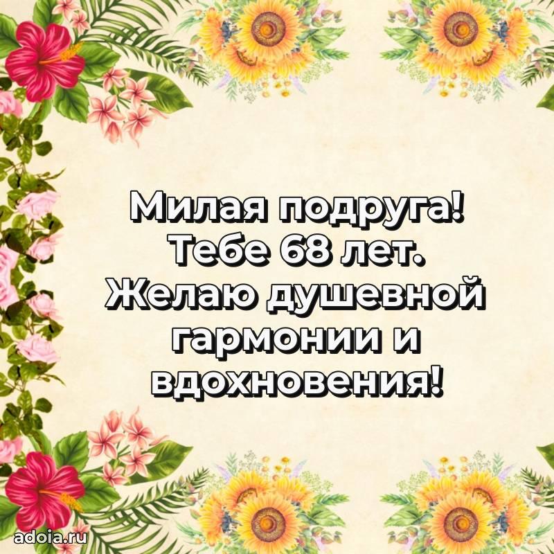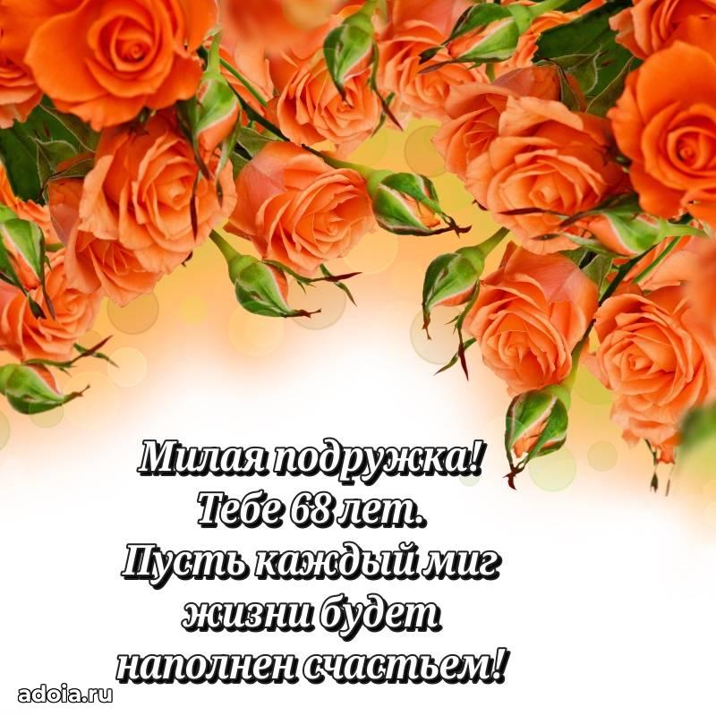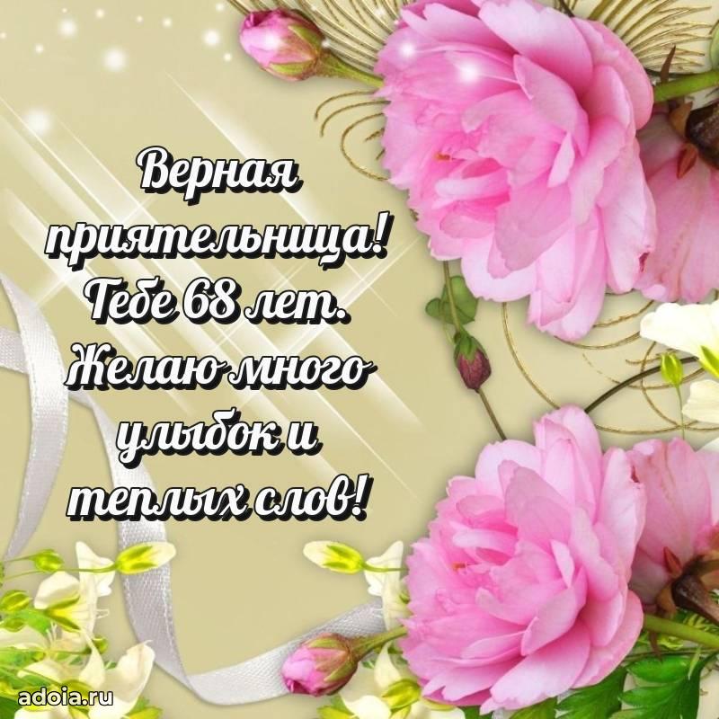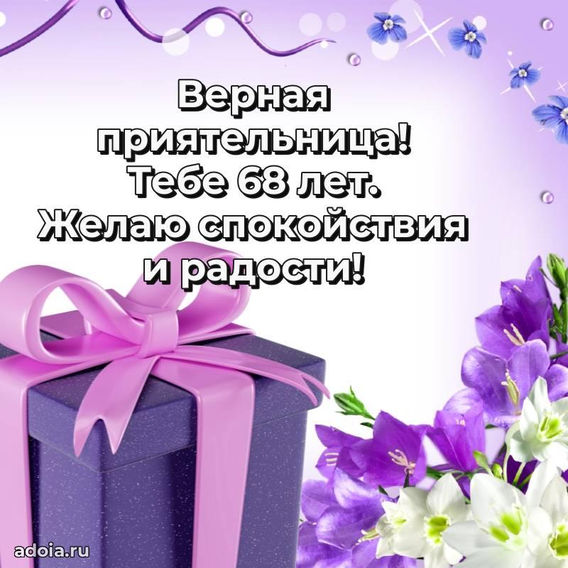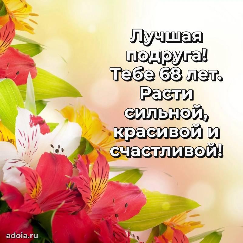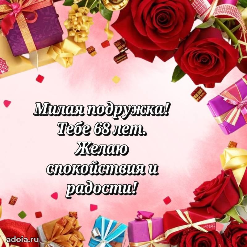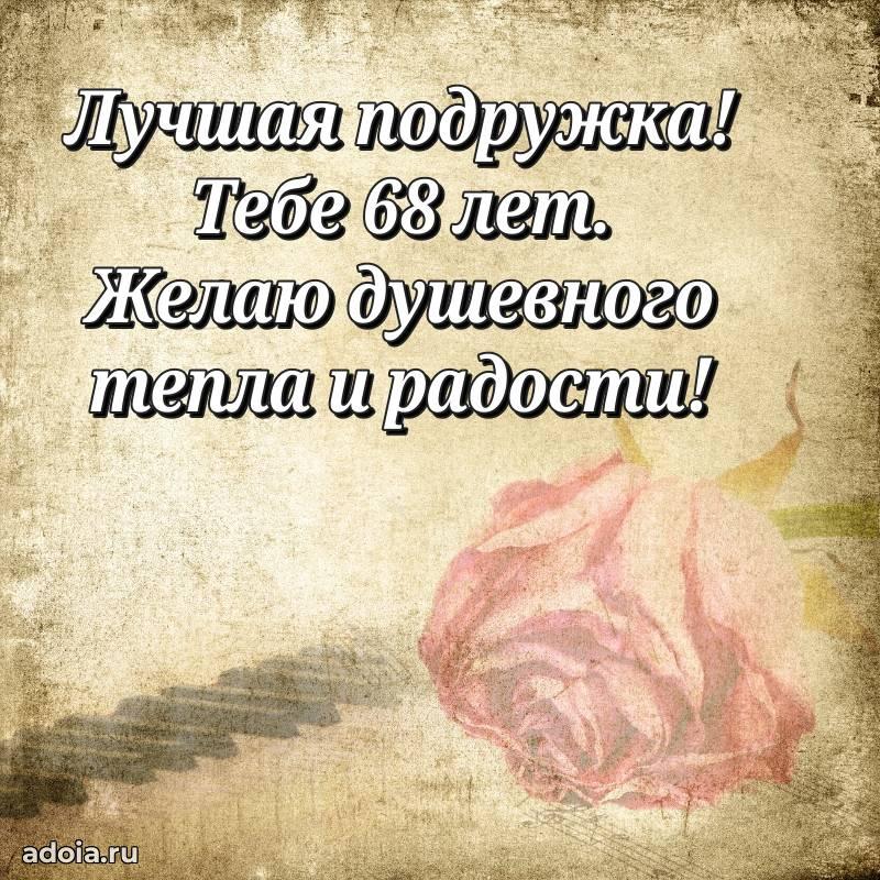 В поисках красивых и современных открыток? Вы попали по адресу! Здесь вы найдете картинки с днем рождения Подруге на 68 лет! Все картинки в высоком качестве, которые можно скачать или отправить через WhatsApp бесплатно. Также вы найдете много прикольных и мерцающих гифок и анимаций, которые поднимут настроение! Все открытки содержат поздравления в стихах и прозе.