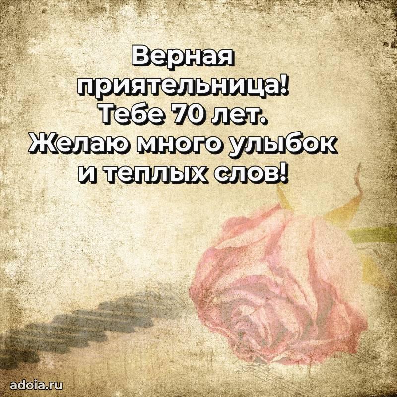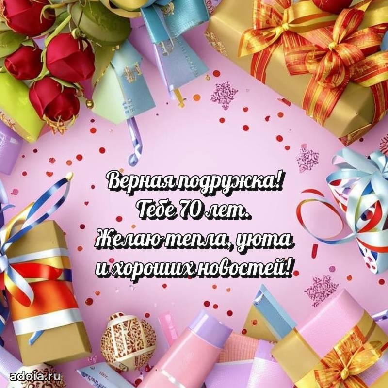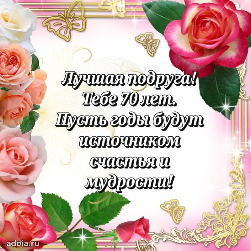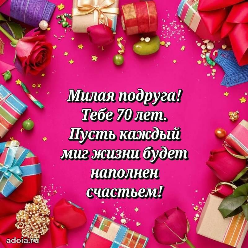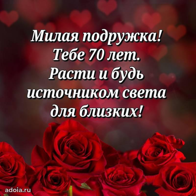 В поисках красивых и современных открыток? Вы попали по адресу! Здесь вы найдете картинки с днем рождения Подруге на 70 лет! Все картинки в высоком качестве, которые можно скачать или отправить через WhatsApp бесплатно. Также вы найдете много прикольных и мерцающих гифок и анимаций, которые поднимут настроение! Все открытки содержат поздравления в стихах и прозе.
