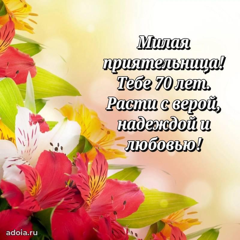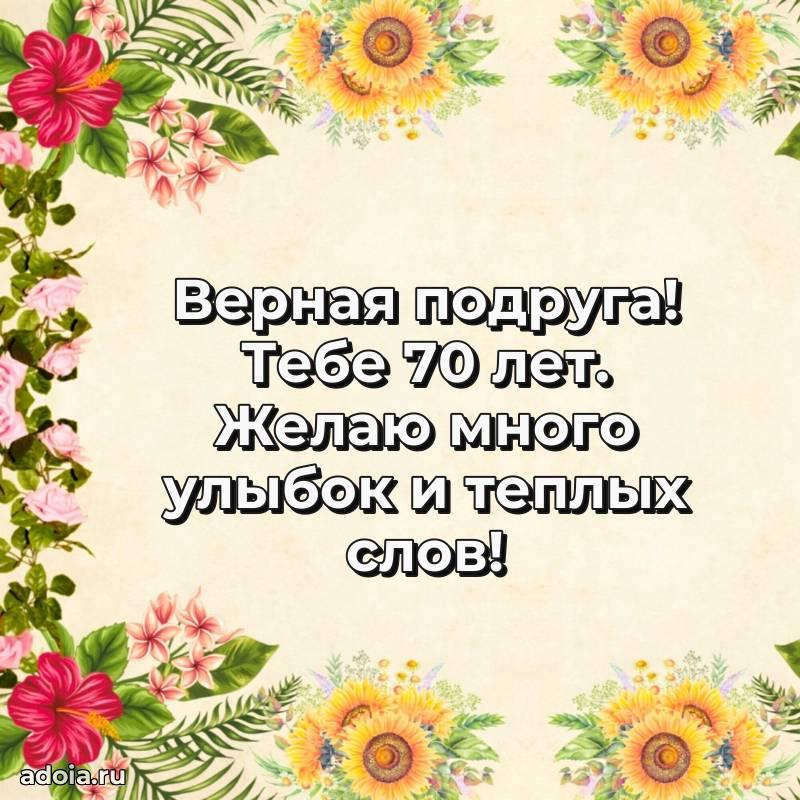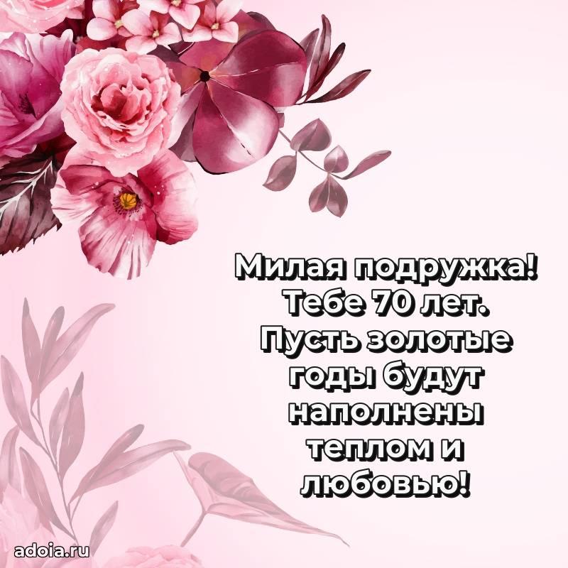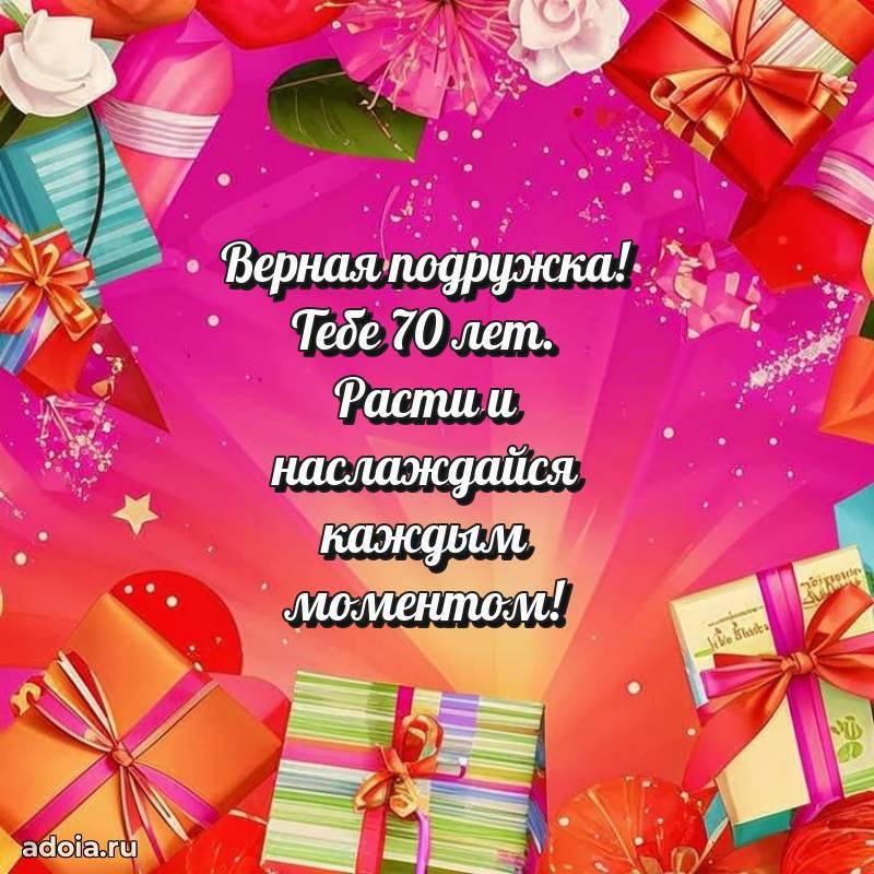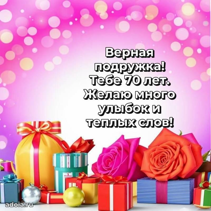 В поисках красивых и современных открыток? Вы попали по адресу! Здесь вы найдете картинки с днем рождения Подруге на 70 лет! Все картинки в высоком качестве, которые можно скачать или отправить через WhatsApp бесплатно. Также вы найдете много прикольных и мерцающих гифок и анимаций, которые поднимут настроение! Все открытки содержат поздравления в стихах и прозе.