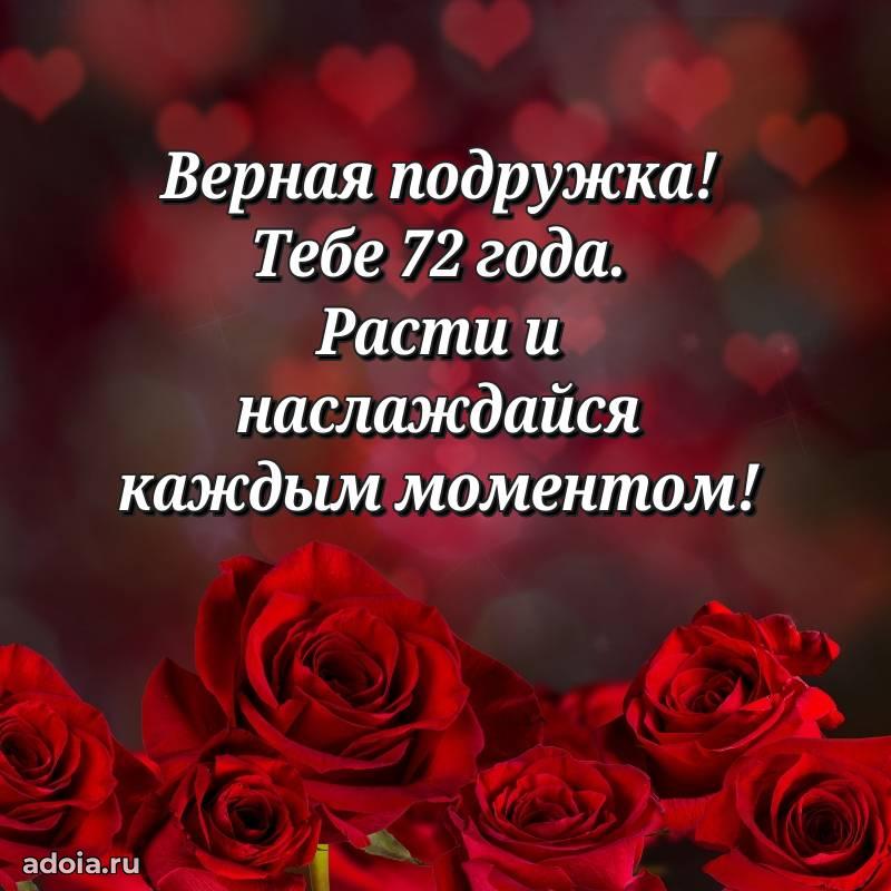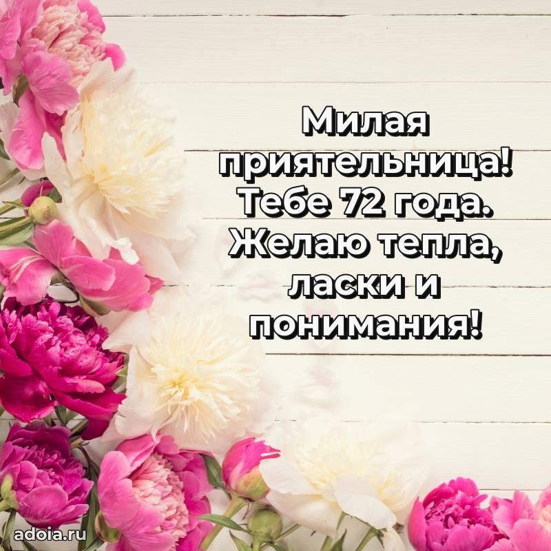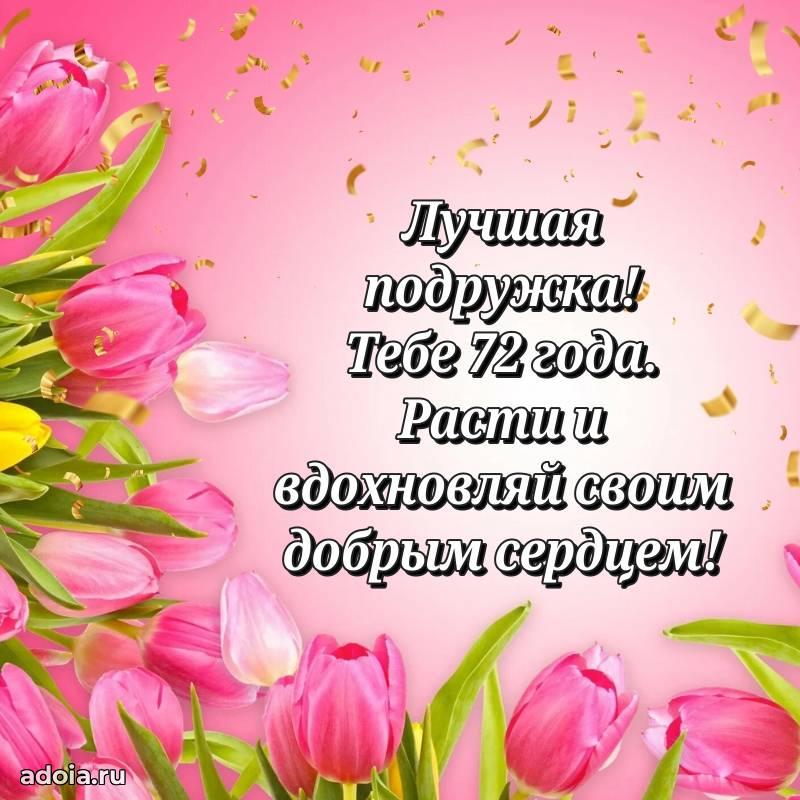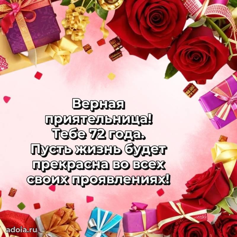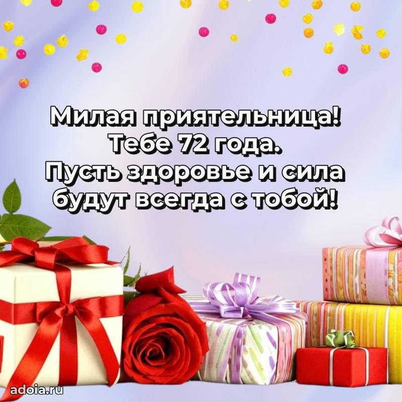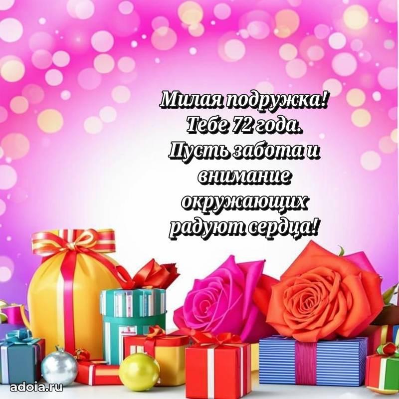 В поисках красивых и современных открыток? Вы попали по адресу! Здесь вы найдете картинки с днем рождения Подруге на 72 года! Все картинки в высоком качестве, которые можно скачать или отправить через WhatsApp бесплатно. Также вы найдете много прикольных и мерцающих гифок и анимаций, которые поднимут настроение! Все открытки содержат поздравления в стихах и прозе.