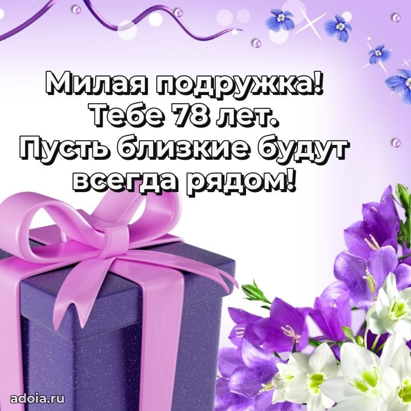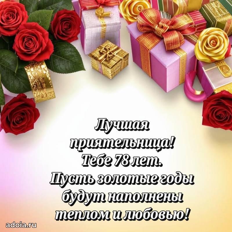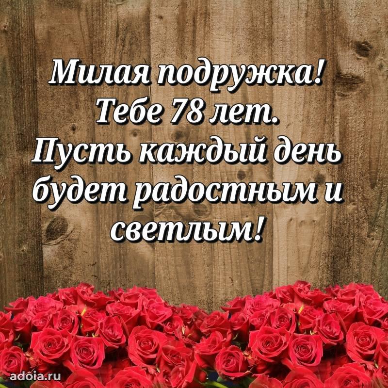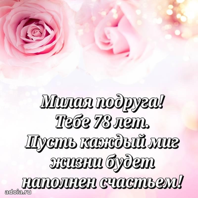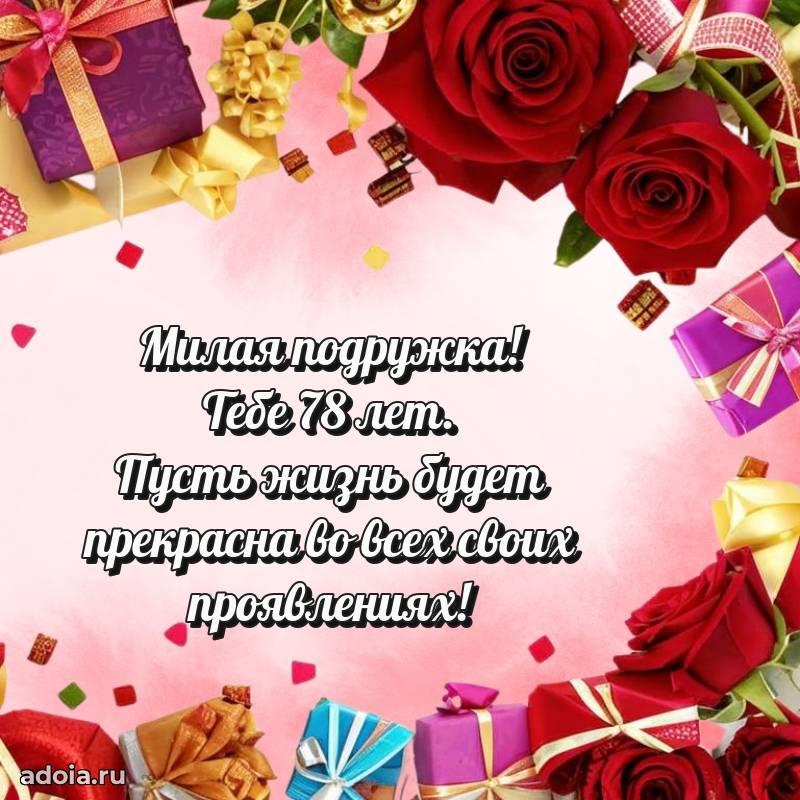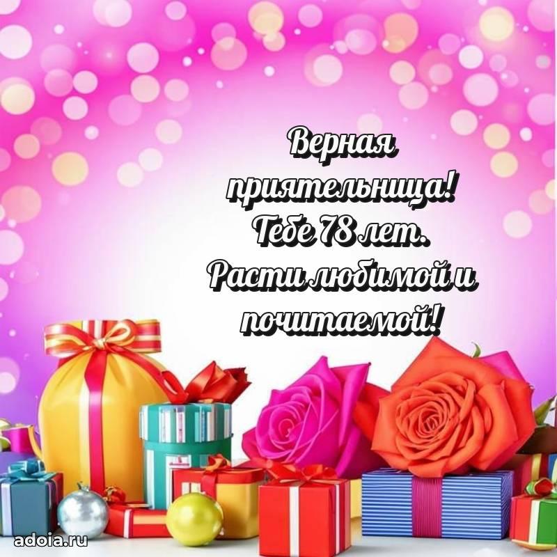 В поисках красивых и современных открыток? Вы попали по адресу! Здесь вы найдете картинки с днем рождения Подруге на 78 лет! Все картинки в высоком качестве, которые можно скачать или отправить через WhatsApp бесплатно. Также вы найдете много прикольных и мерцающих гифок и анимаций, которые поднимут настроение! Все открытки содержат поздравления в стихах и прозе.