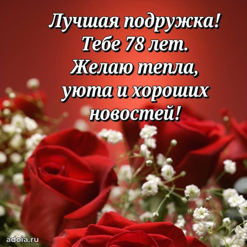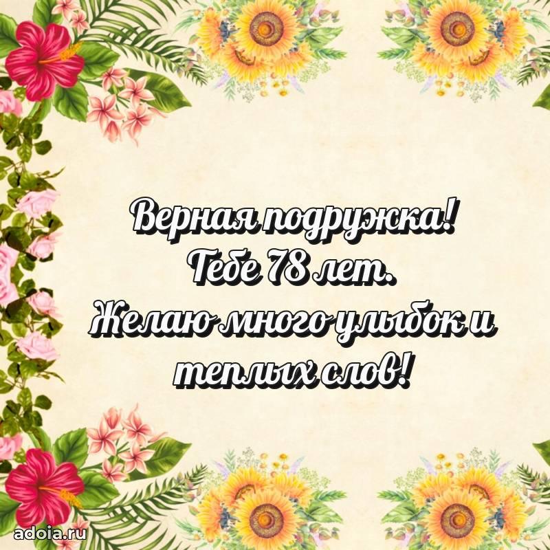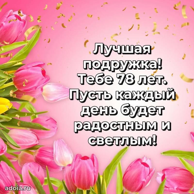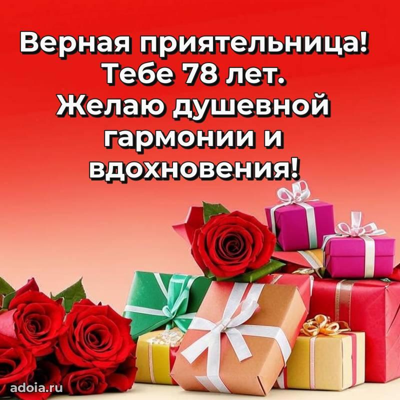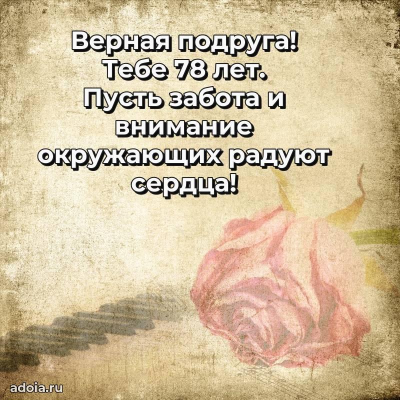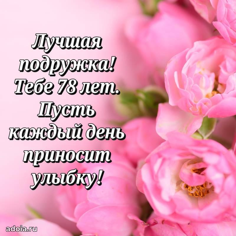 В поисках красивых и современных открыток? Вы попали по адресу! Здесь вы найдете картинки с днем рождения Подруге на 78 лет! Все картинки в высоком качестве, которые можно скачать или отправить через WhatsApp бесплатно. Также вы найдете много прикольных и мерцающих гифок и анимаций, которые поднимут настроение! Все открытки содержат поздравления в стихах и прозе.