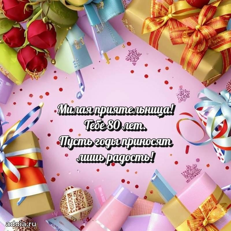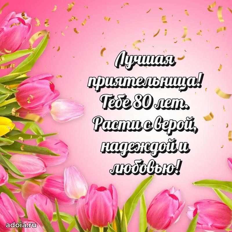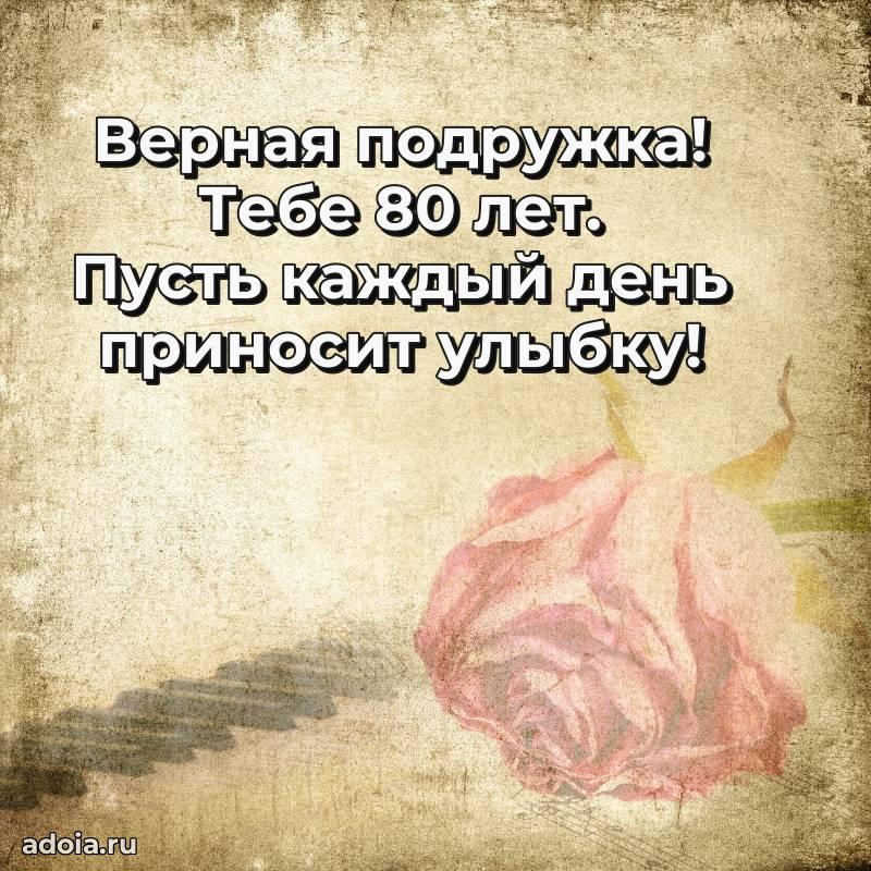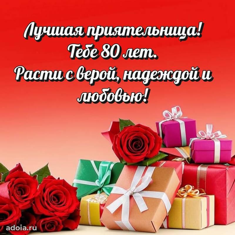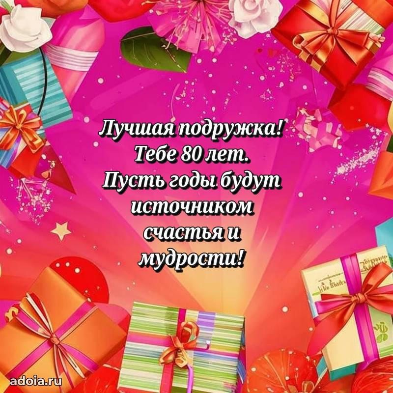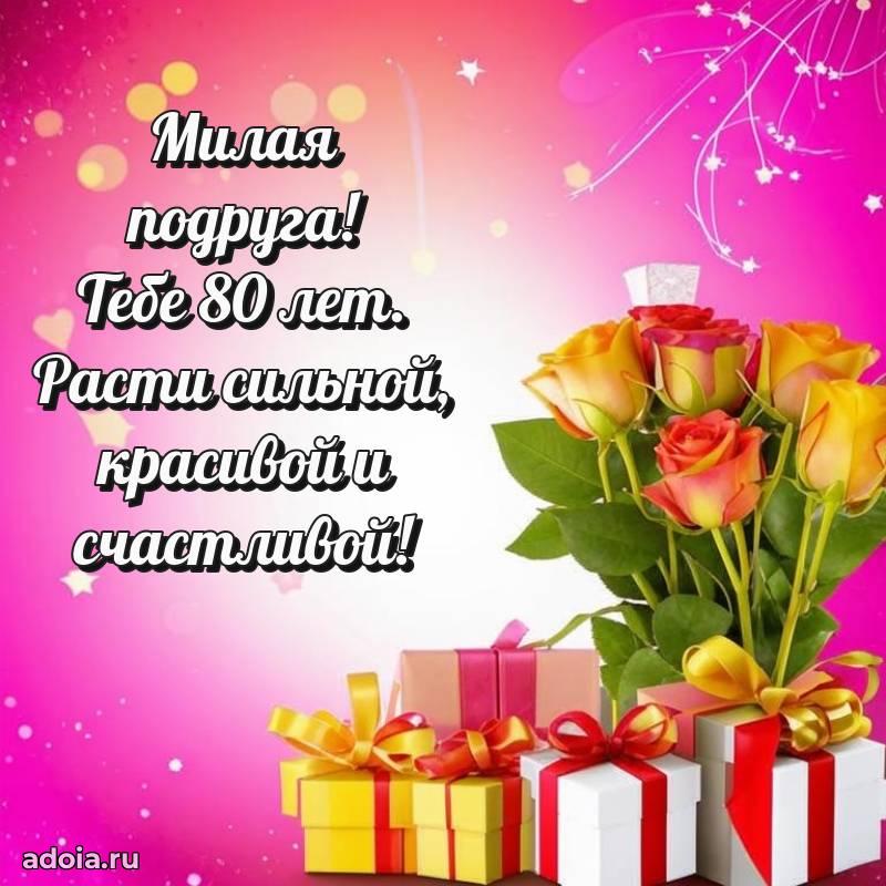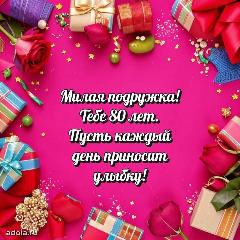 В поисках красивых и современных открыток? Вы попали по адресу! Здесь вы найдете картинки с днем рождения Подруге на 80 лет! Все картинки в высоком качестве, которые можно скачать или отправить через WhatsApp бесплатно. Также вы найдете много прикольных и мерцающих гифок и анимаций, которые поднимут настроение! Все открытки содержат поздравления в стихах и прозе.