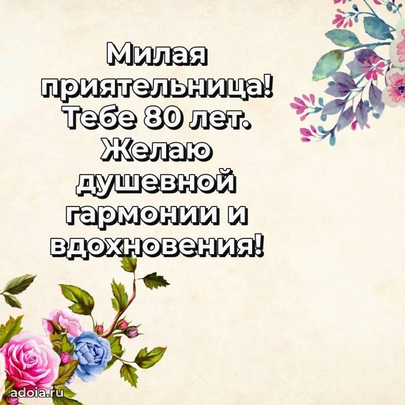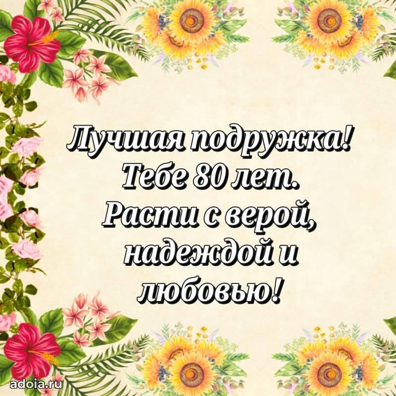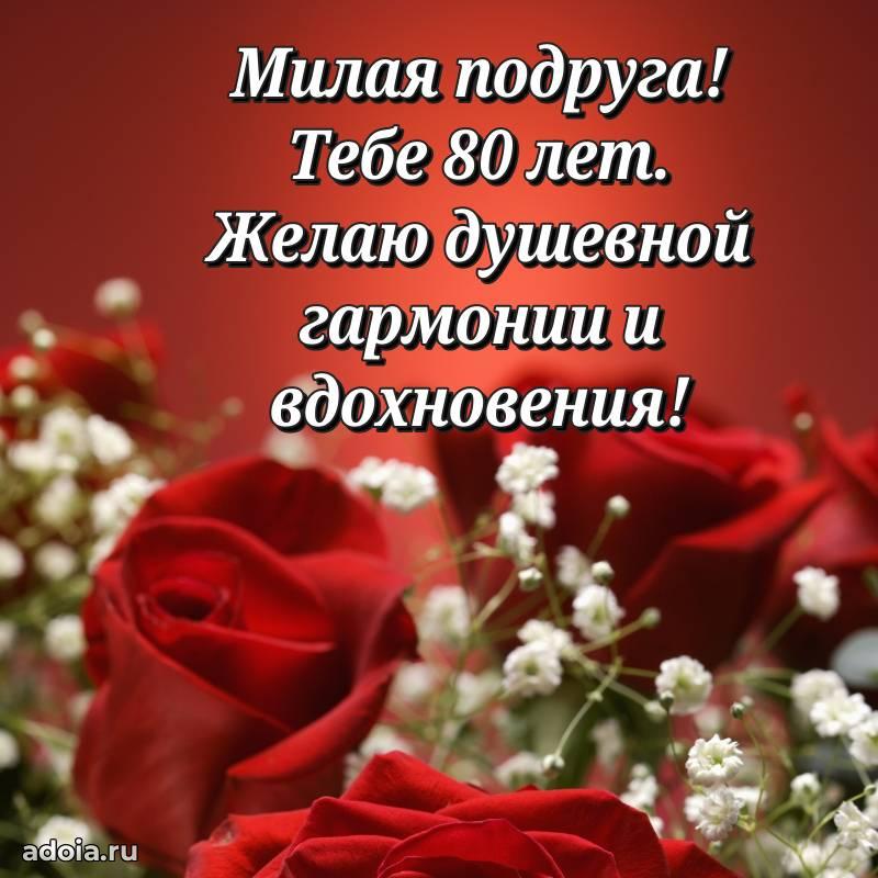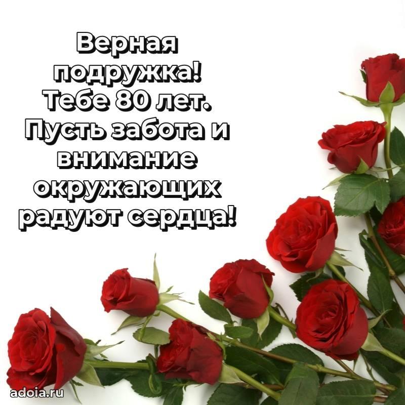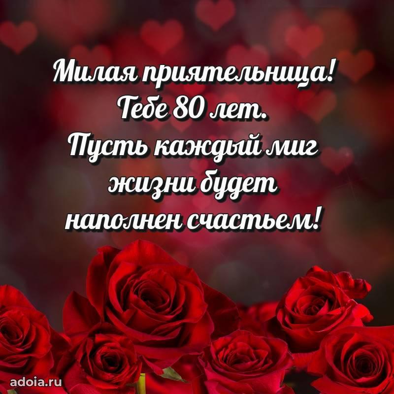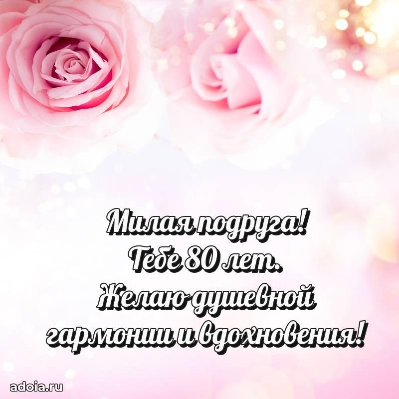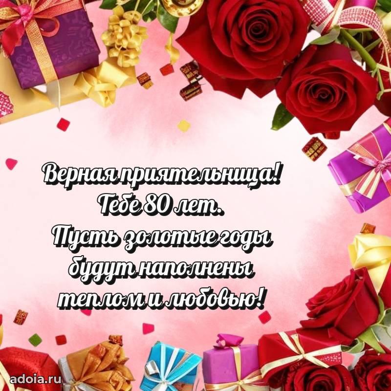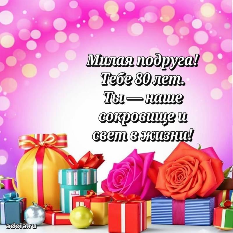 В поисках красивых и современных открыток? Вы попали по адресу! Здесь вы найдете картинки с днем рождения Подруге на 80 лет! Все картинки в высоком качестве, которые можно скачать или отправить через WhatsApp бесплатно. Также вы найдете много прикольных и мерцающих гифок и анимаций, которые поднимут настроение! Все открытки содержат поздравления в стихах и прозе.
