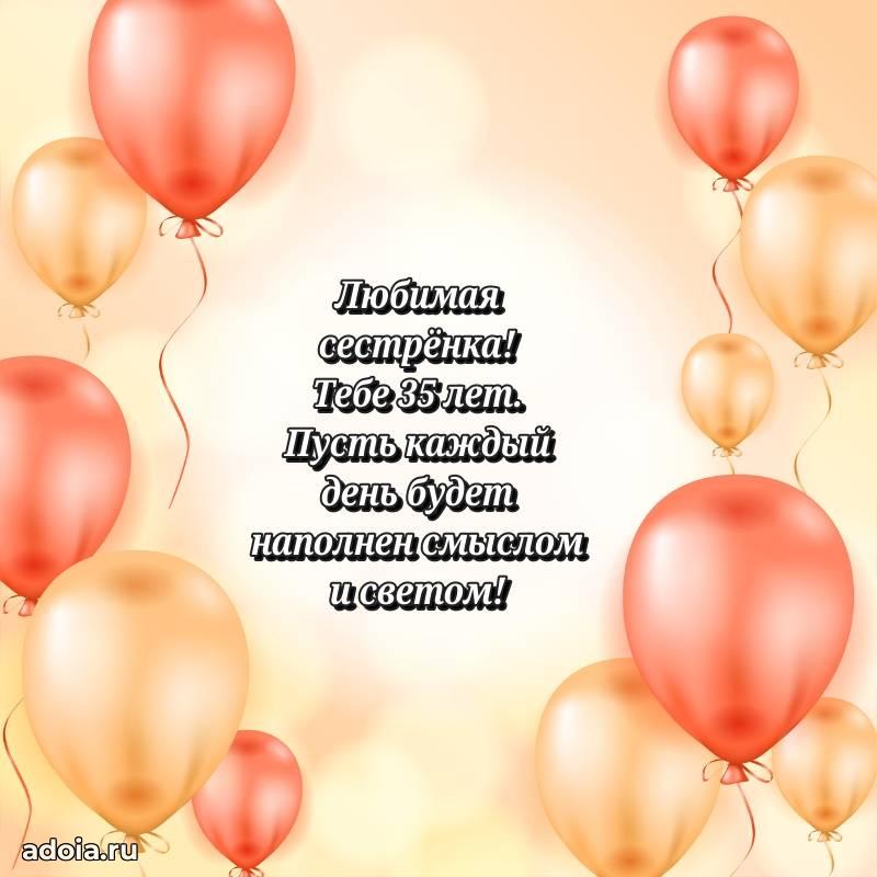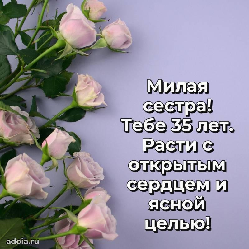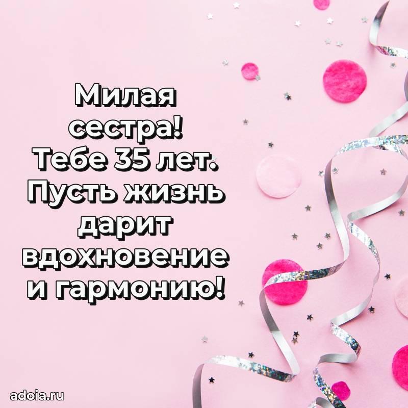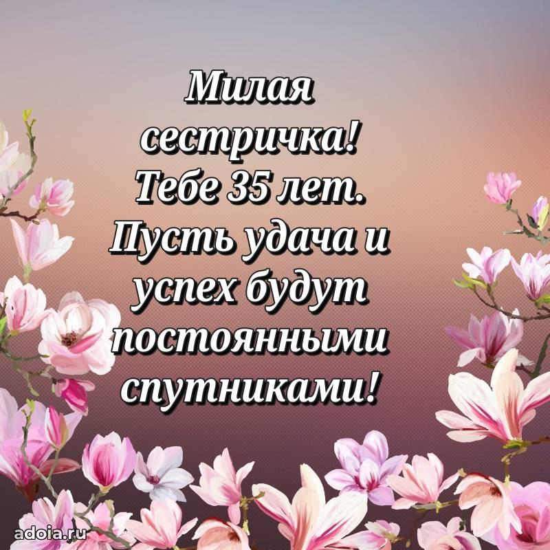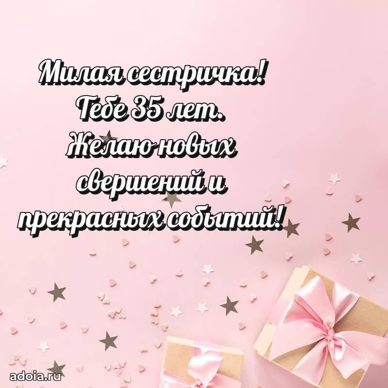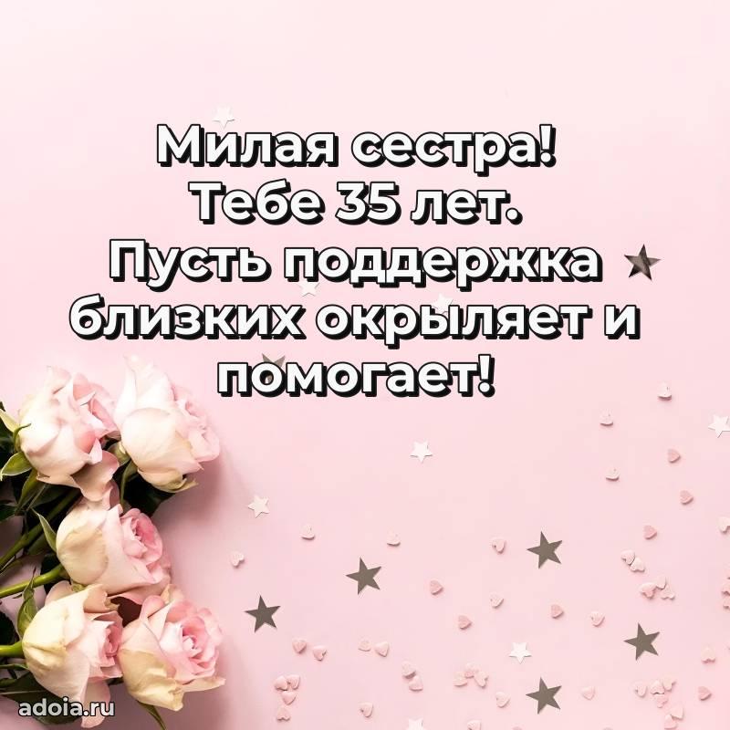 В поисках красивых и современных открыток? Вы попали по адресу! Здесь вы найдете картинки с днем рождения Сестре на 35 лет! Все картинки в высоком качестве, которые можно скачать или отправить через WhatsApp бесплатно. Также вы найдете много прикольных и мерцающих гифок и анимаций, которые поднимут настроение! Все открытки содержат поздравления в стихах и прозе.