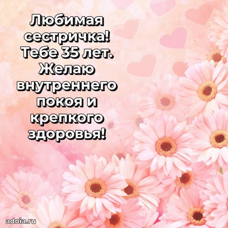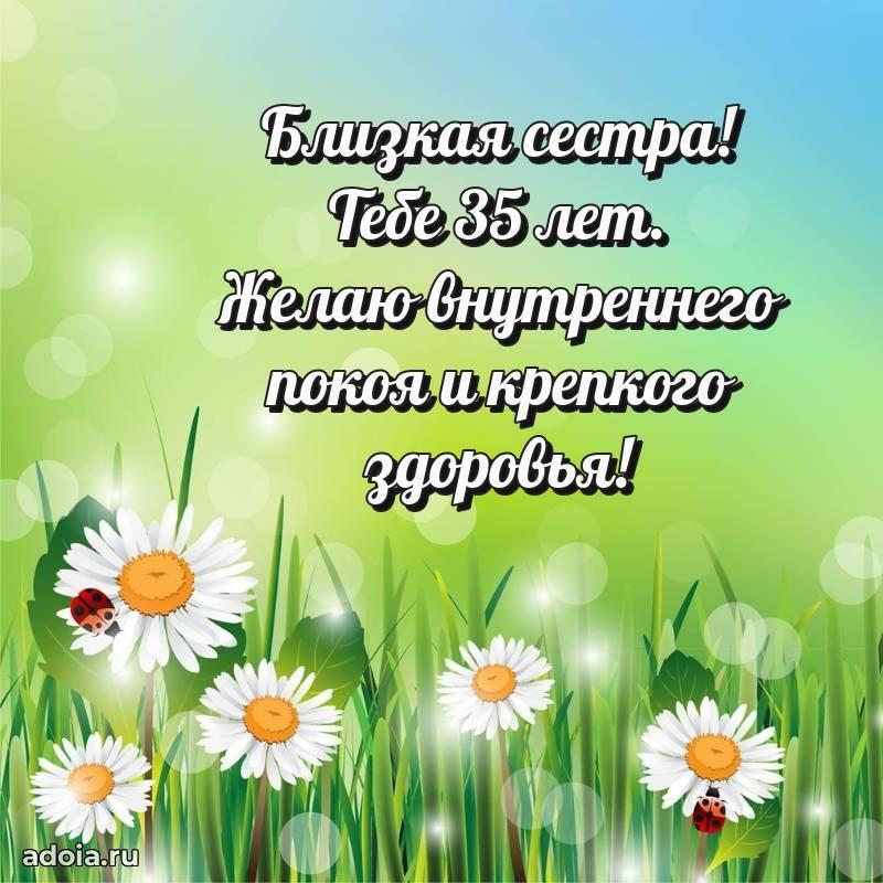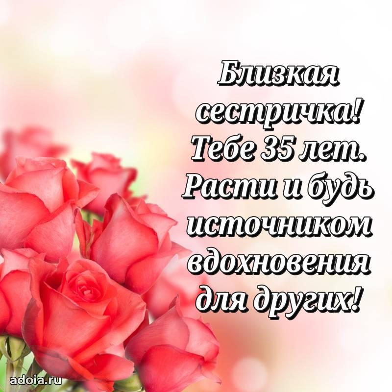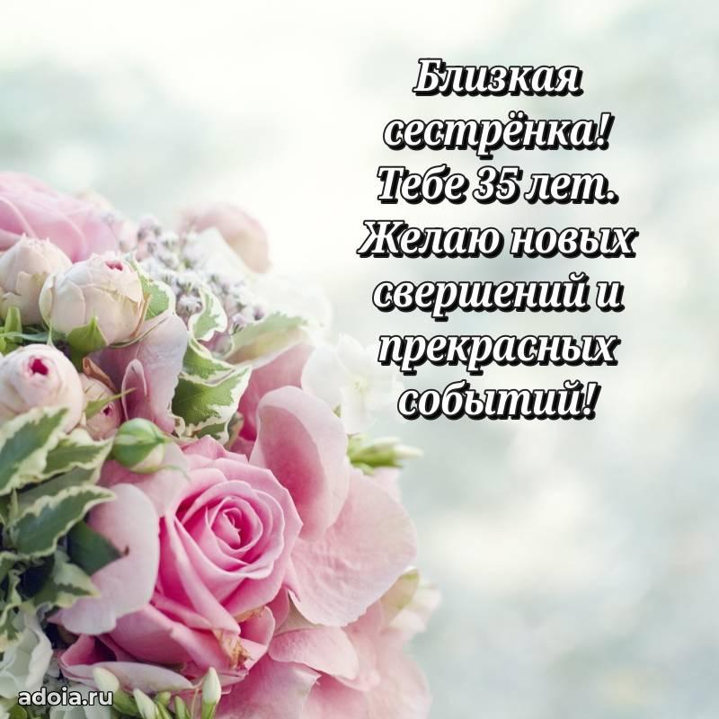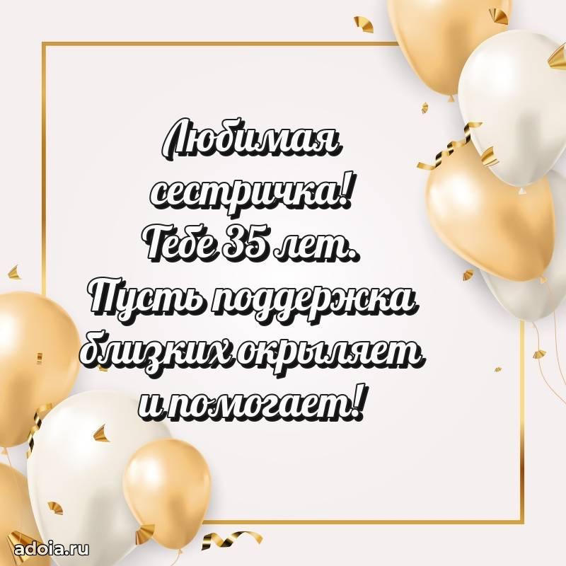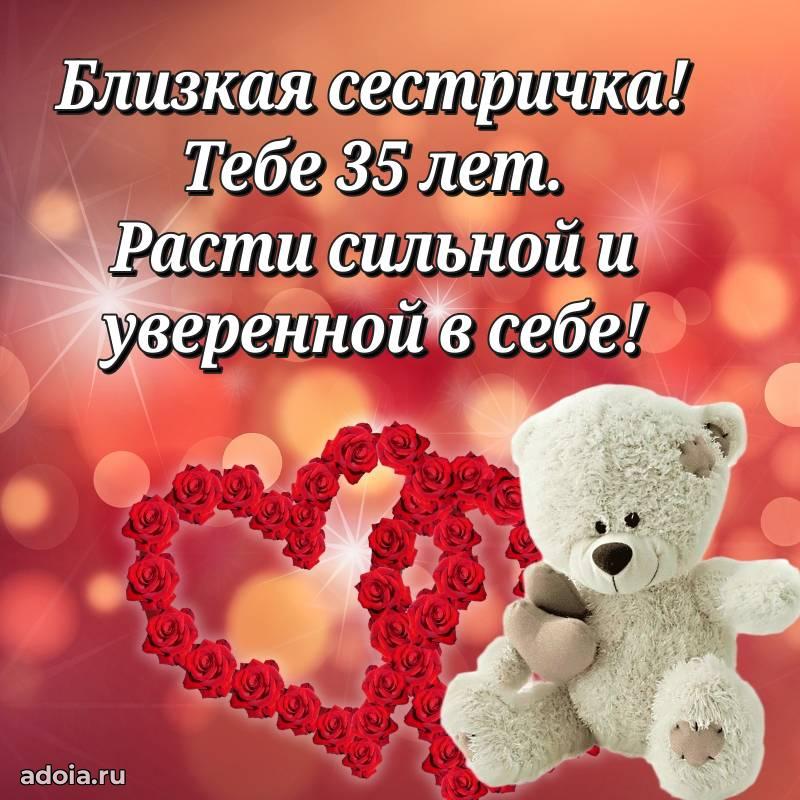 В поисках красивых и современных открыток? Вы попали по адресу! Здесь вы найдете картинки с днем рождения Сестре на 35 лет! Все картинки в высоком качестве, которые можно скачать или отправить через WhatsApp бесплатно. Также вы найдете много прикольных и мерцающих гифок и анимаций, которые поднимут настроение! Все открытки содержат поздравления в стихах и прозе.