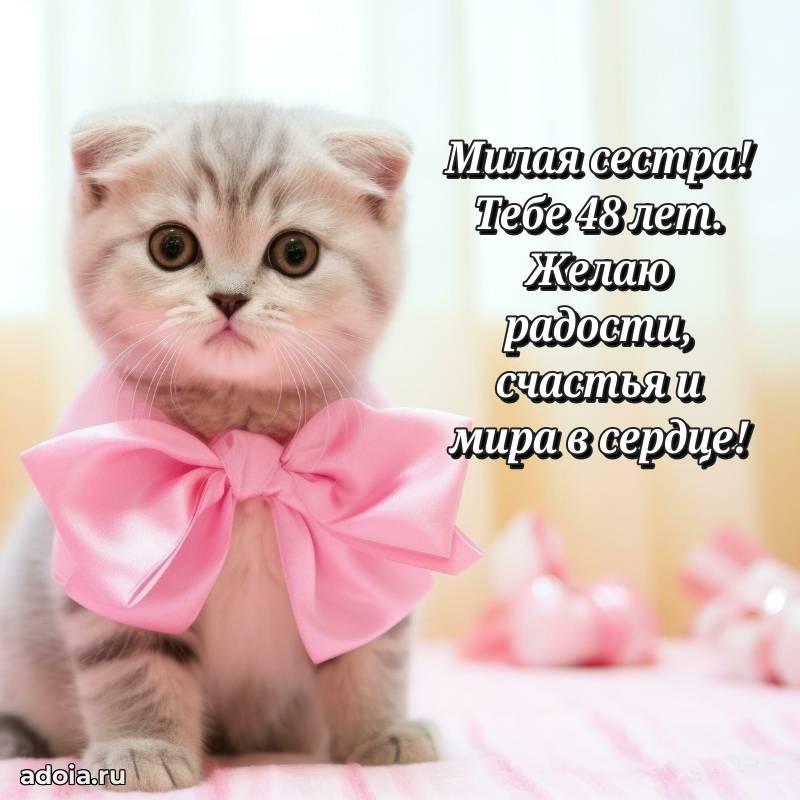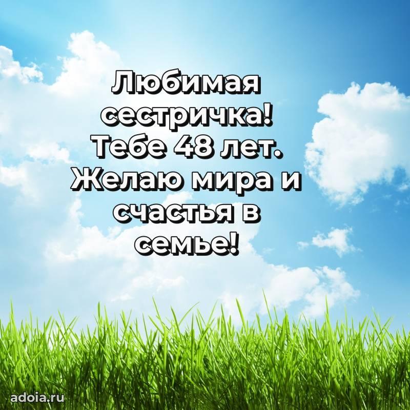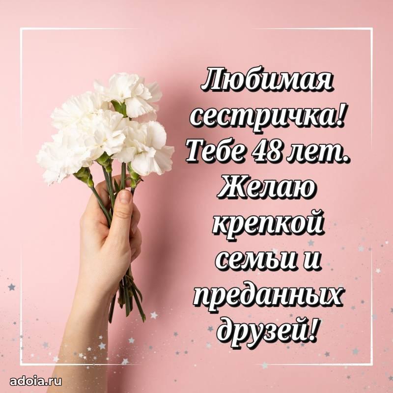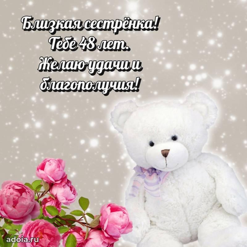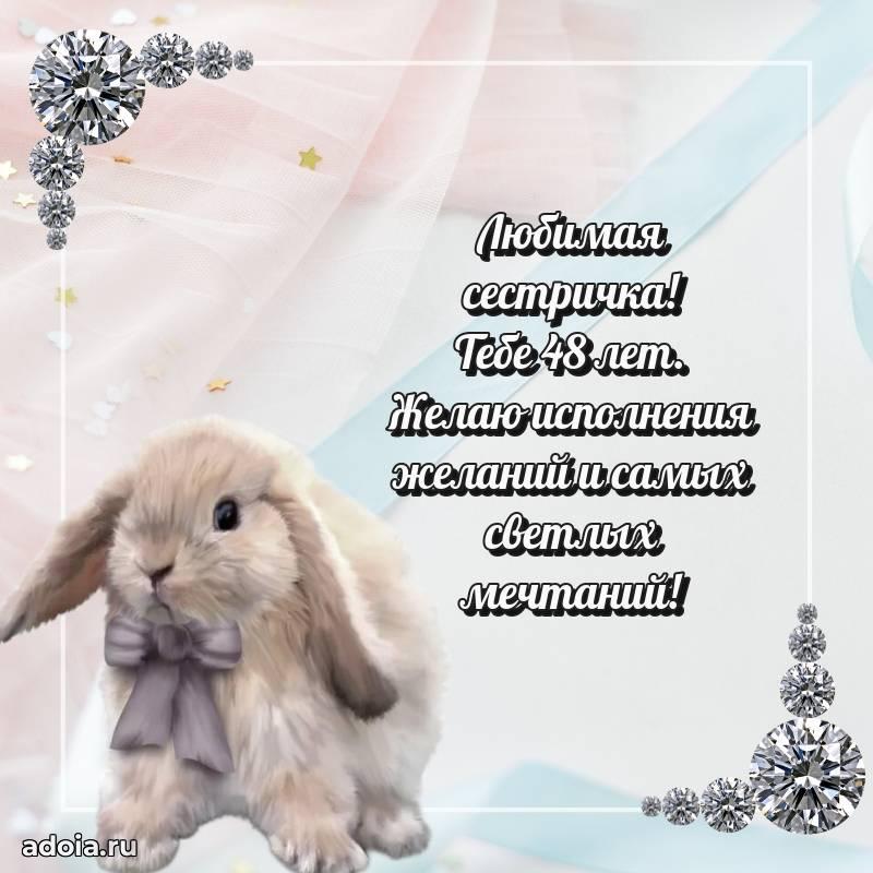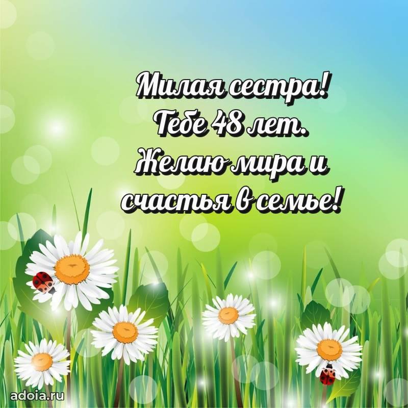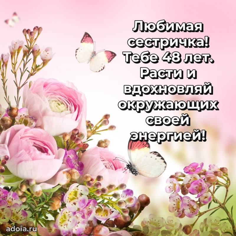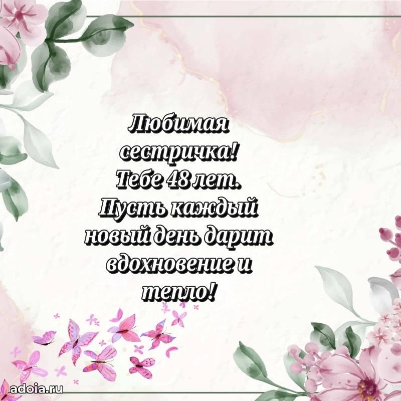 В поисках красивых и современных открыток? Вы попали по адресу! Здесь вы найдете картинки с днем рождения Сестре на 48 лет! Все картинки в высоком качестве, которые можно скачать или отправить через WhatsApp бесплатно. Также вы найдете много прикольных и мерцающих гифок и анимаций, которые поднимут настроение! Все открытки содержат поздравления в стихах и прозе.