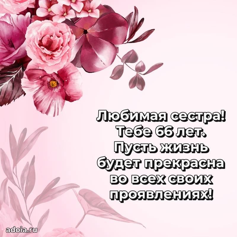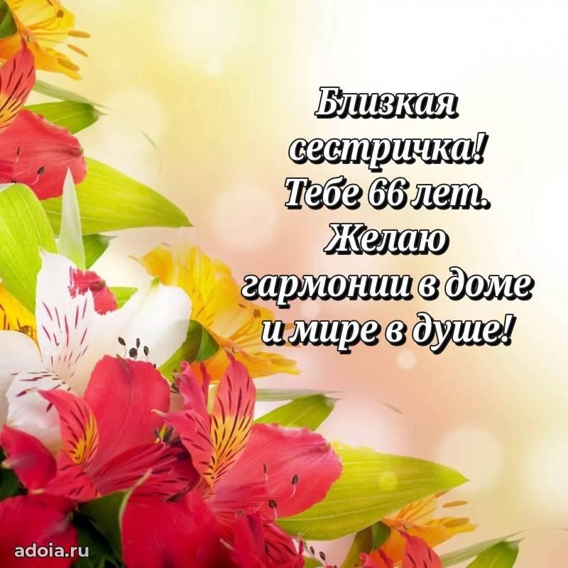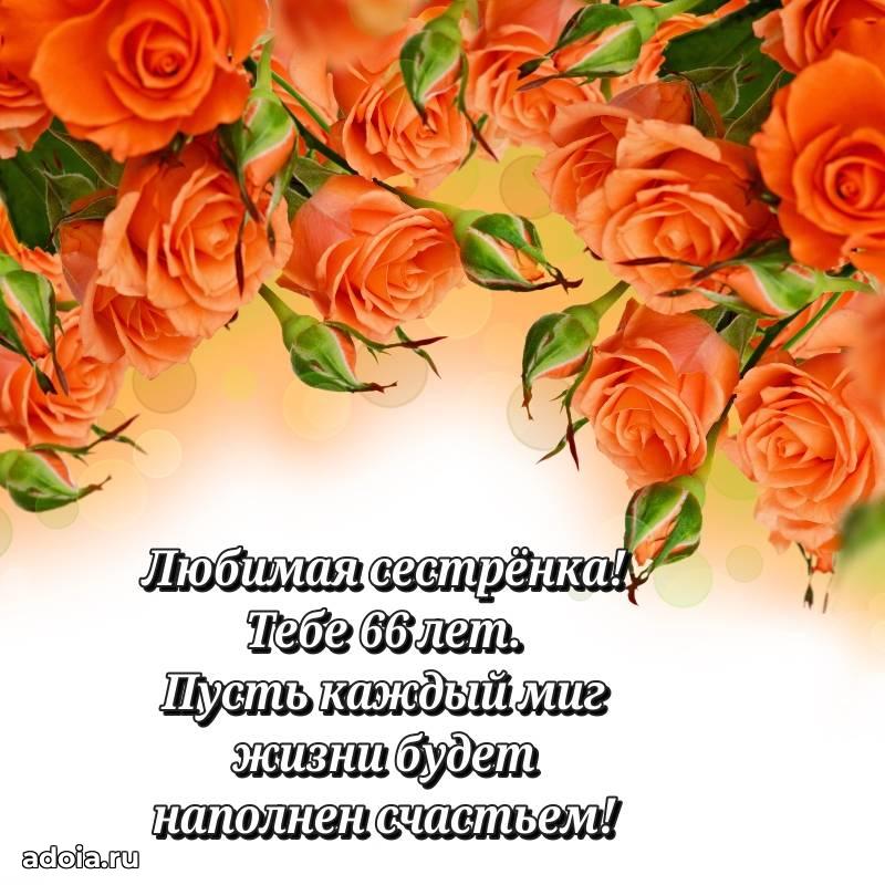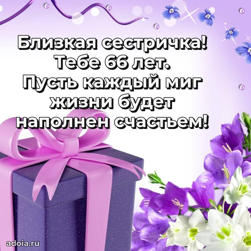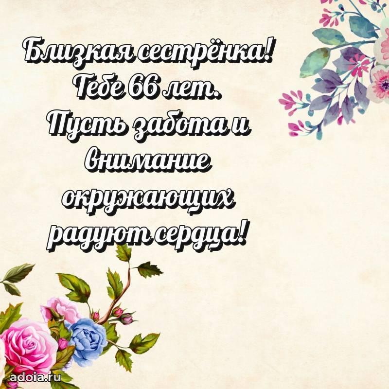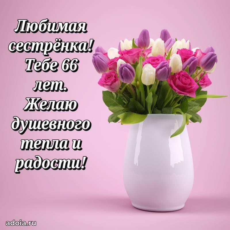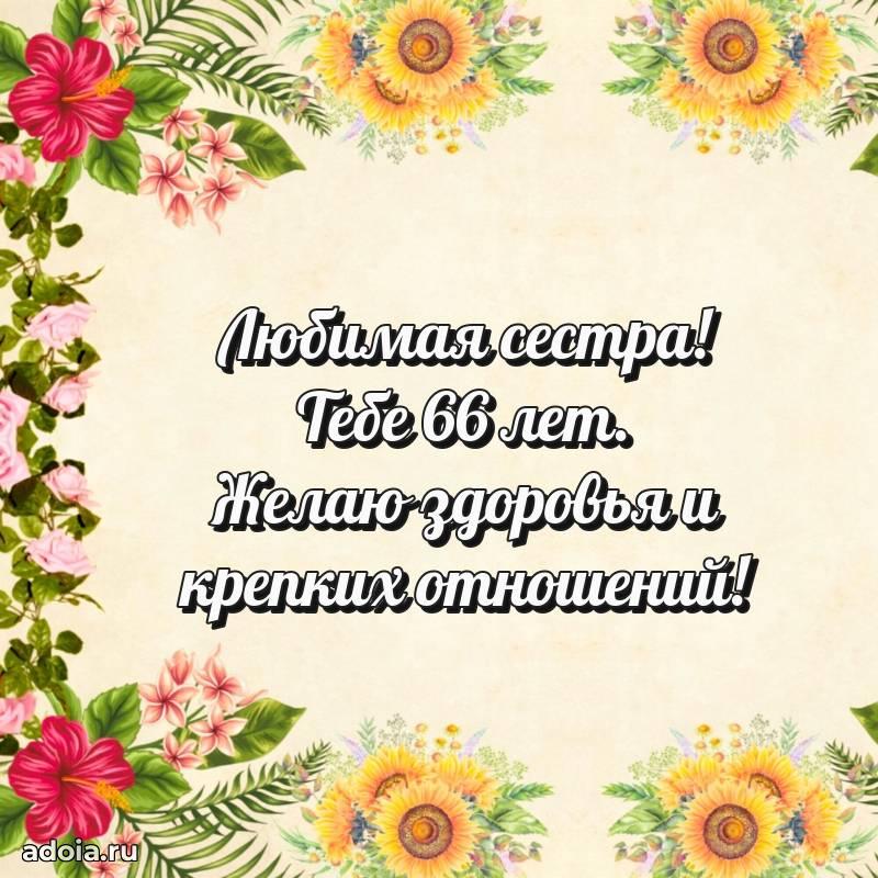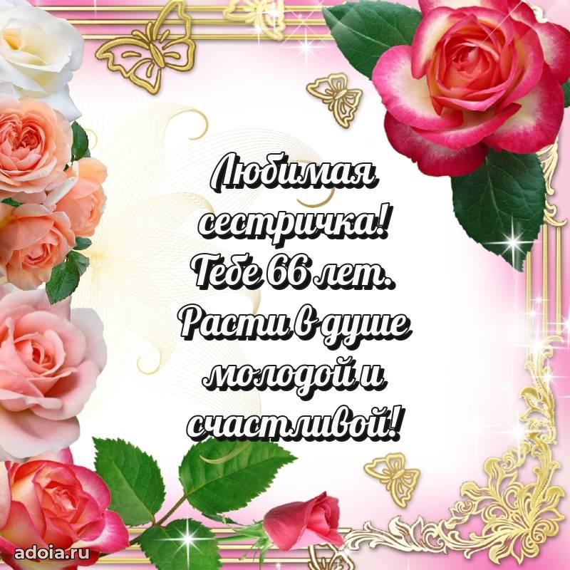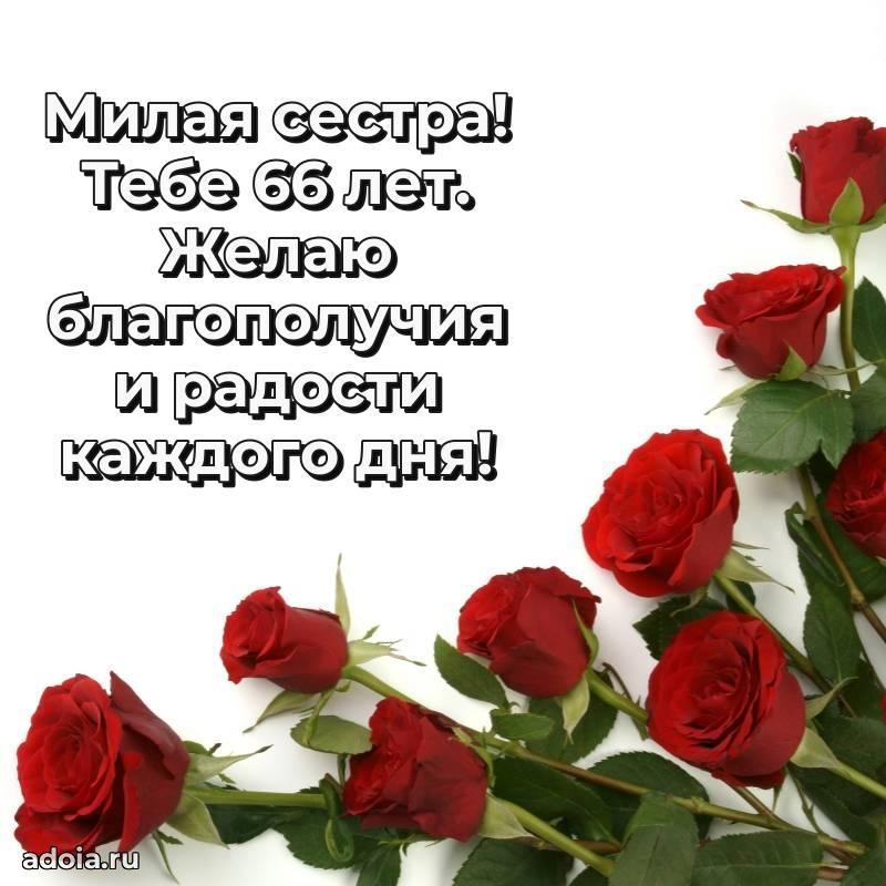 В поисках красивых и современных открыток? Вы попали по адресу! Здесь вы найдете картинки с днем рождения Сестре на 66 лет! Все картинки в высоком качестве, которые можно скачать или отправить через WhatsApp бесплатно. Также вы найдете много прикольных и мерцающих гифок и анимаций, которые поднимут настроение! Все открытки содержат поздравления в стихах и прозе.