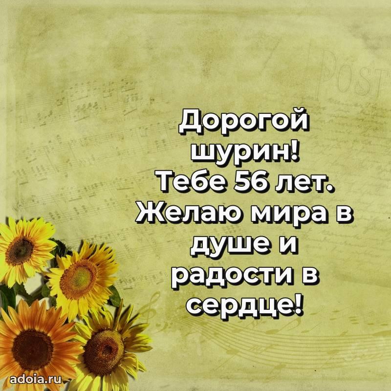 В поисках красивых и современных открыток? Вы попали по адресу! Здесь вы найдете картинки с днем рождения Шурину на 56 лет! Все картинки в высоком качестве, которые можно скачать или отправить через WhatsApp бесплатно. Также вы найдете много прикольных и мерцающих гифок и анимаций, которые поднимут настроение! Все открытки содержат поздравления в стихах и прозе.