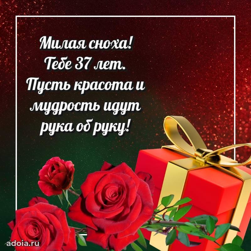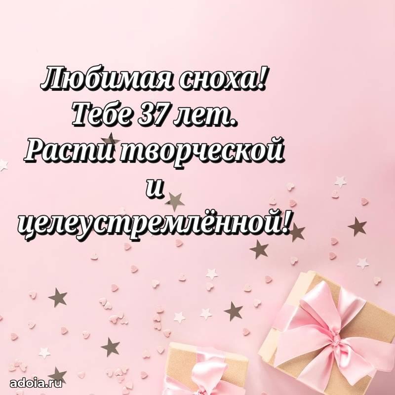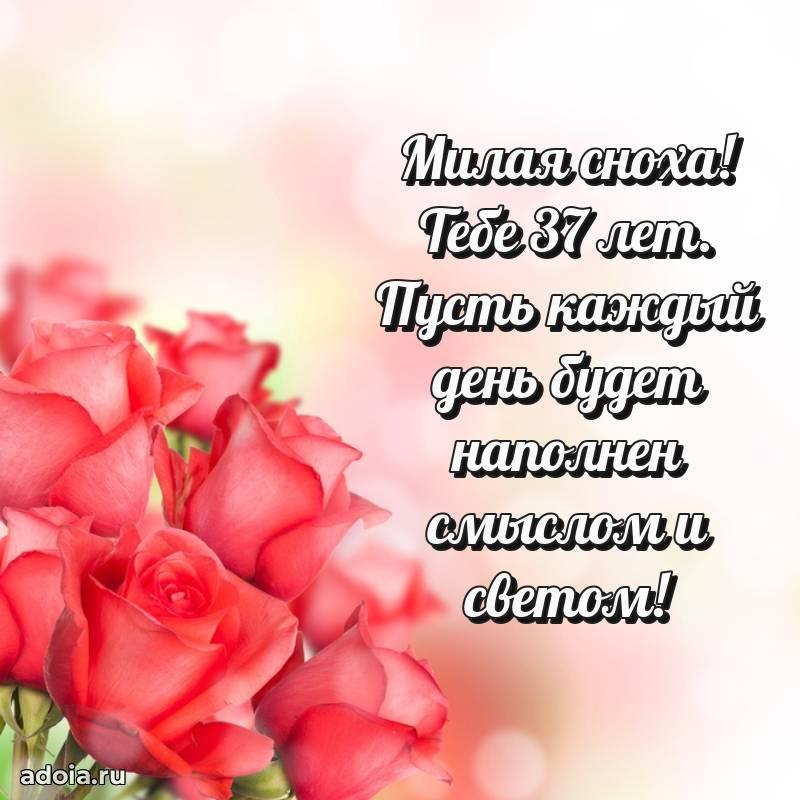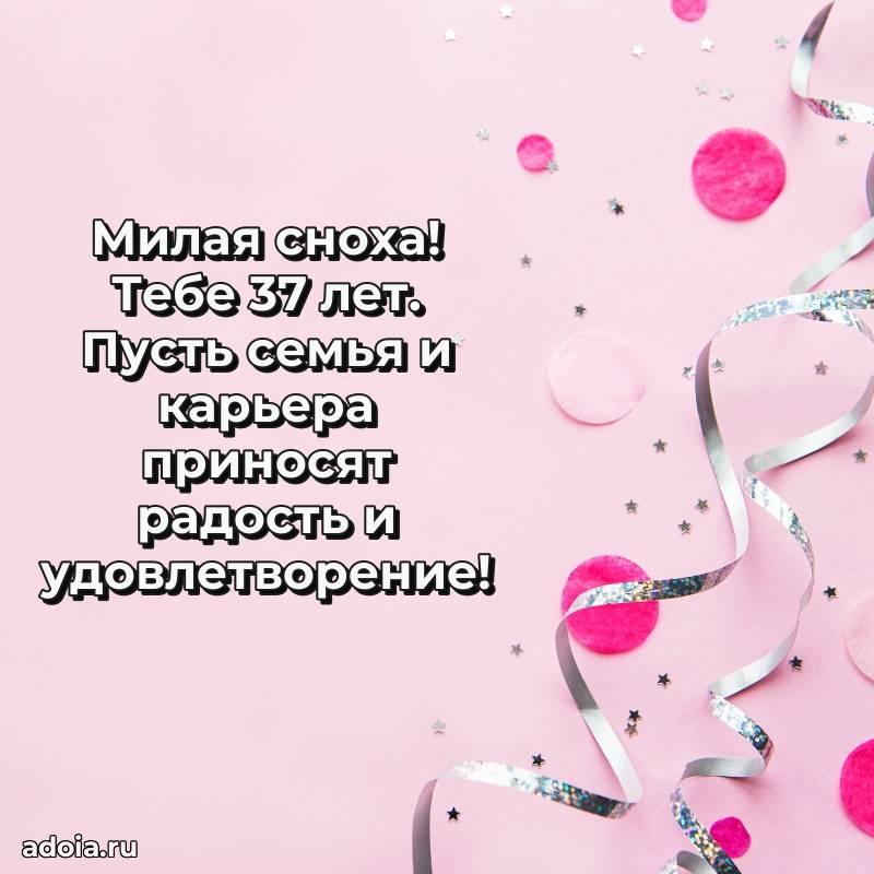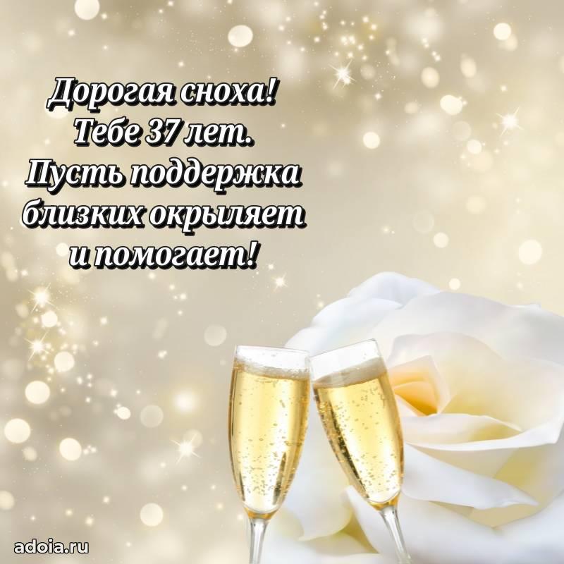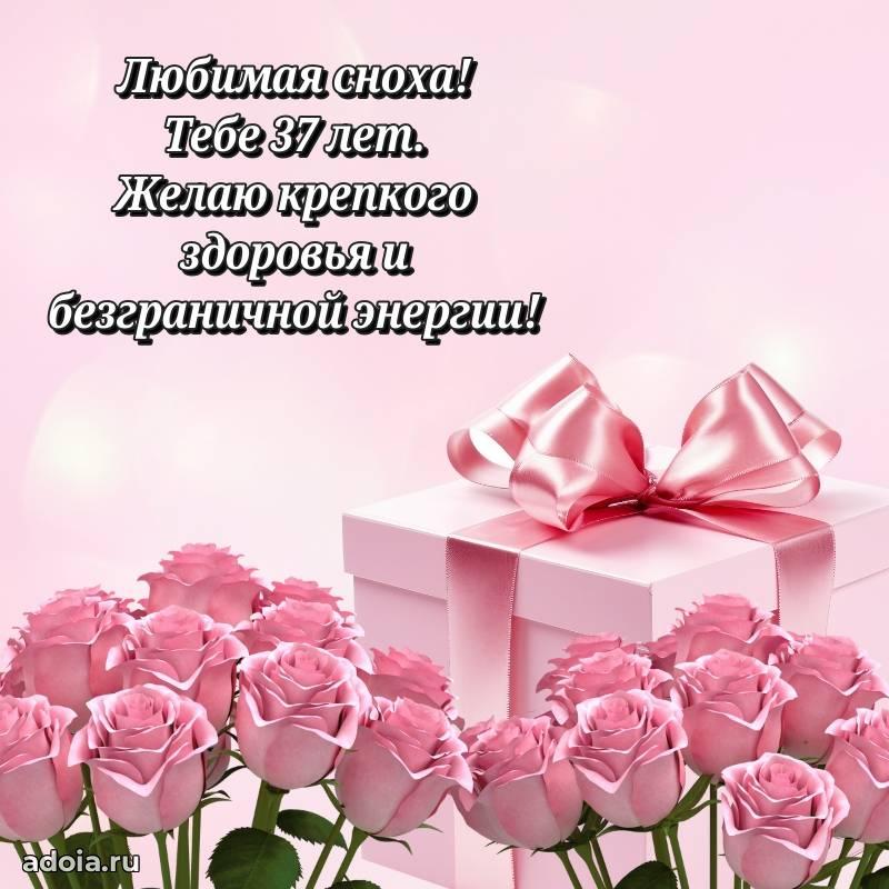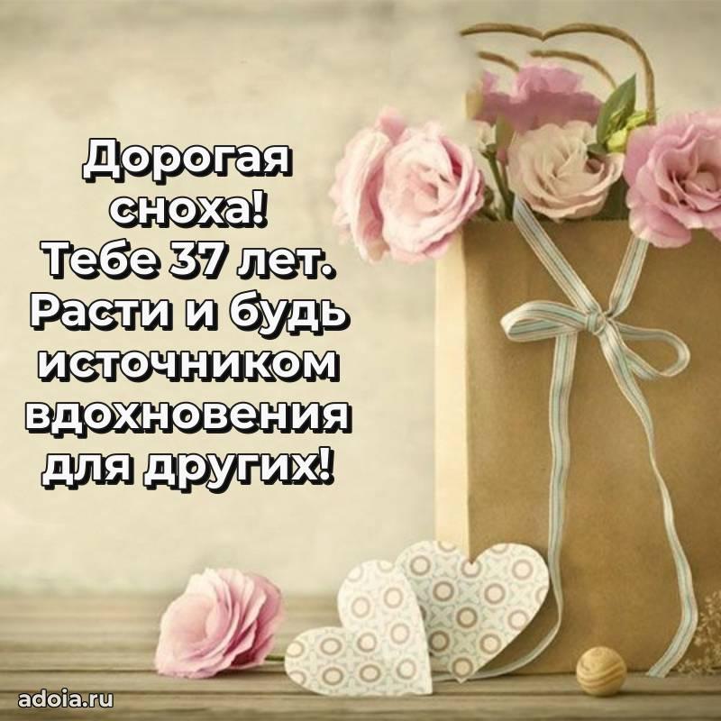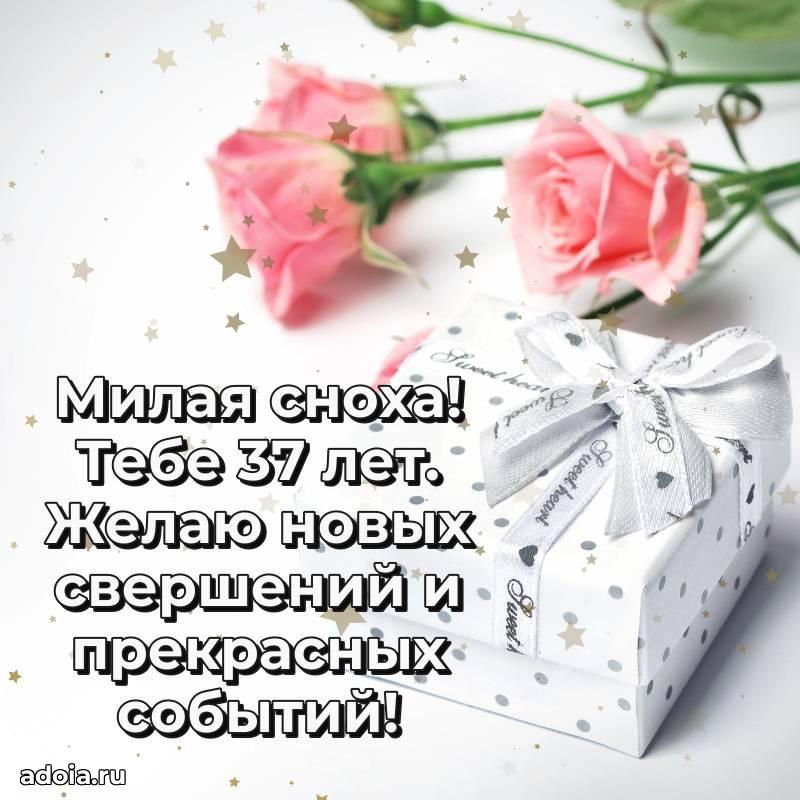 В поисках красивых и современных открыток? Вы попали по адресу! Здесь вы найдете картинки с днем рождения Снохе на 37 лет! Все картинки в высоком качестве, которые можно скачать или отправить через WhatsApp бесплатно. Также вы найдете много прикольных и мерцающих гифок и анимаций, которые поднимут настроение! Все открытки содержат поздравления в стихах и прозе.