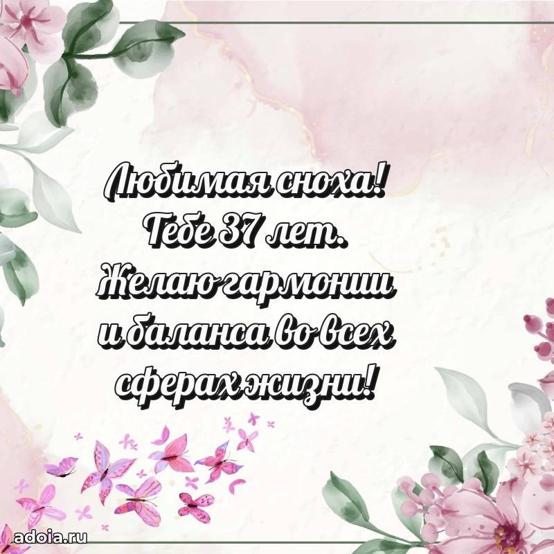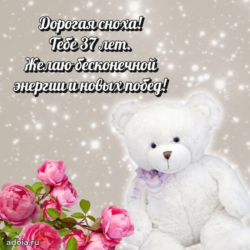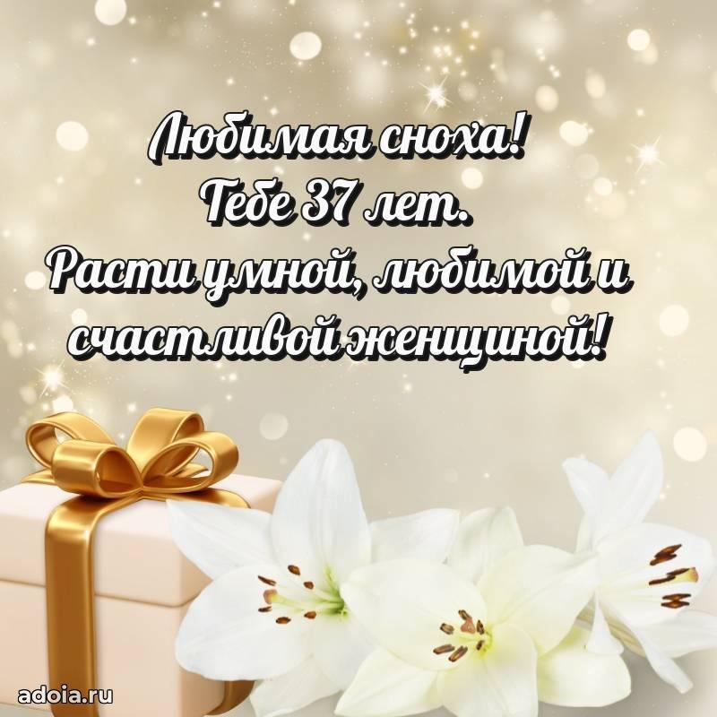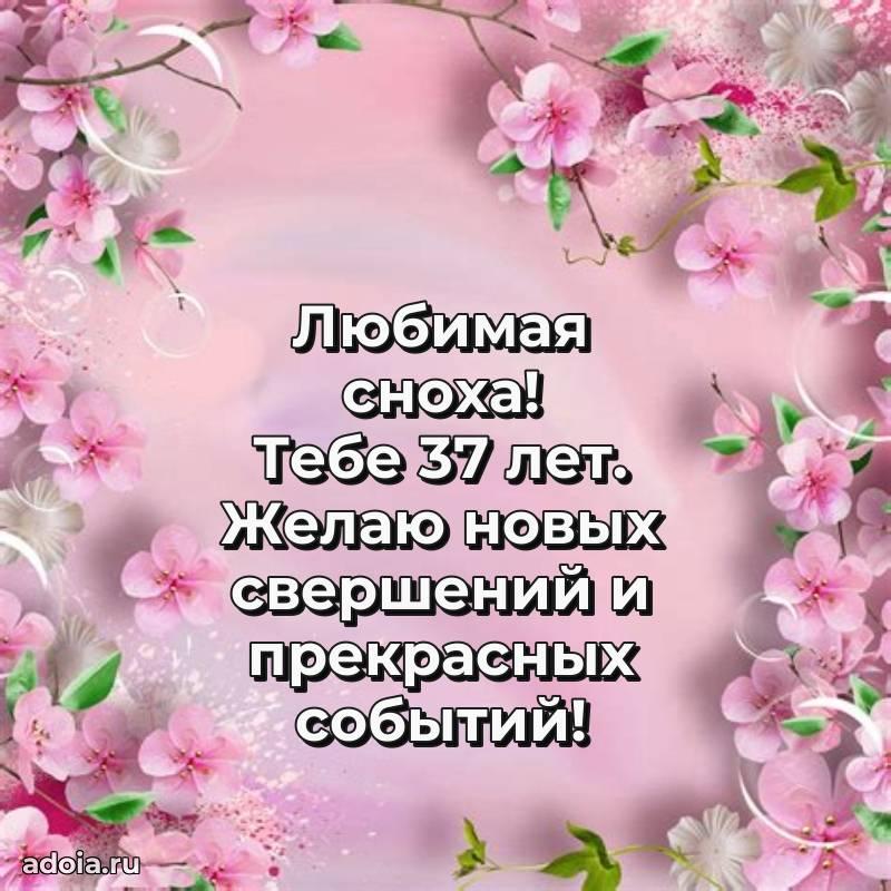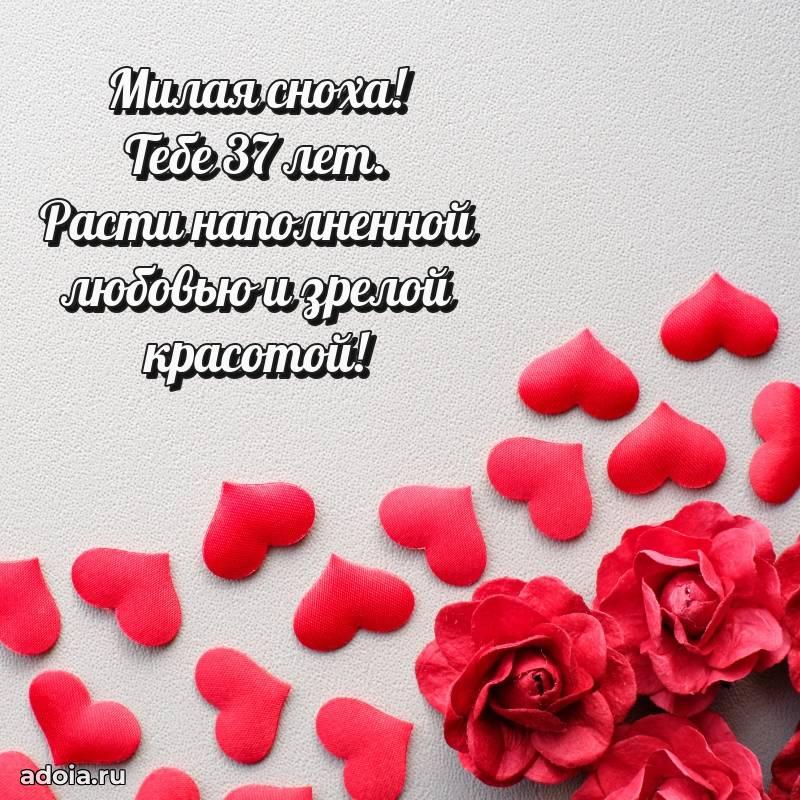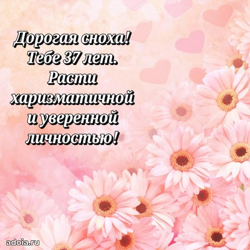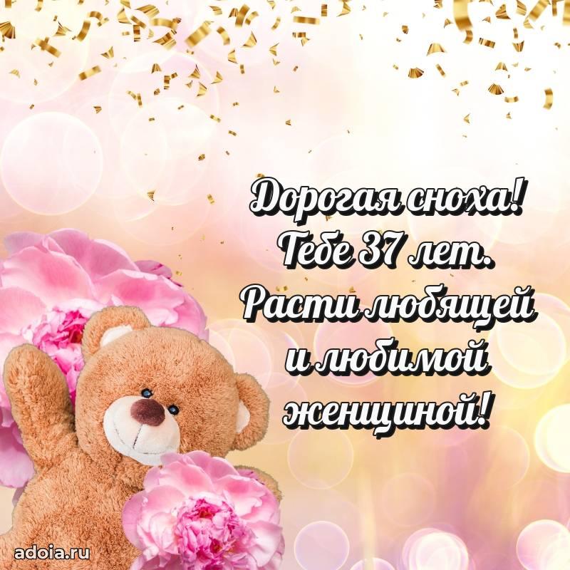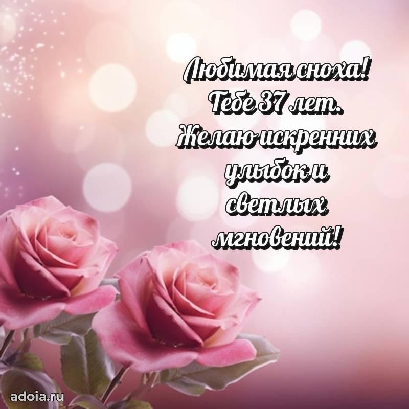 В поисках красивых и современных открыток? Вы попали по адресу! Здесь вы найдете картинки с днем рождения Снохе на 37 лет! Все картинки в высоком качестве, которые можно скачать или отправить через WhatsApp бесплатно. Также вы найдете много прикольных и мерцающих гифок и анимаций, которые поднимут настроение! Все открытки содержат поздравления в стихах и прозе.