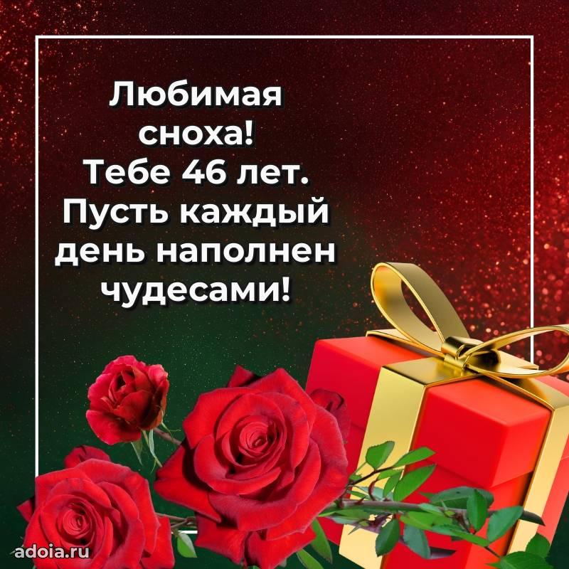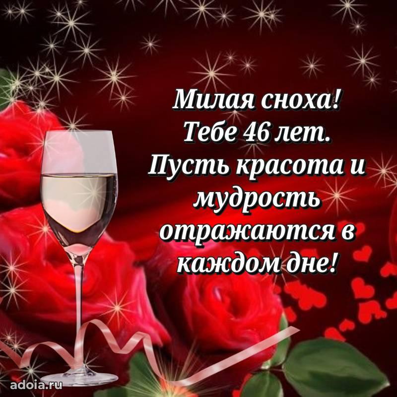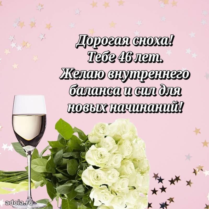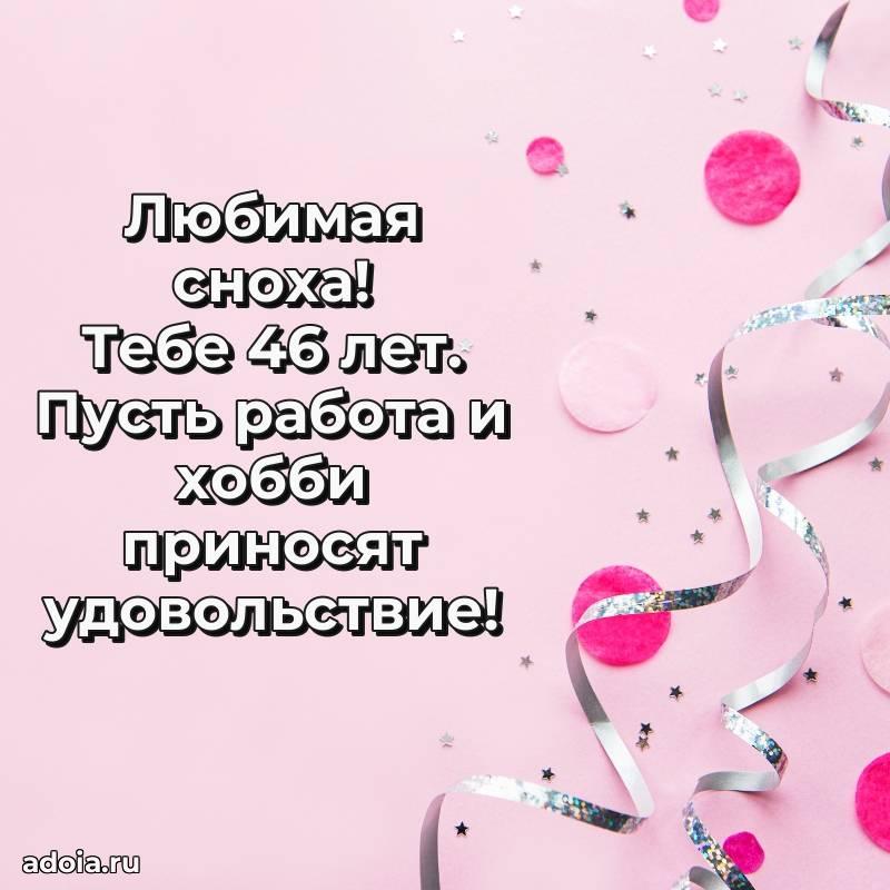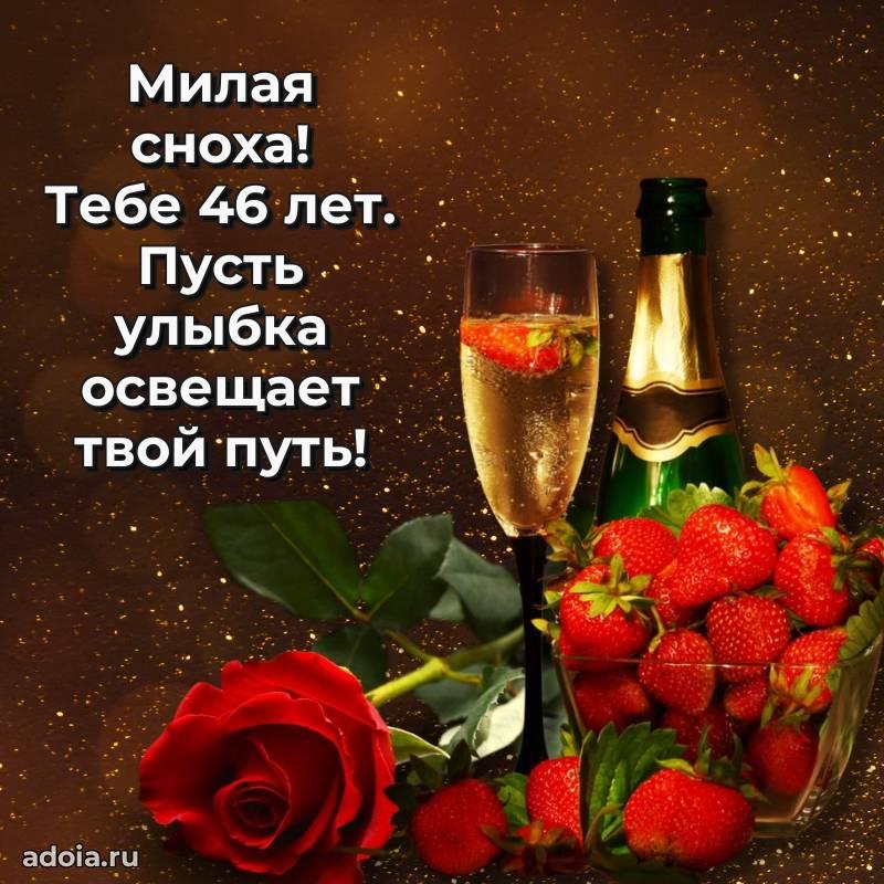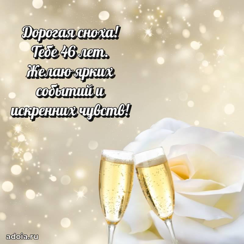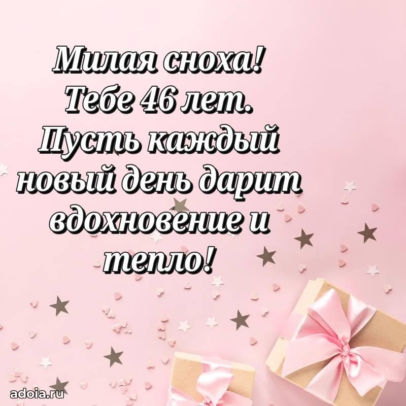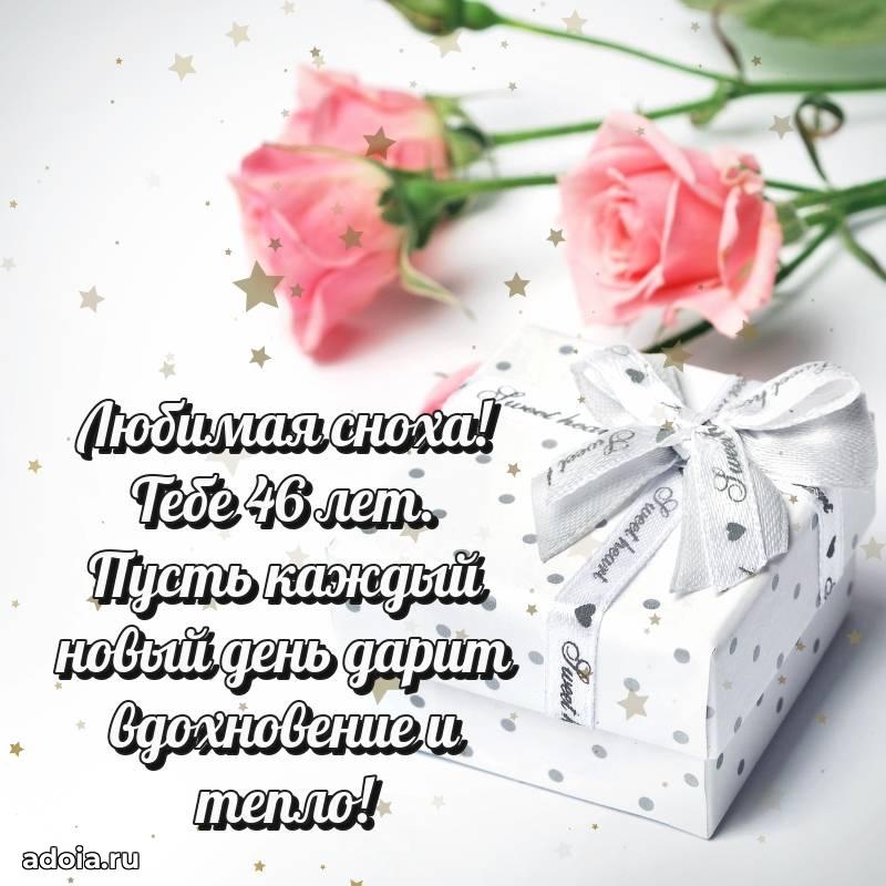 В поисках красивых и современных открыток? Вы попали по адресу! Здесь вы найдете картинки с днем рождения Снохе на 46 лет! Все картинки в высоком качестве, которые можно скачать или отправить через WhatsApp бесплатно. Также вы найдете много прикольных и мерцающих гифок и анимаций, которые поднимут настроение! Все открытки содержат поздравления в стихах и прозе.