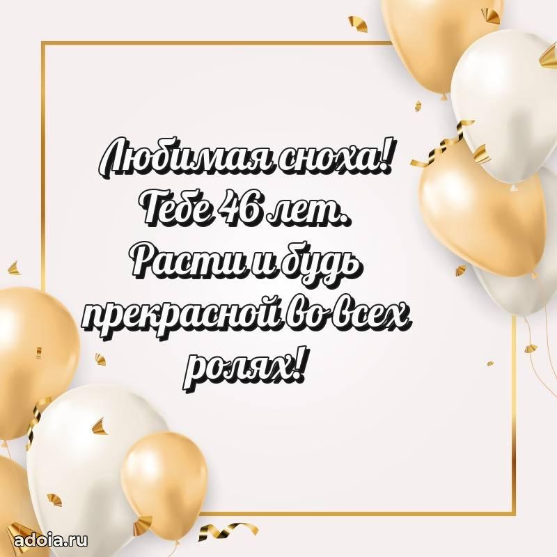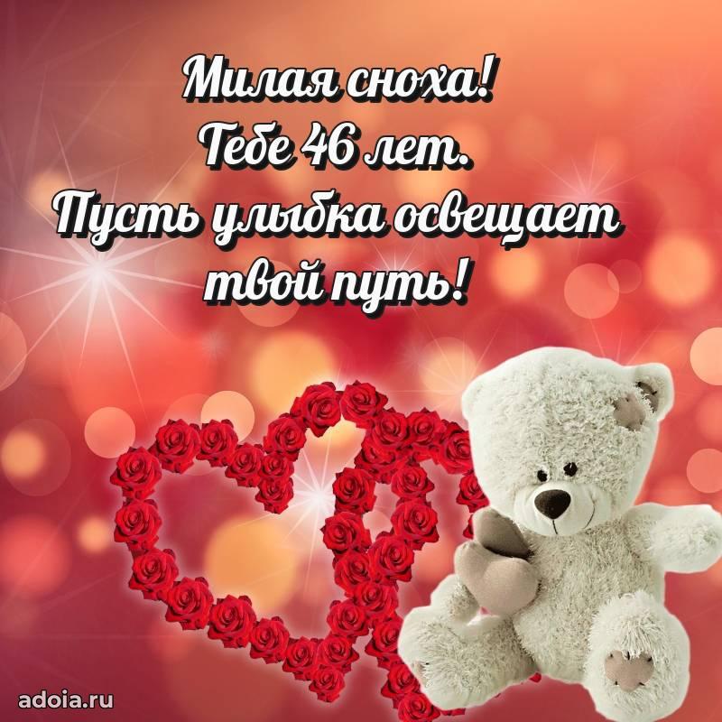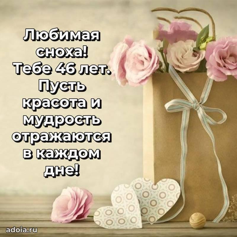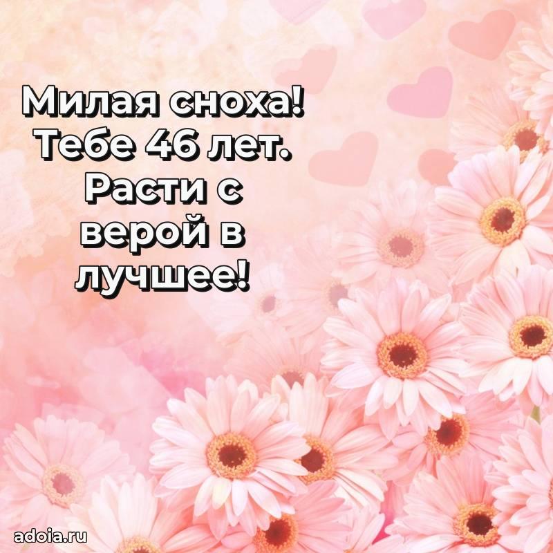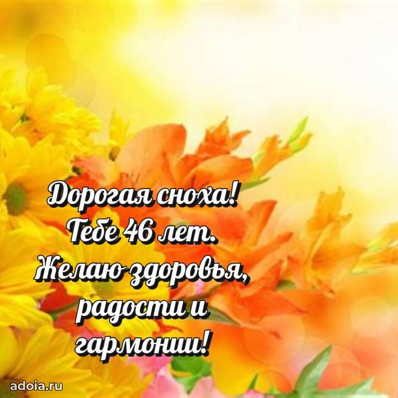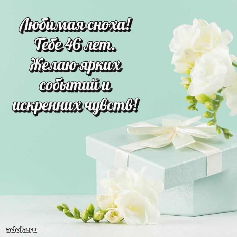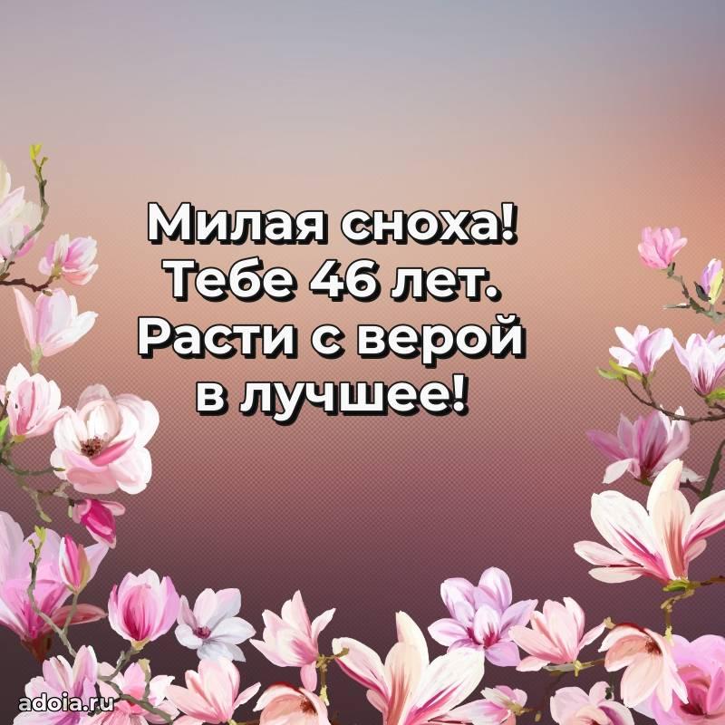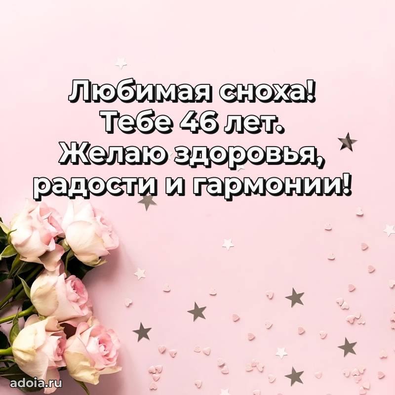 В поисках красивых и современных открыток? Вы попали по адресу! Здесь вы найдете картинки с днем рождения Снохе на 46 лет! Все картинки в высоком качестве, которые можно скачать или отправить через WhatsApp бесплатно. Также вы найдете много прикольных и мерцающих гифок и анимаций, которые поднимут настроение! Все открытки содержат поздравления в стихах и прозе.