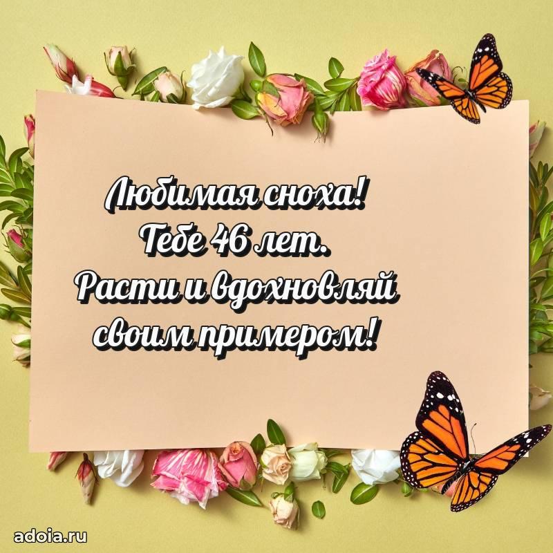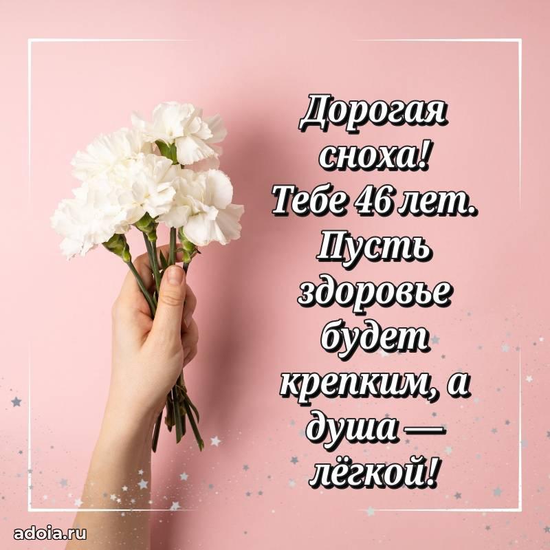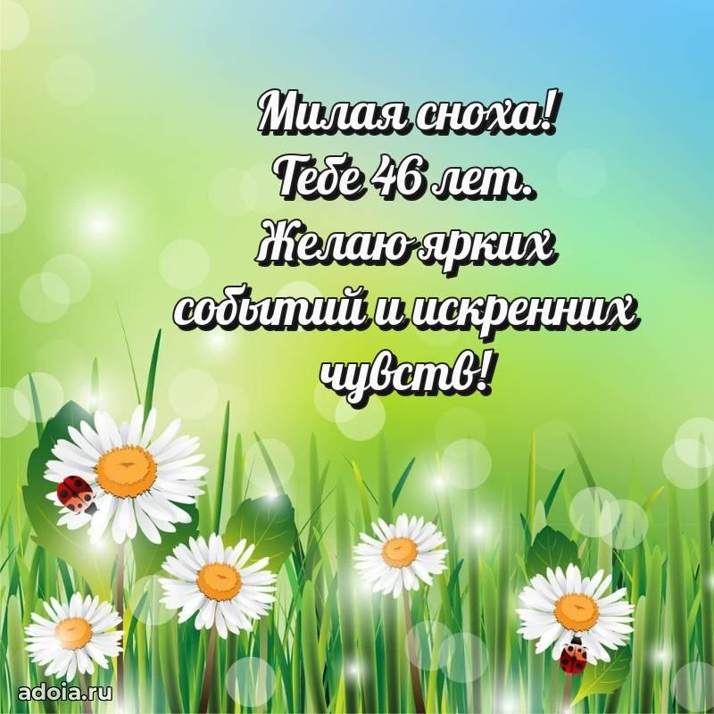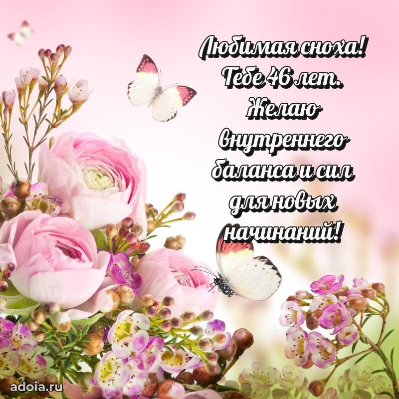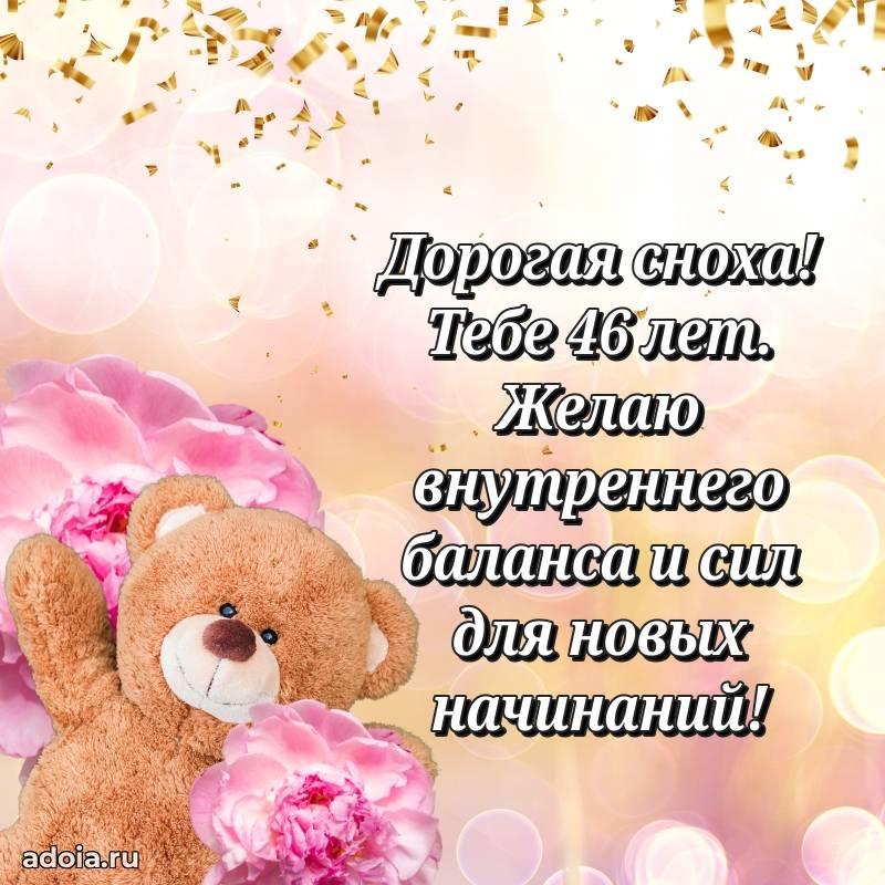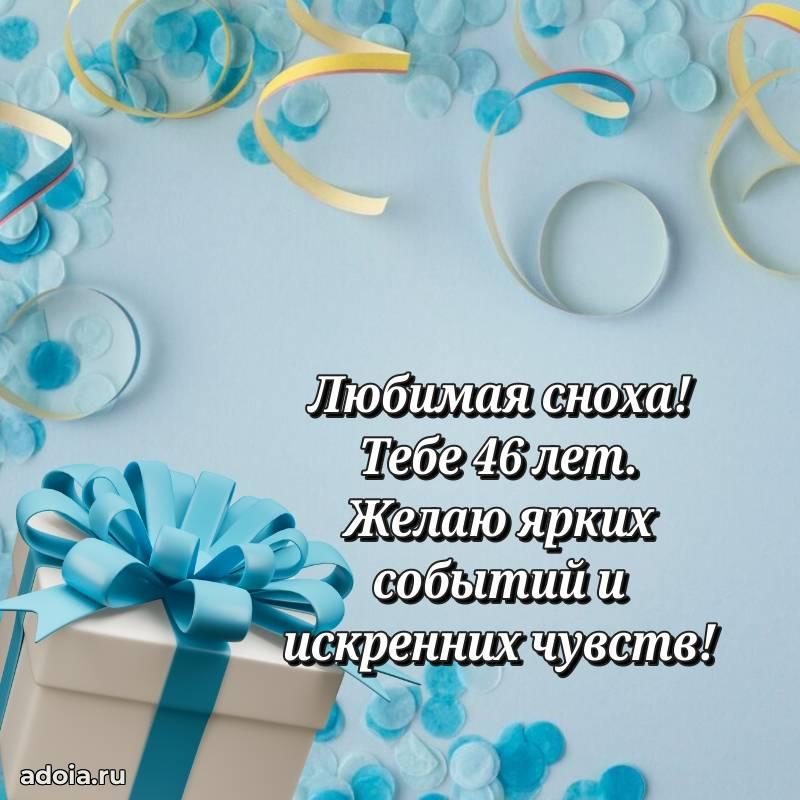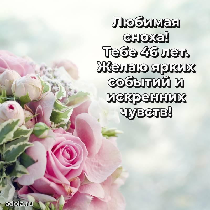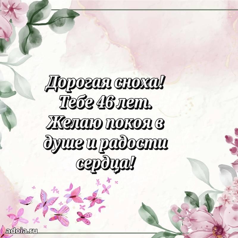 В поисках красивых и современных открыток? Вы попали по адресу! Здесь вы найдете картинки с днем рождения Снохе на 46 лет! Все картинки в высоком качестве, которые можно скачать или отправить через WhatsApp бесплатно. Также вы найдете много прикольных и мерцающих гифок и анимаций, которые поднимут настроение! Все открытки содержат поздравления в стихах и прозе.