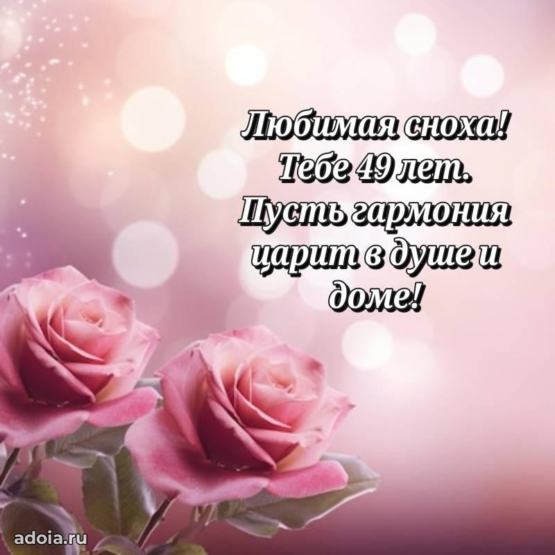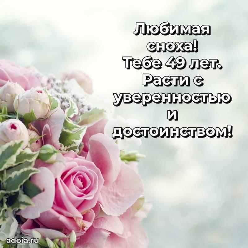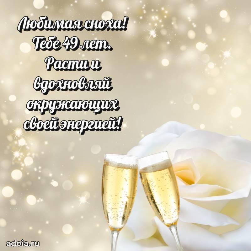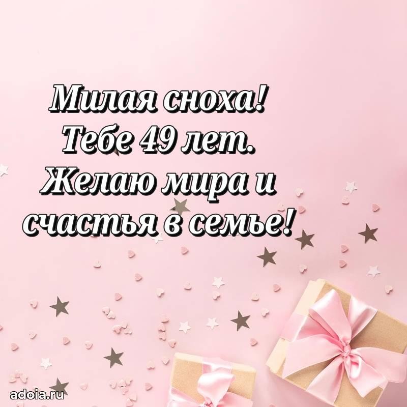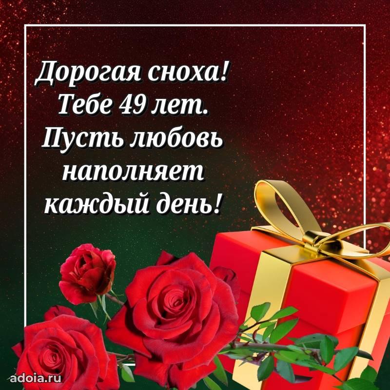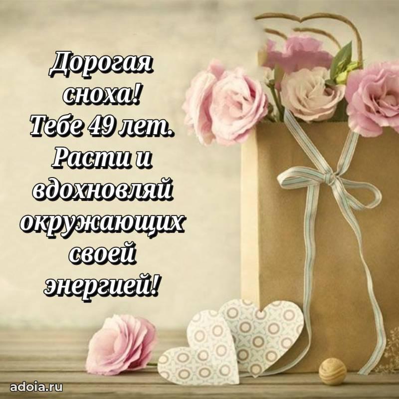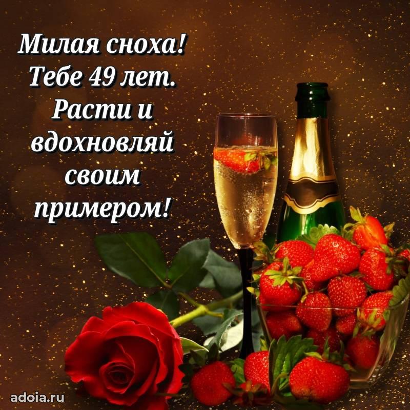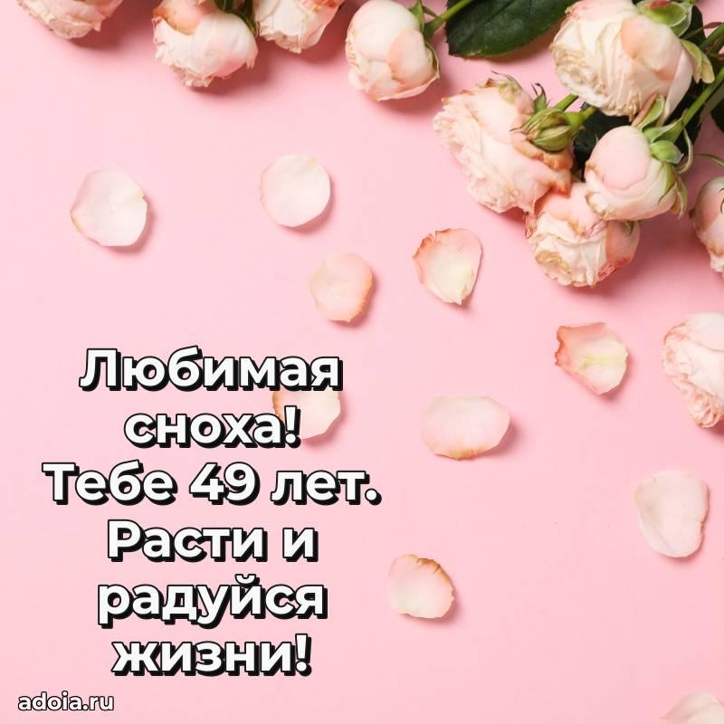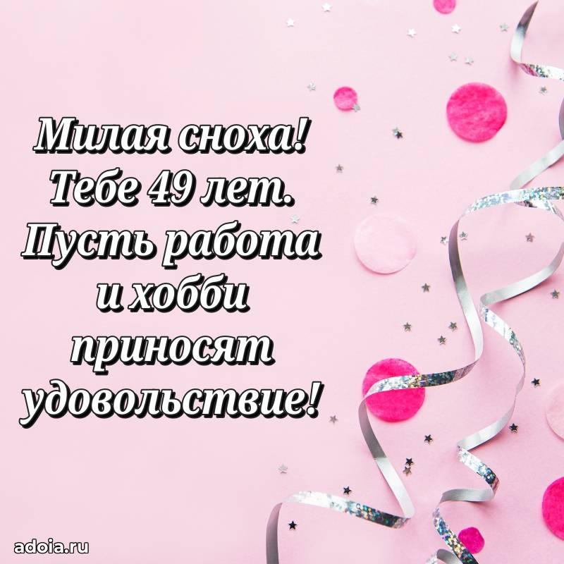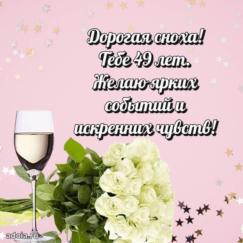 В поисках красивых и современных открыток? Вы попали по адресу! Здесь вы найдете картинки с днем рождения Снохе на 49 лет! Все картинки в высоком качестве, которые можно скачать или отправить через WhatsApp бесплатно. Также вы найдете много прикольных и мерцающих гифок и анимаций, которые поднимут настроение! Все открытки содержат поздравления в стихах и прозе.