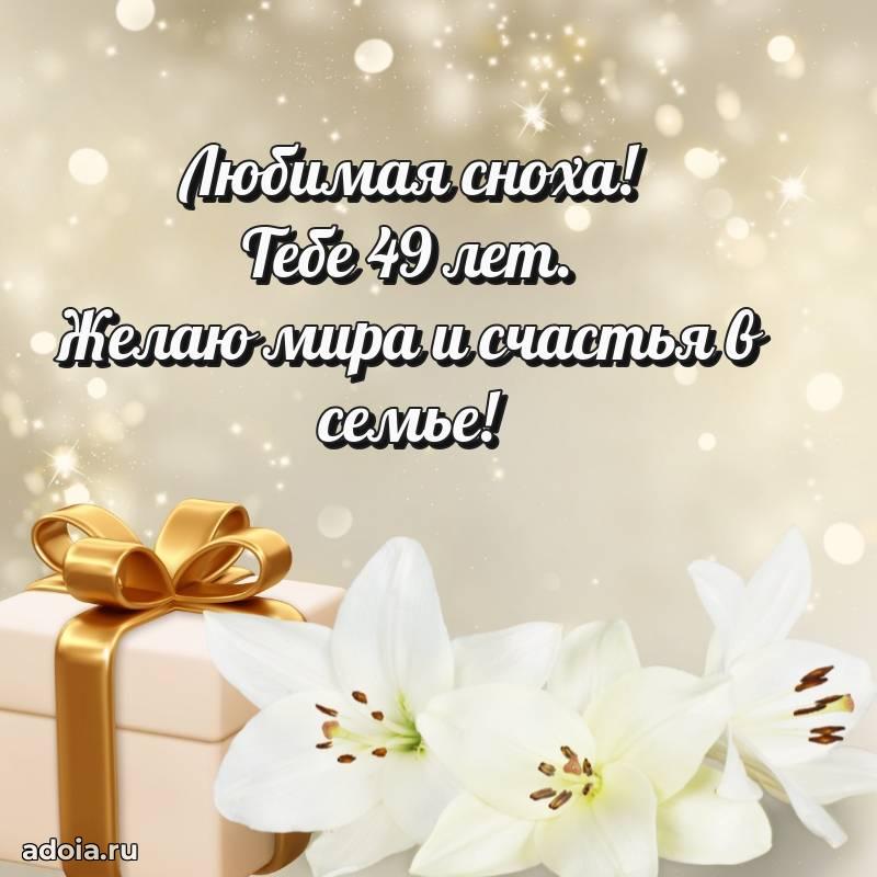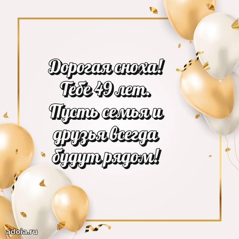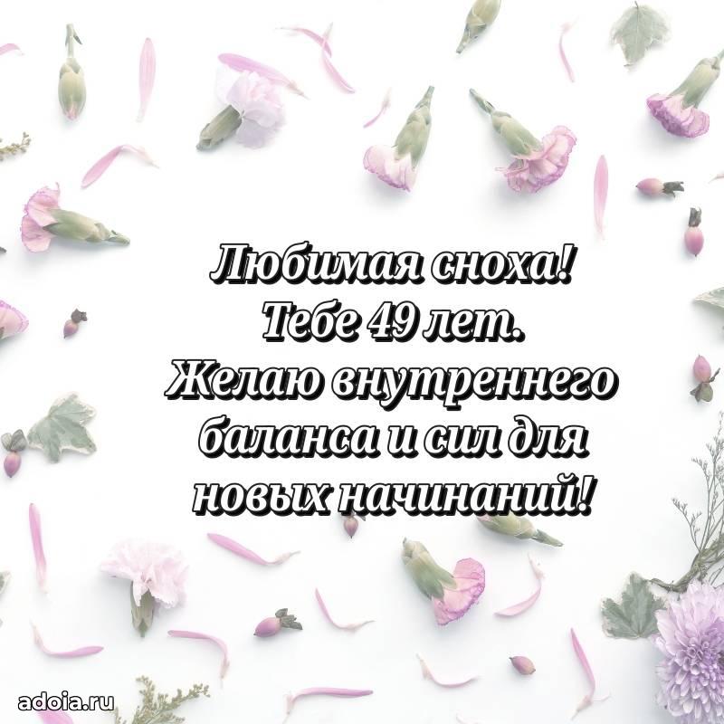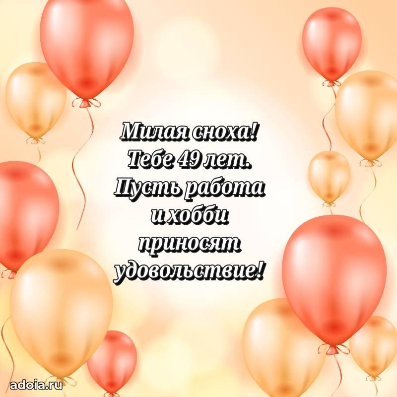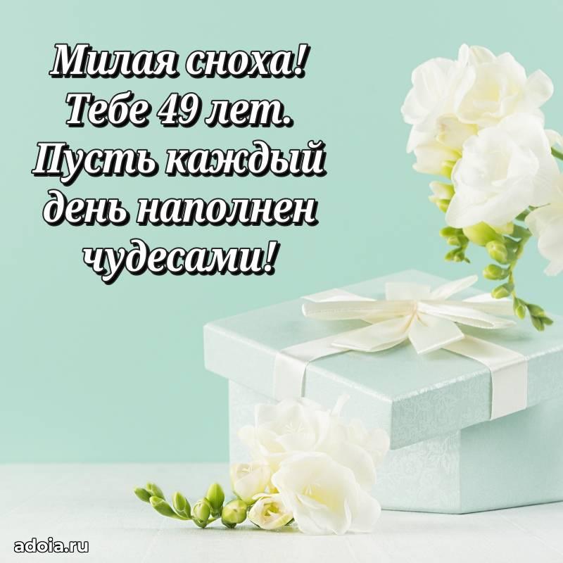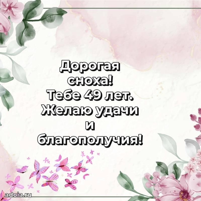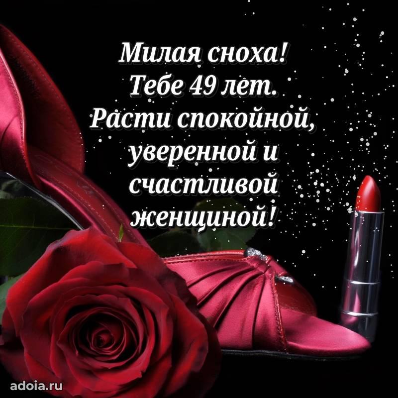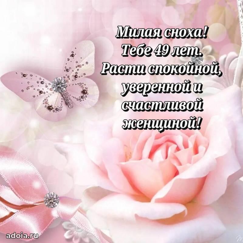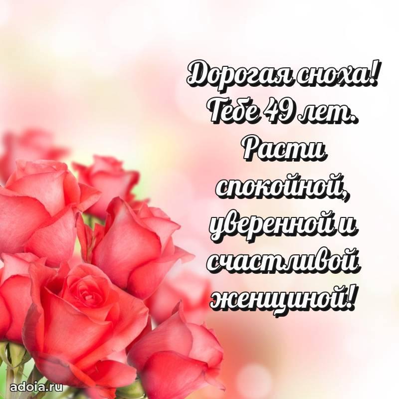 В поисках красивых и современных открыток? Вы попали по адресу! Здесь вы найдете картинки с днем рождения Снохе на 49 лет! Все картинки в высоком качестве, которые можно скачать или отправить через WhatsApp бесплатно. Также вы найдете много прикольных и мерцающих гифок и анимаций, которые поднимут настроение! Все открытки содержат поздравления в стихах и прозе.
