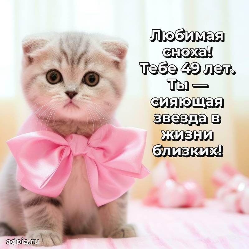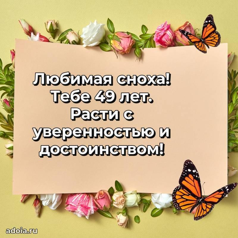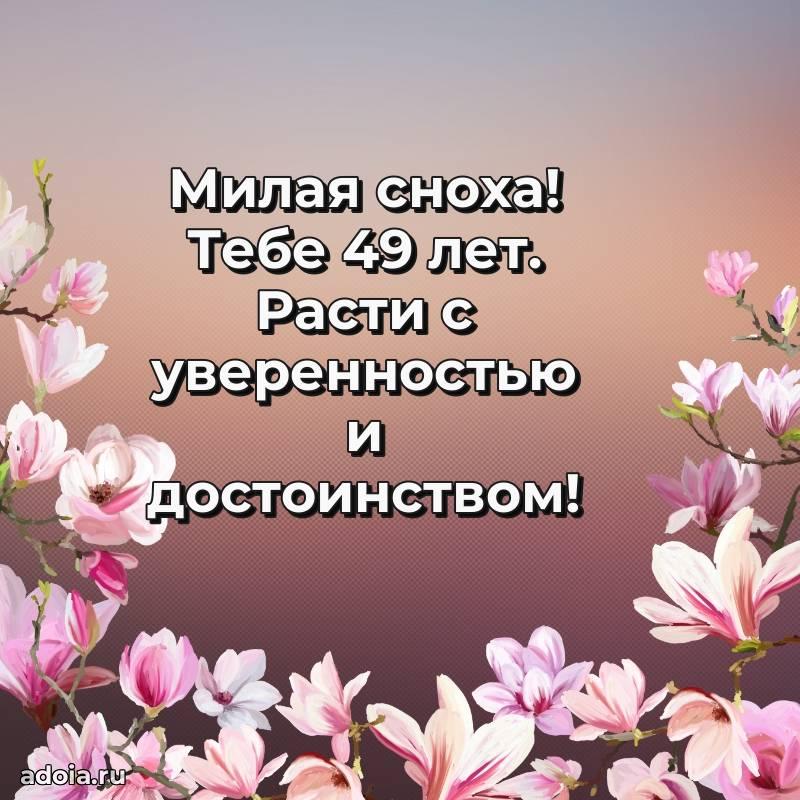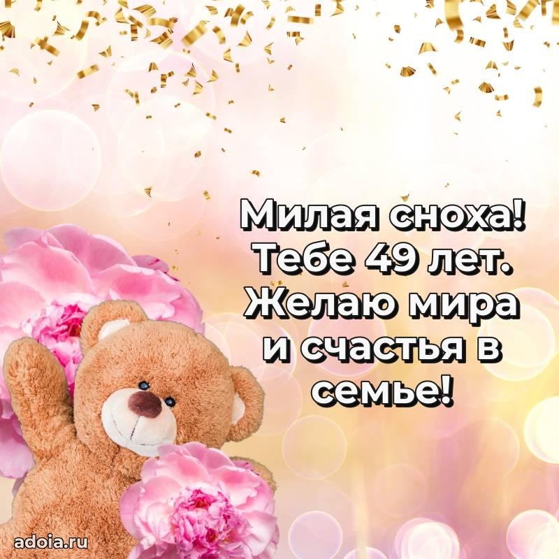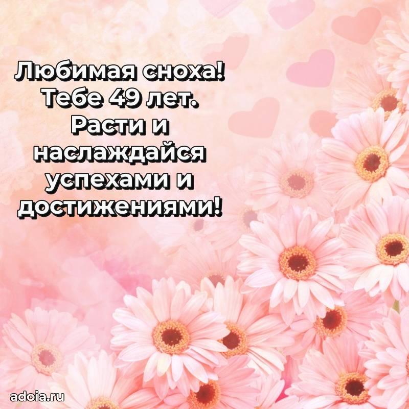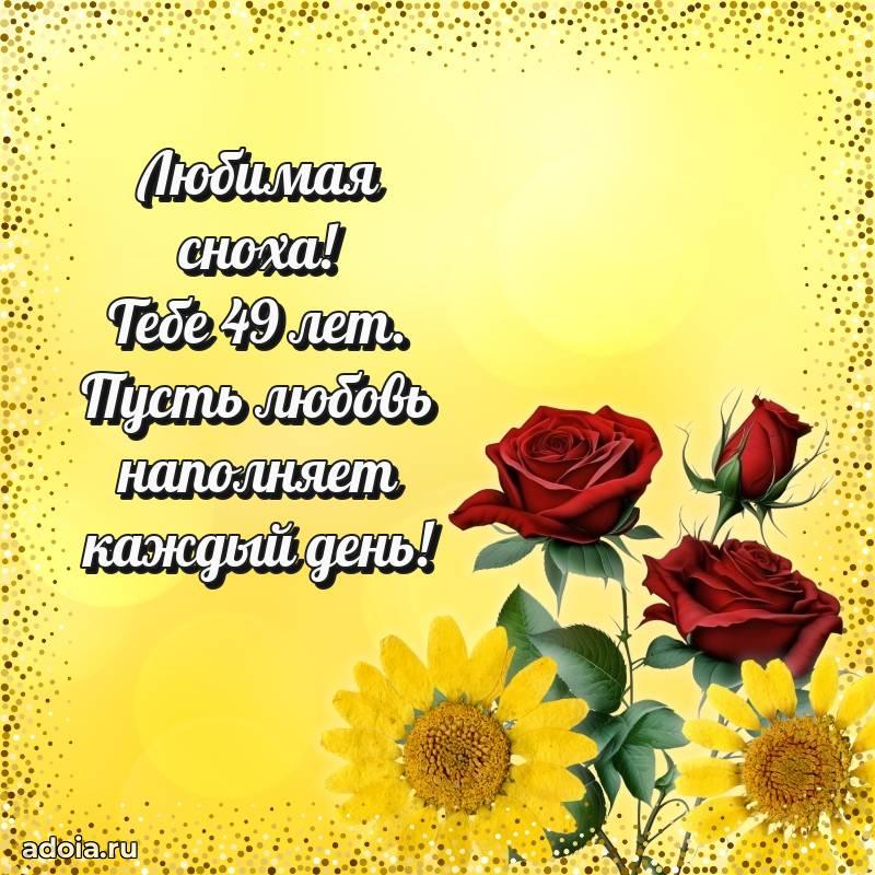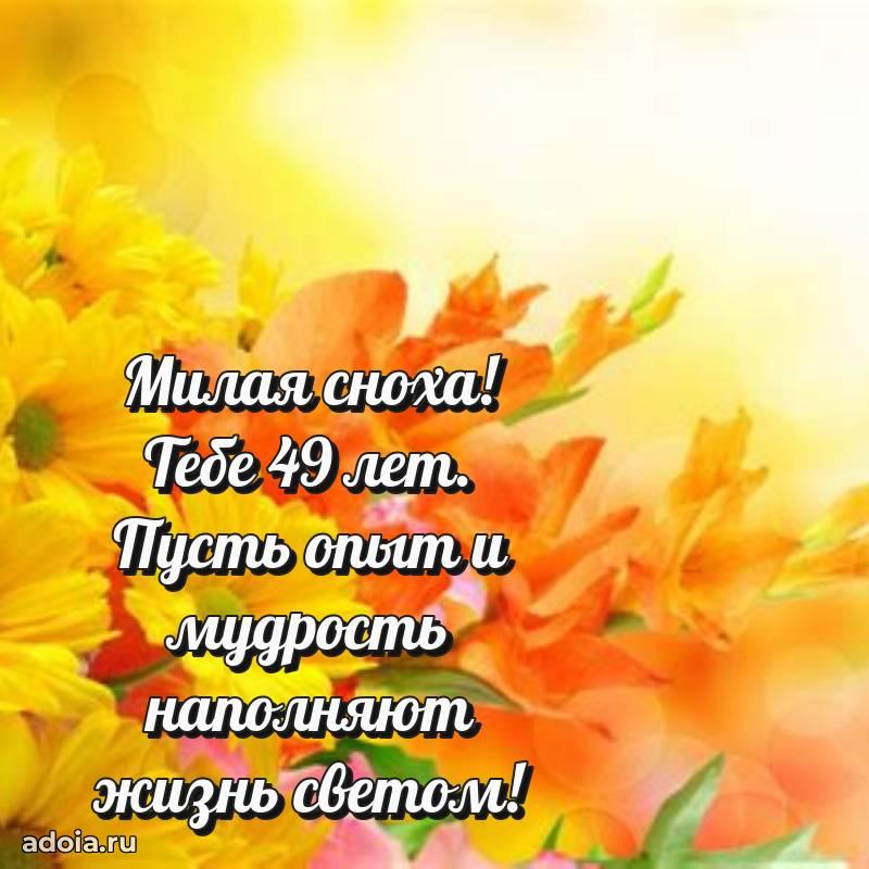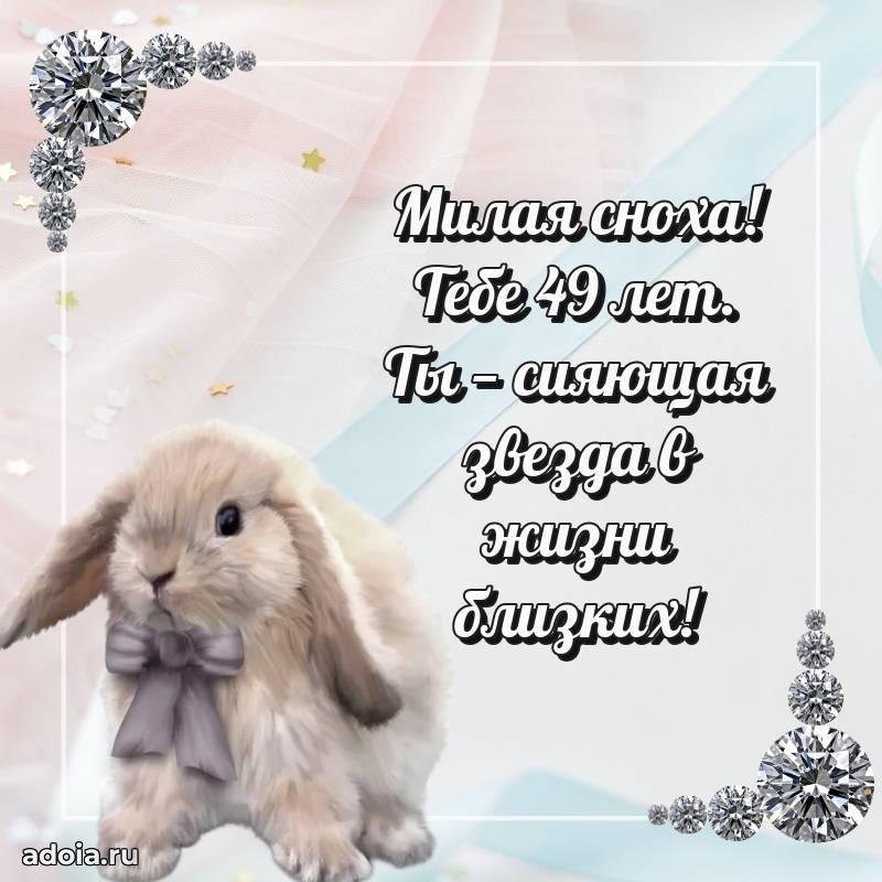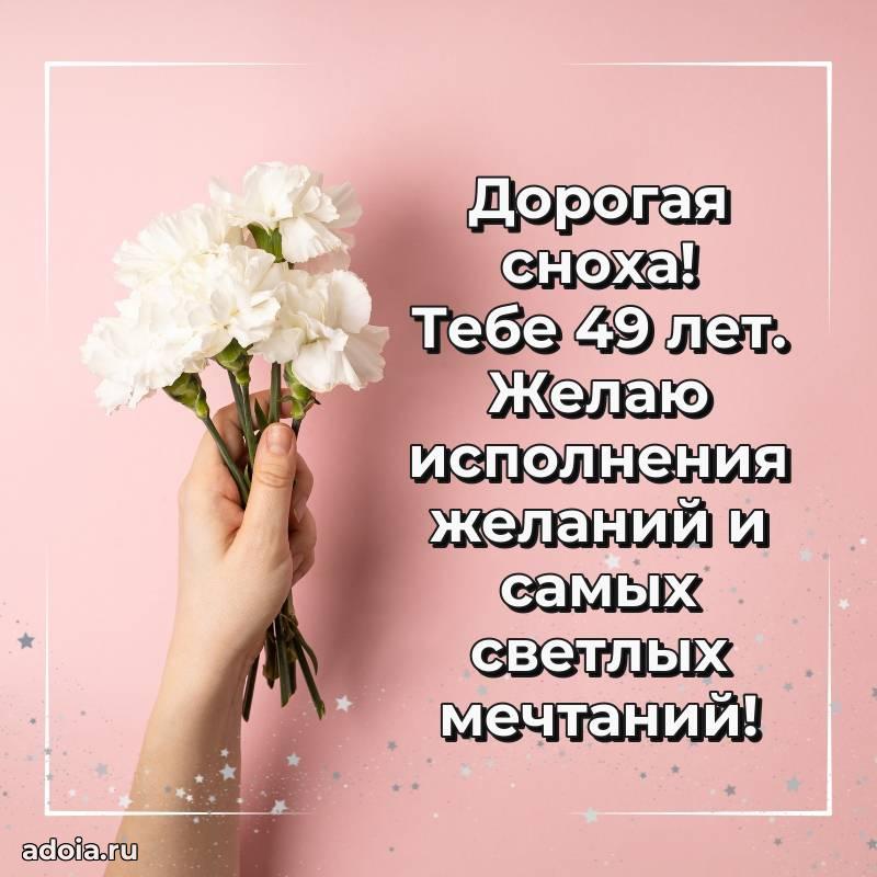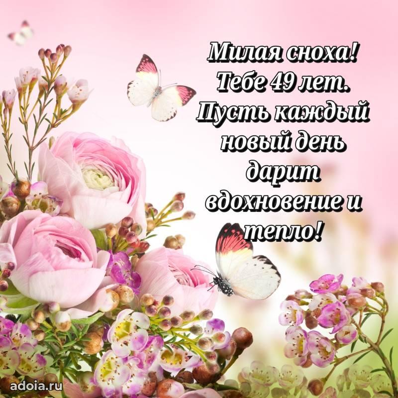 В поисках красивых и современных открыток? Вы попали по адресу! Здесь вы найдете картинки с днем рождения Снохе на 49 лет! Все картинки в высоком качестве, которые можно скачать или отправить через WhatsApp бесплатно. Также вы найдете много прикольных и мерцающих гифок и анимаций, которые поднимут настроение! Все открытки содержат поздравления в стихах и прозе.