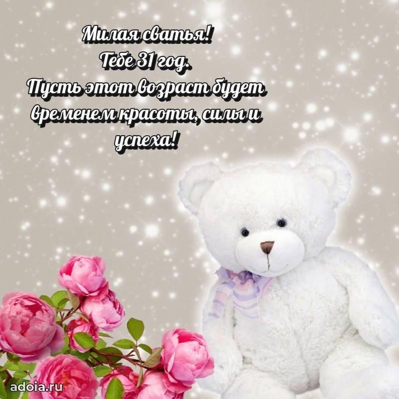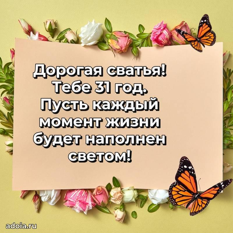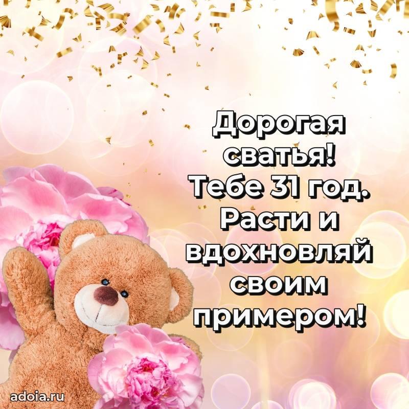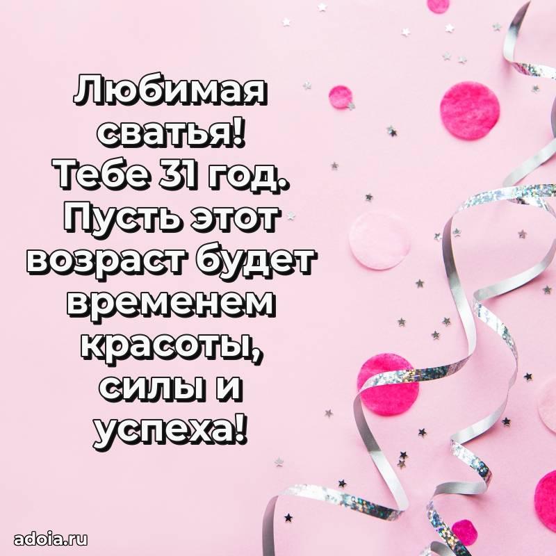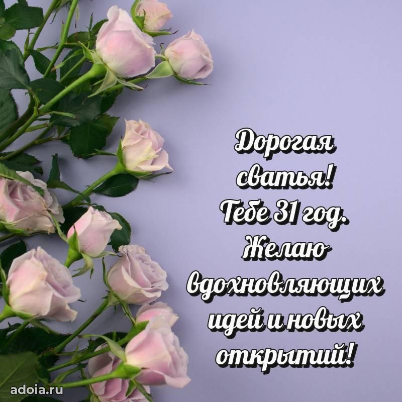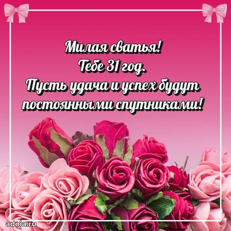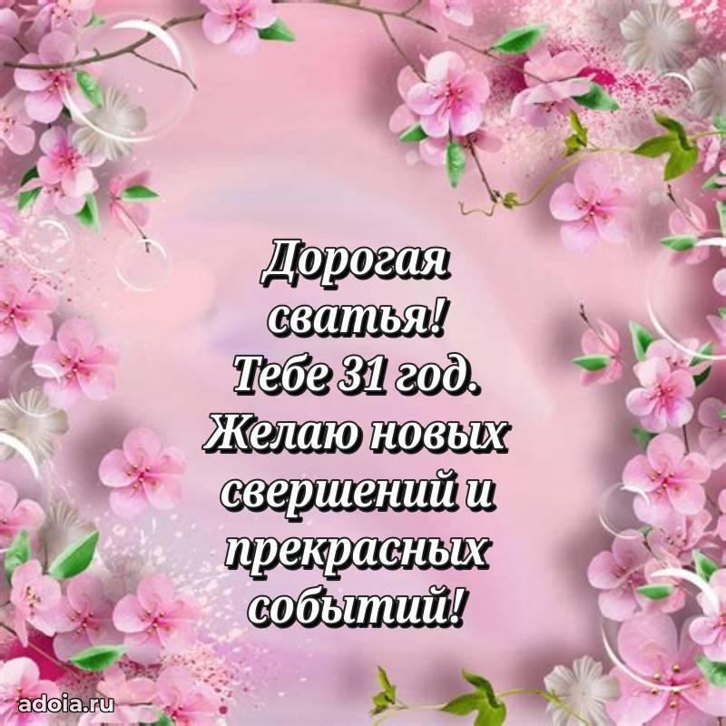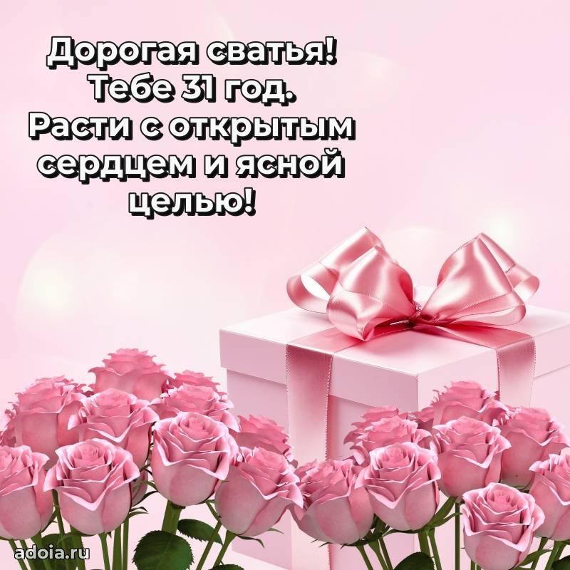 В поисках красивых и современных открыток? Вы попали по адресу! Здесь вы найдете картинки с днем рождения Сватье на 31 год! Все картинки в высоком качестве, которые можно скачать или отправить через WhatsApp бесплатно. Также вы найдете много прикольных и мерцающих гифок и анимаций, которые поднимут настроение! Все открытки содержат поздравления в стихах и прозе.