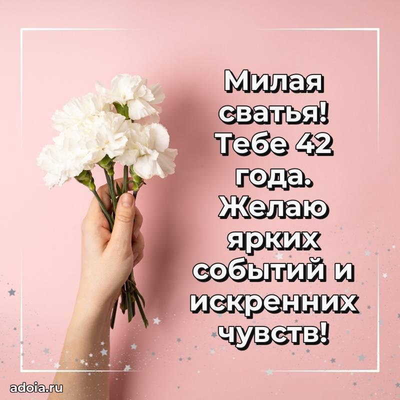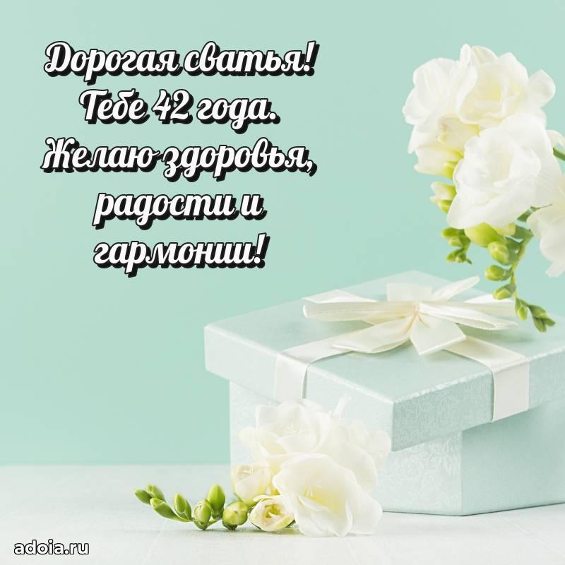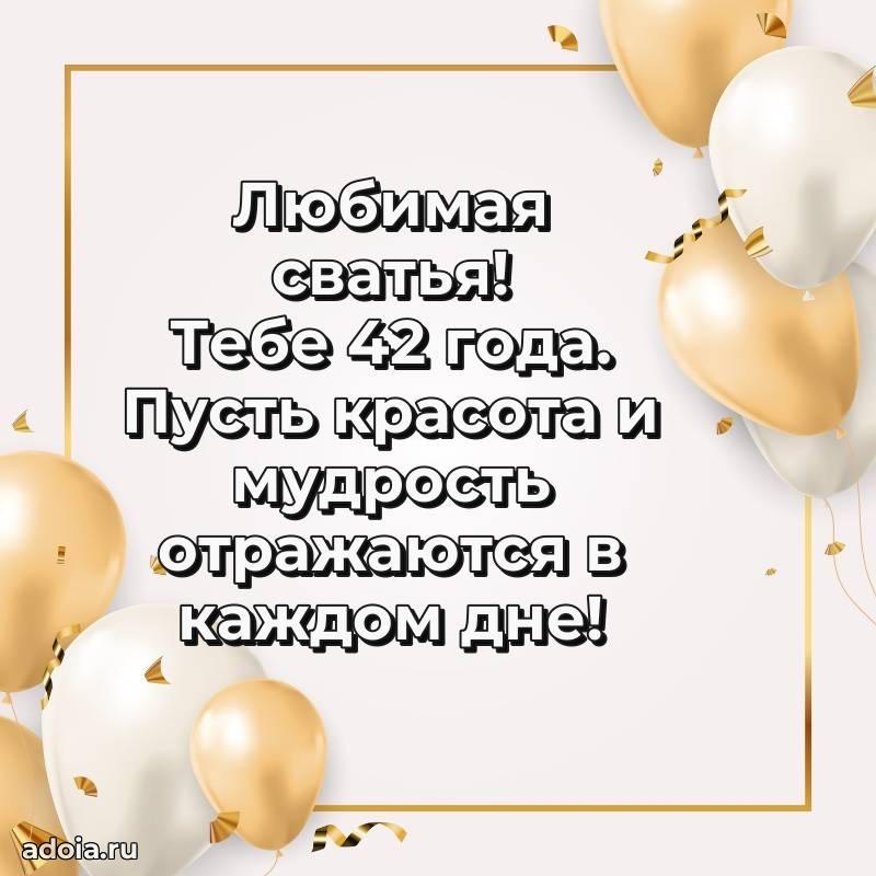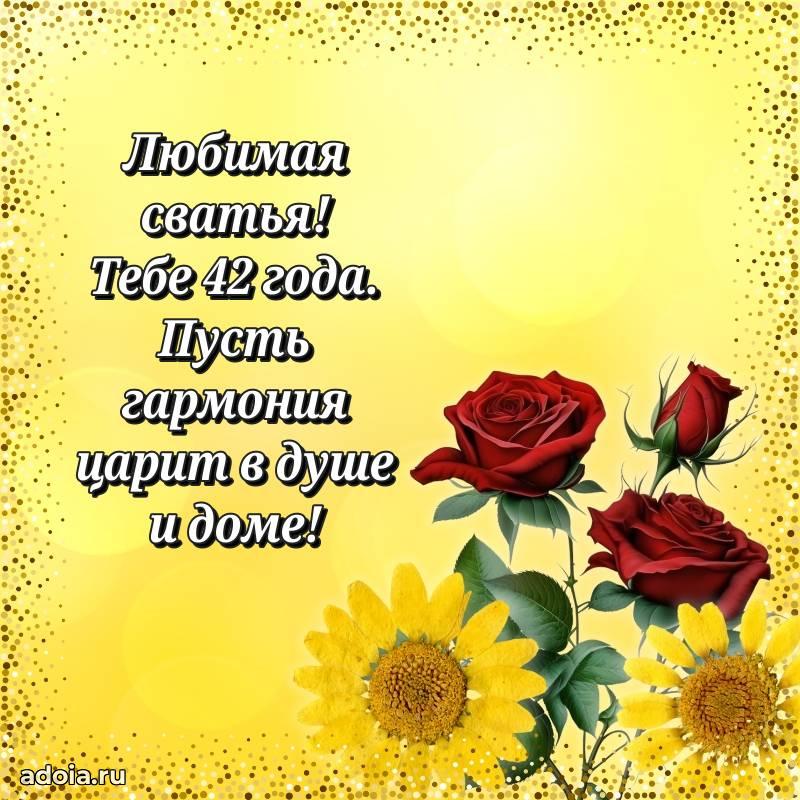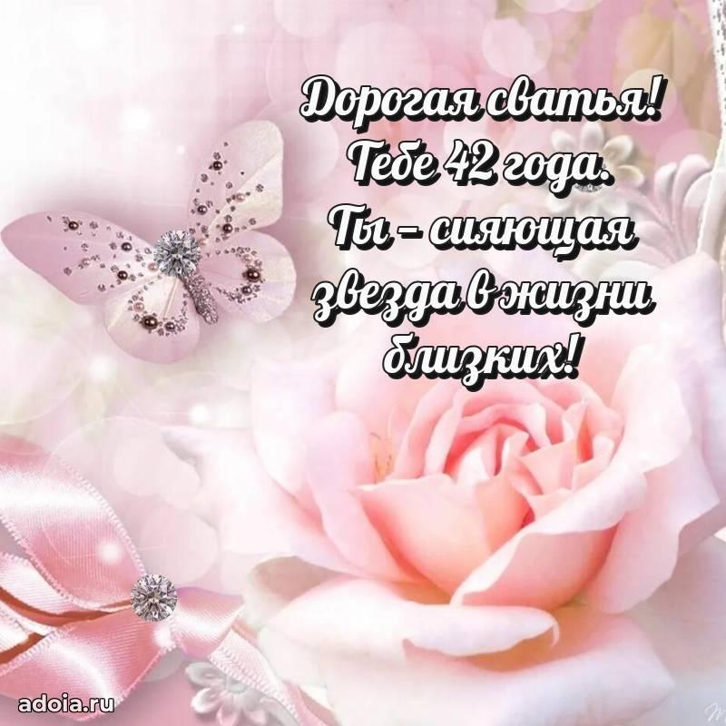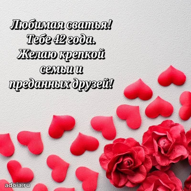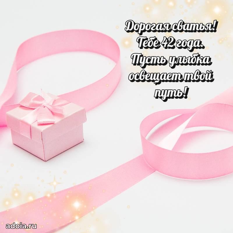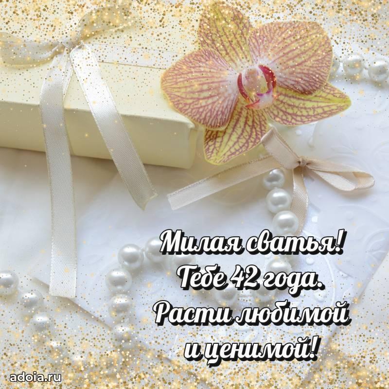 В поисках красивых и современных открыток? Вы попали по адресу! Здесь вы найдете картинки с днем рождения Сватье на 42 года! Все картинки в высоком качестве, которые можно скачать или отправить через WhatsApp бесплатно. Также вы найдете много прикольных и мерцающих гифок и анимаций, которые поднимут настроение! Все открытки содержат поздравления в стихах и прозе.