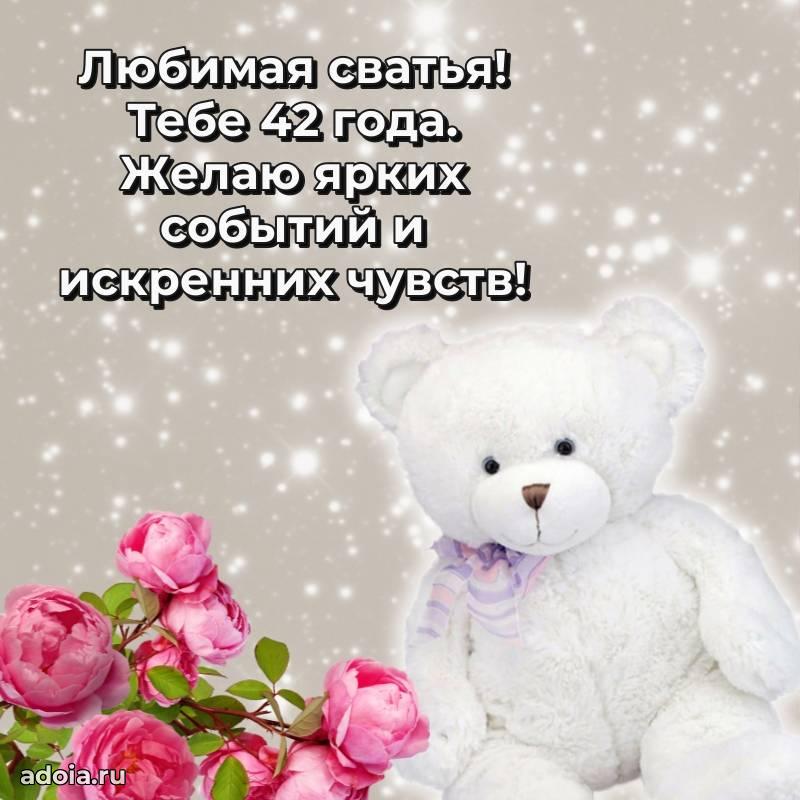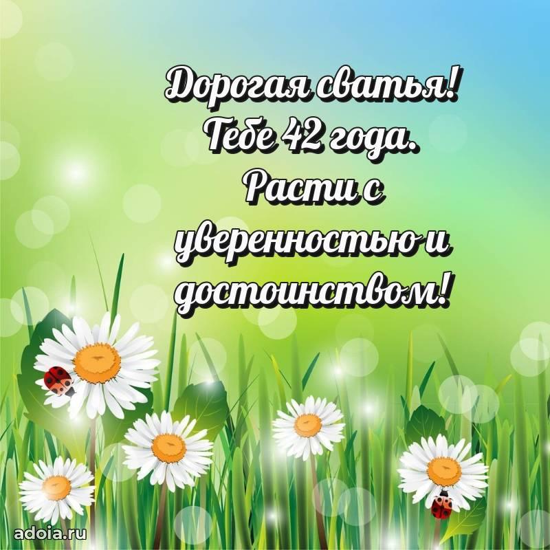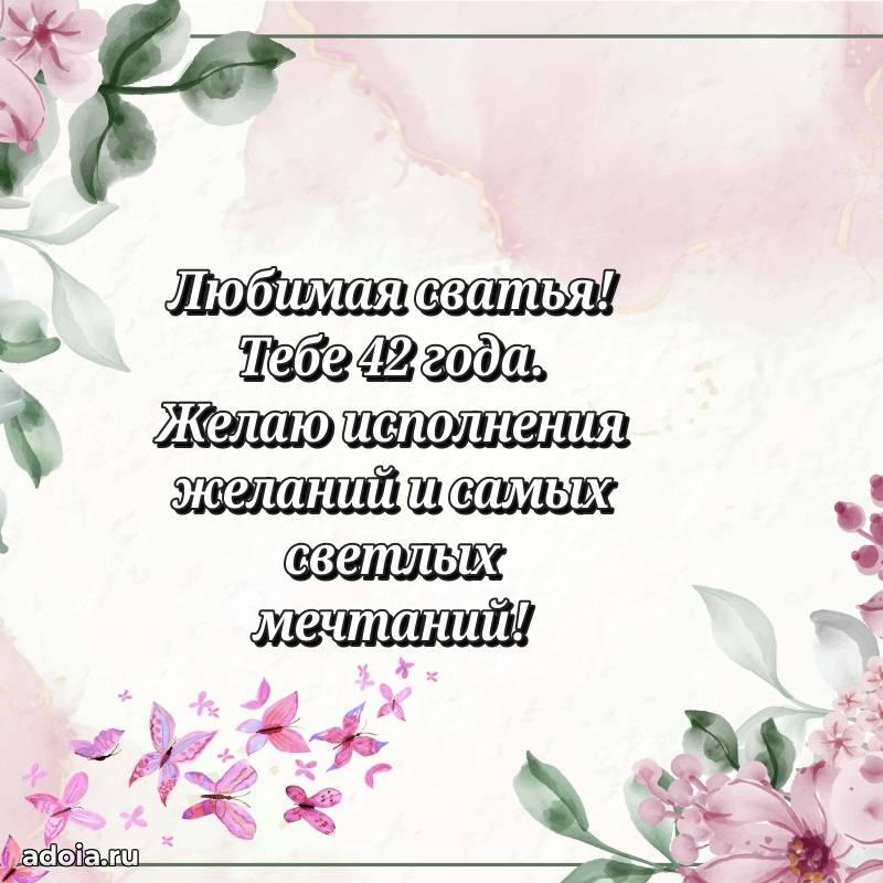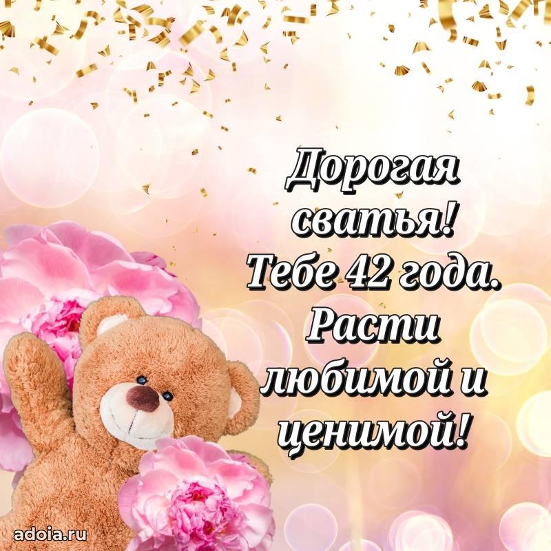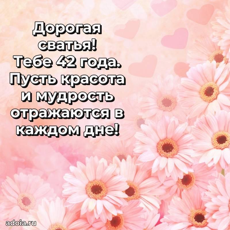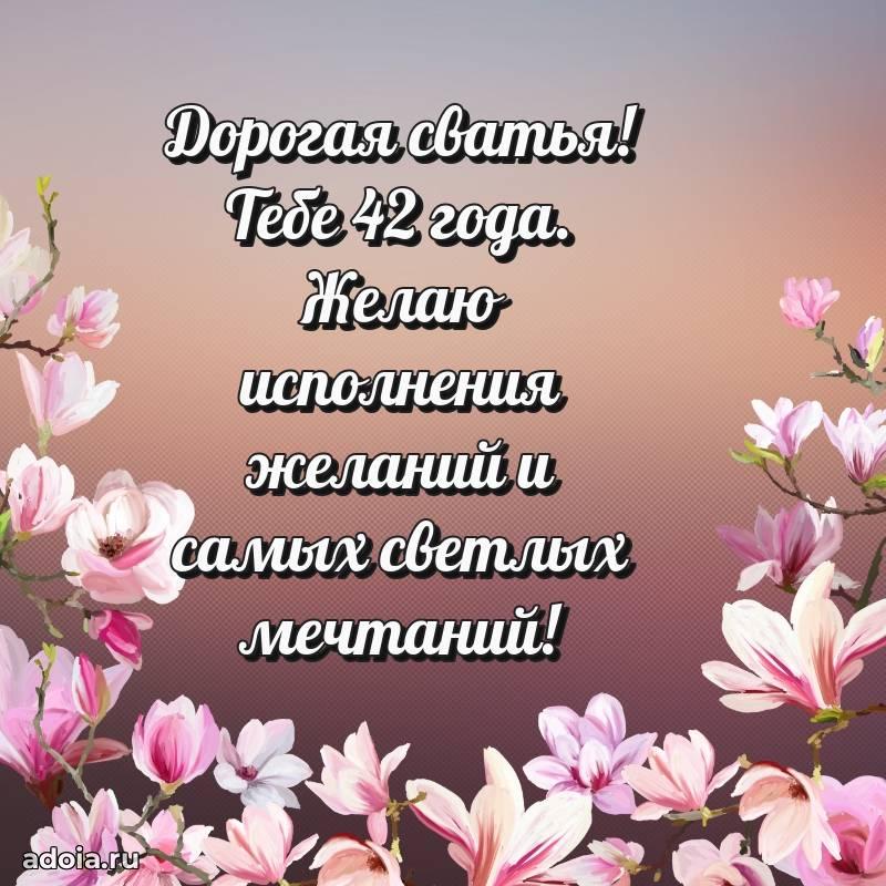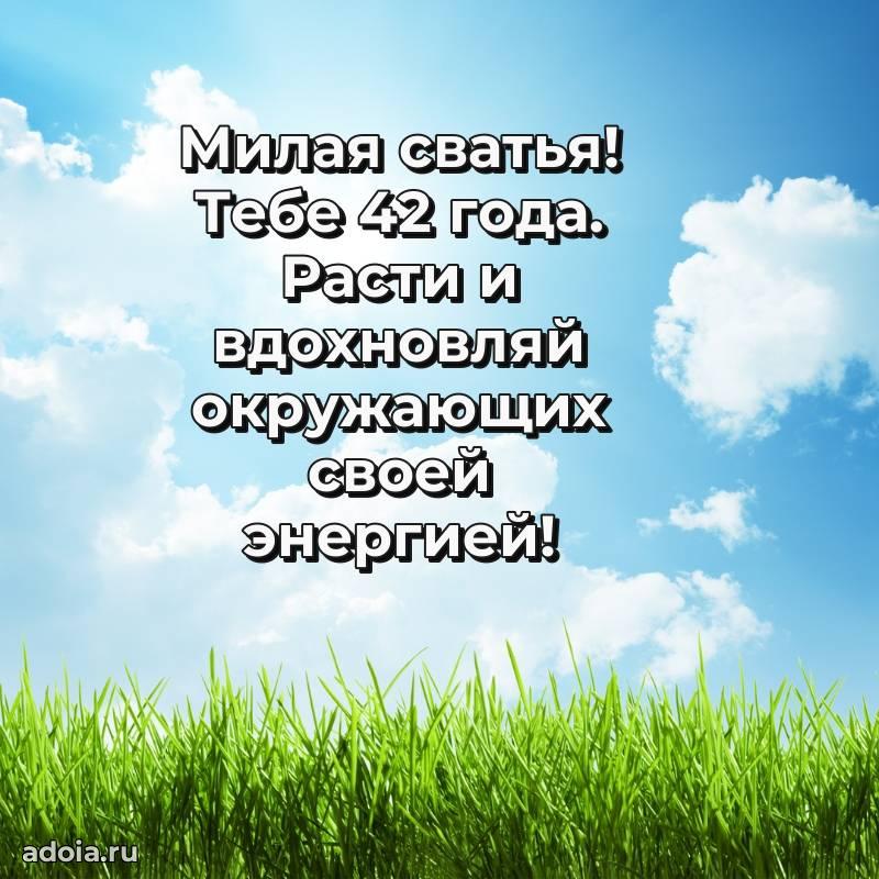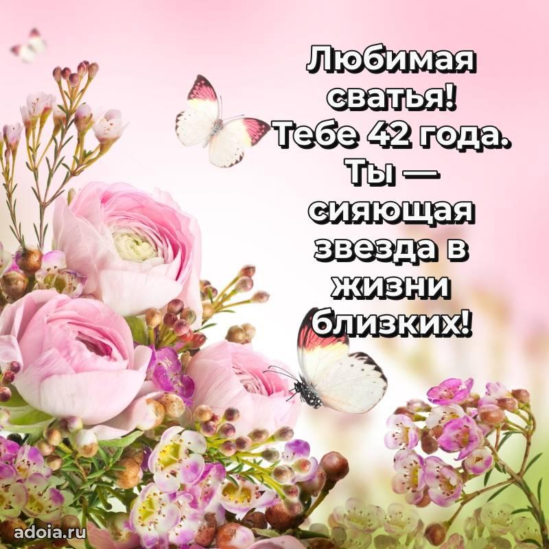 В поисках красивых и современных открыток? Вы попали по адресу! Здесь вы найдете картинки с днем рождения Сватье на 42 года! Все картинки в высоком качестве, которые можно скачать или отправить через WhatsApp бесплатно. Также вы найдете много прикольных и мерцающих гифок и анимаций, которые поднимут настроение! Все открытки содержат поздравления в стихах и прозе.