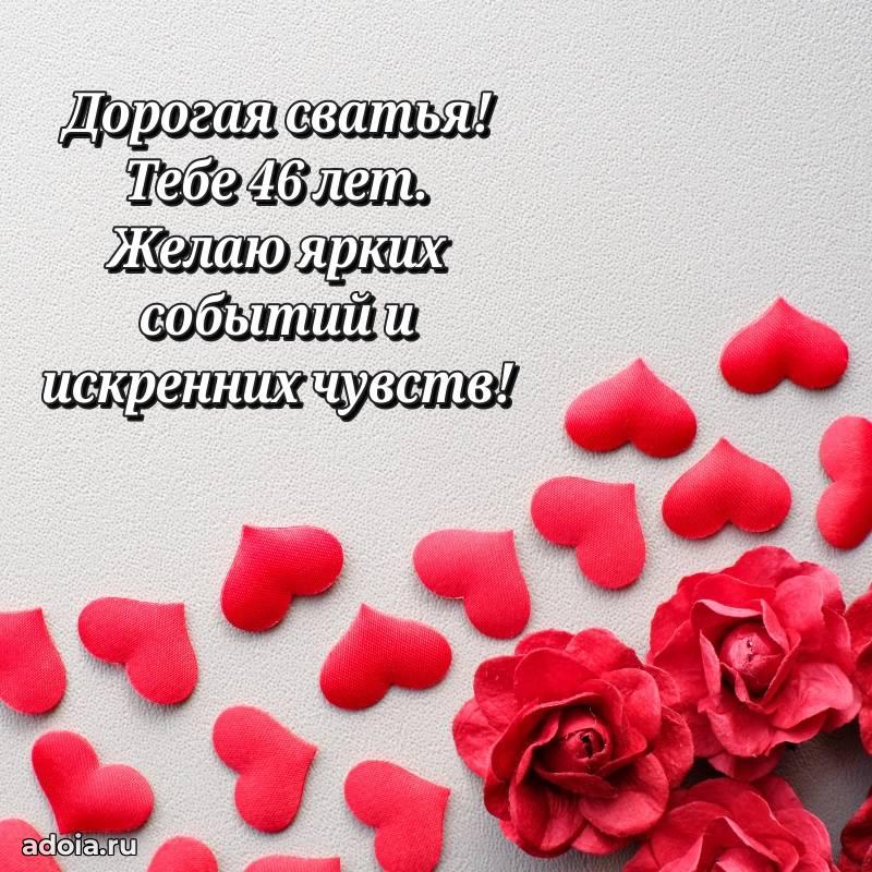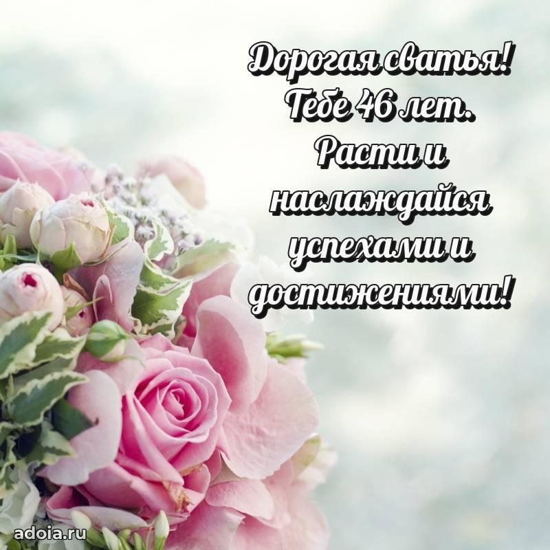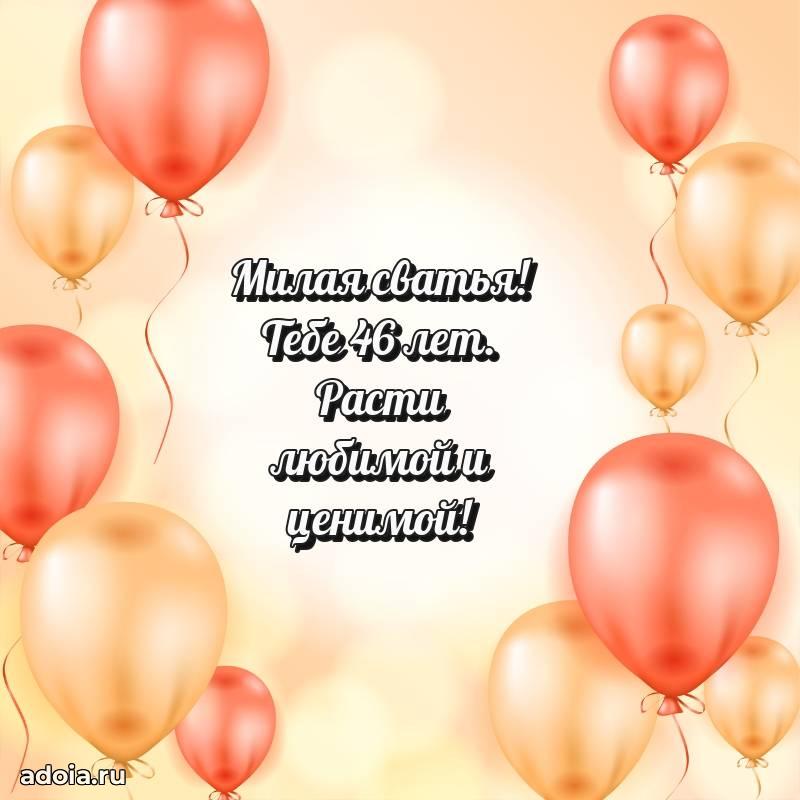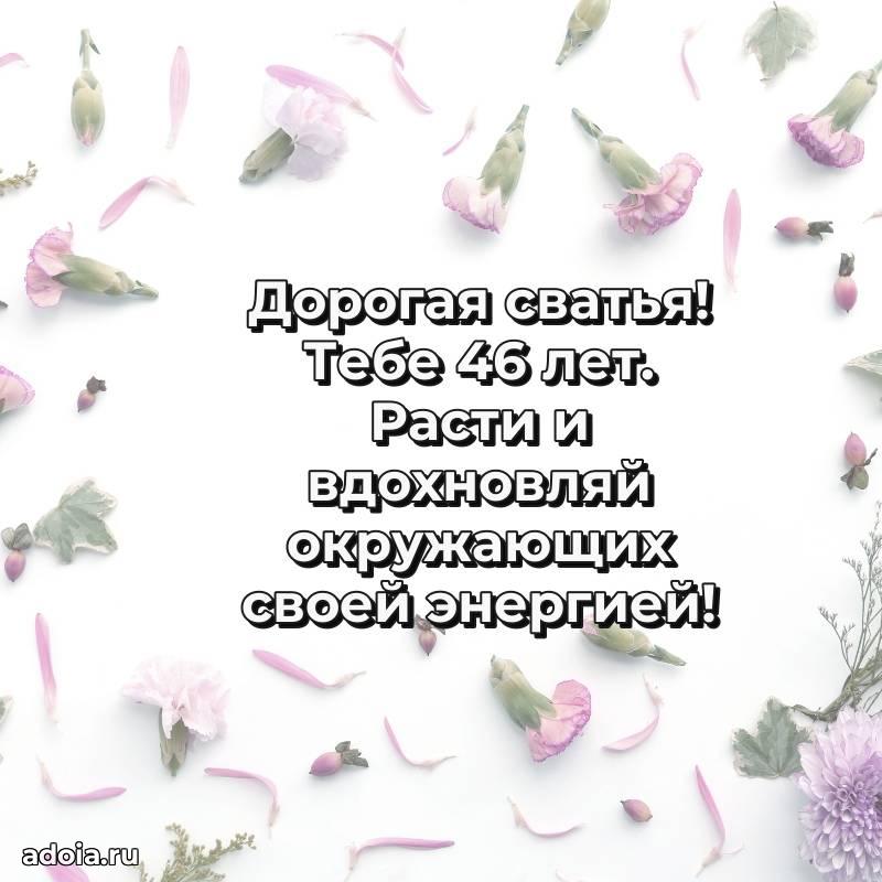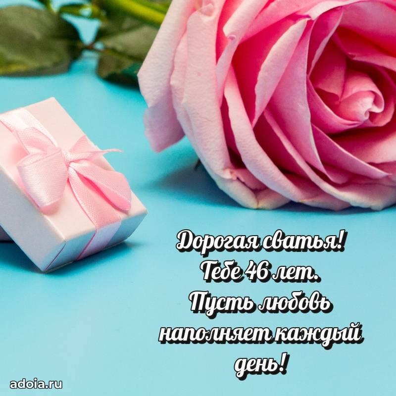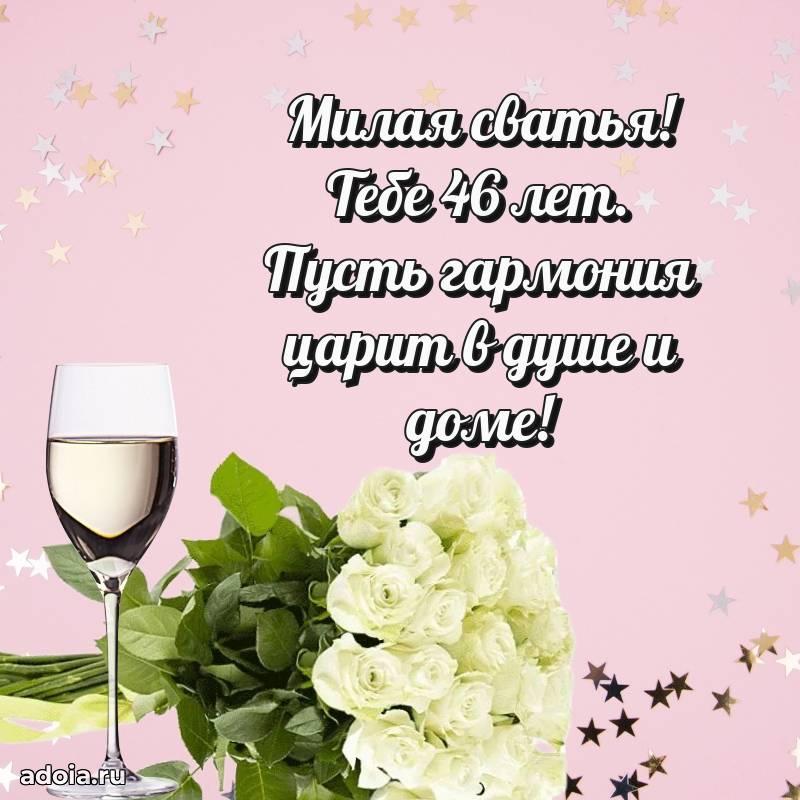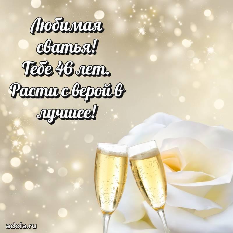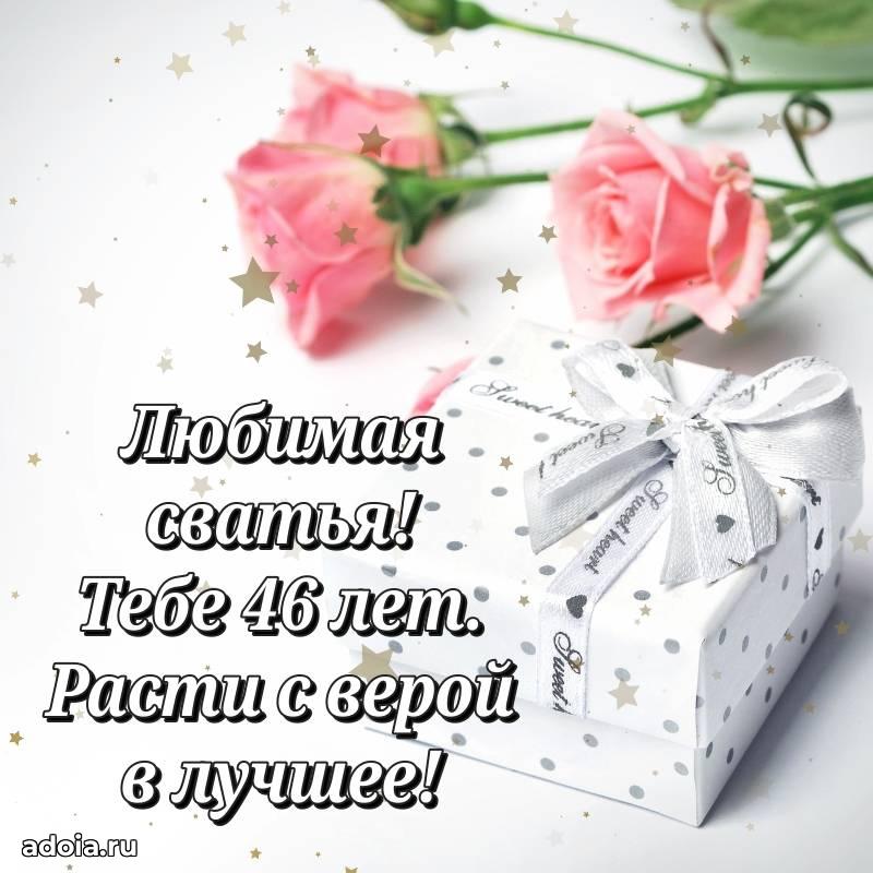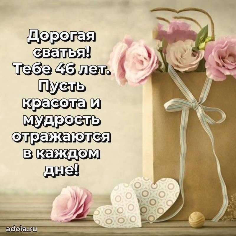 В поисках красивых и современных открыток? Вы попали по адресу! Здесь вы найдете картинки с днем рождения Сватье на 46 лет! Все картинки в высоком качестве, которые можно скачать или отправить через WhatsApp бесплатно. Также вы найдете много прикольных и мерцающих гифок и анимаций, которые поднимут настроение! Все открытки содержат поздравления в стихах и прозе.